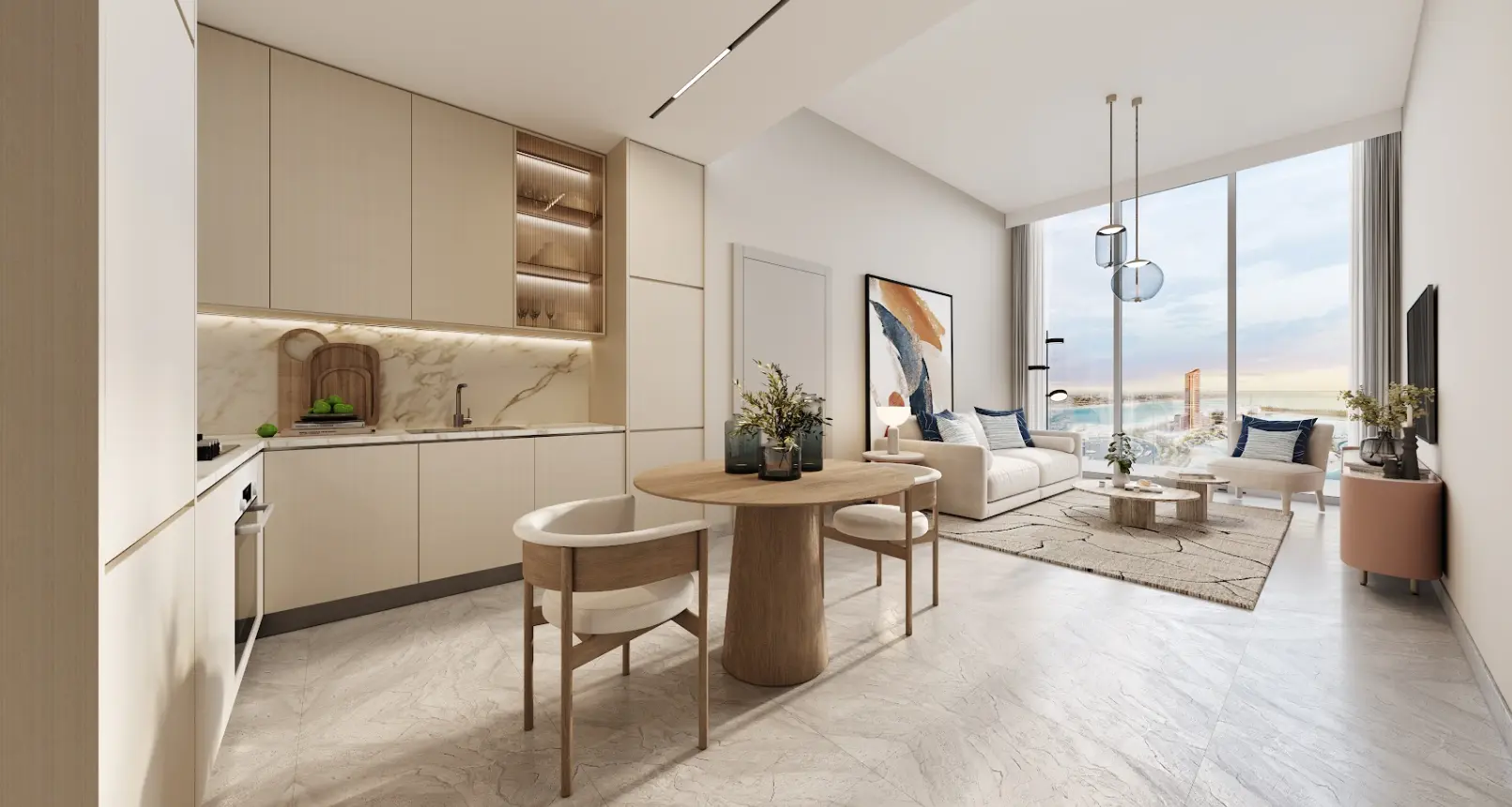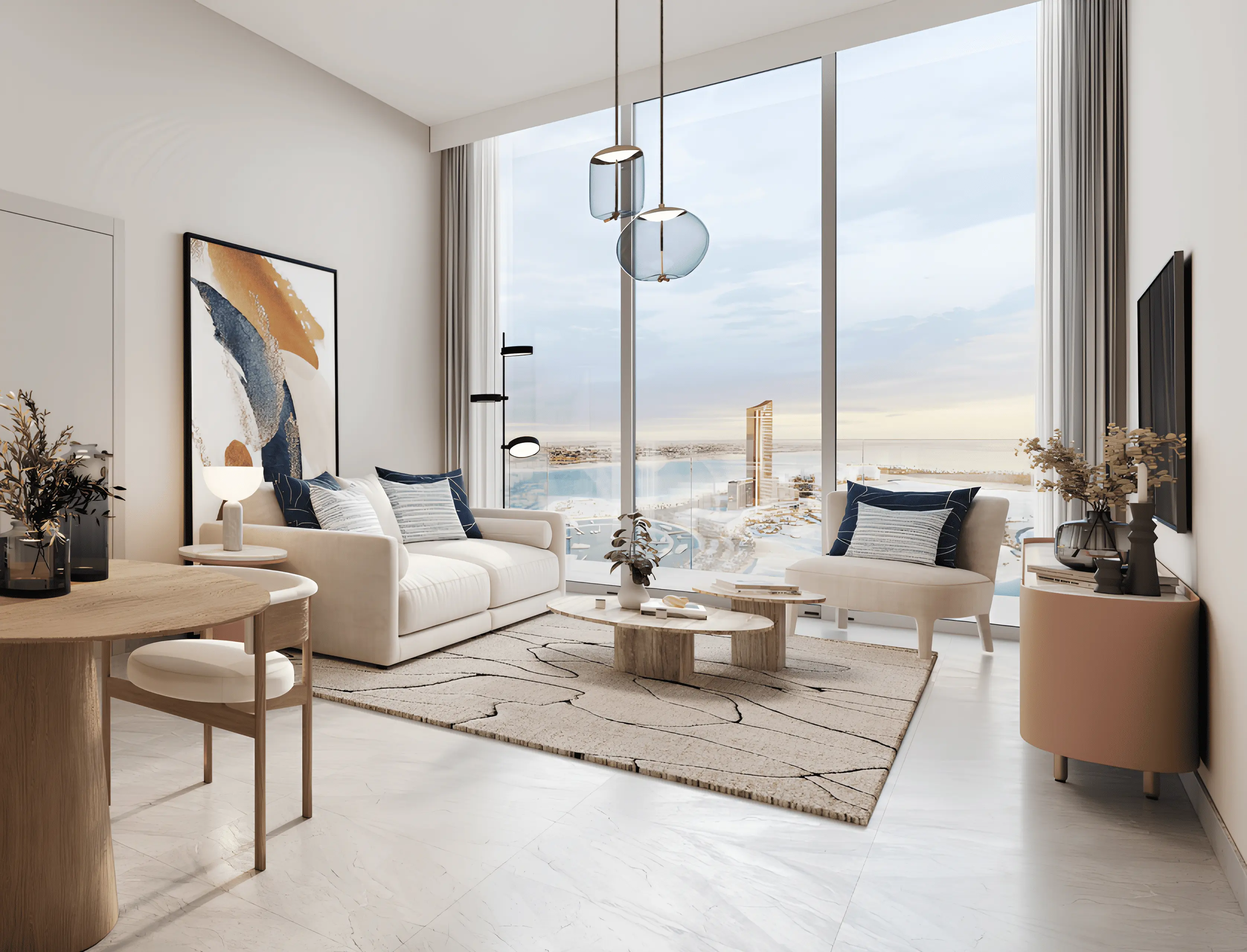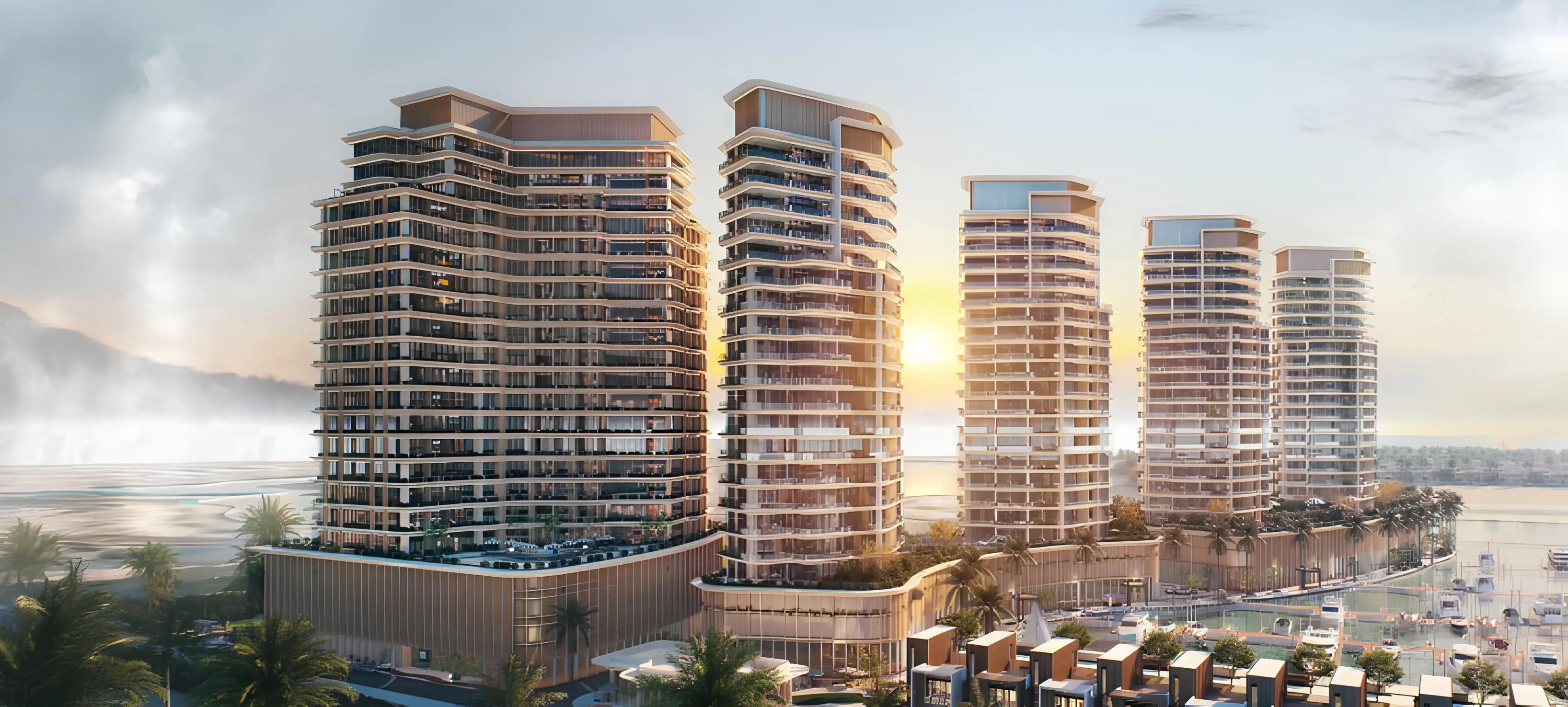 Conveniently located just 45 minutes from Dubai Airport, the complex promises a serene waterfront lifestyle with modern design and first-class amenities.