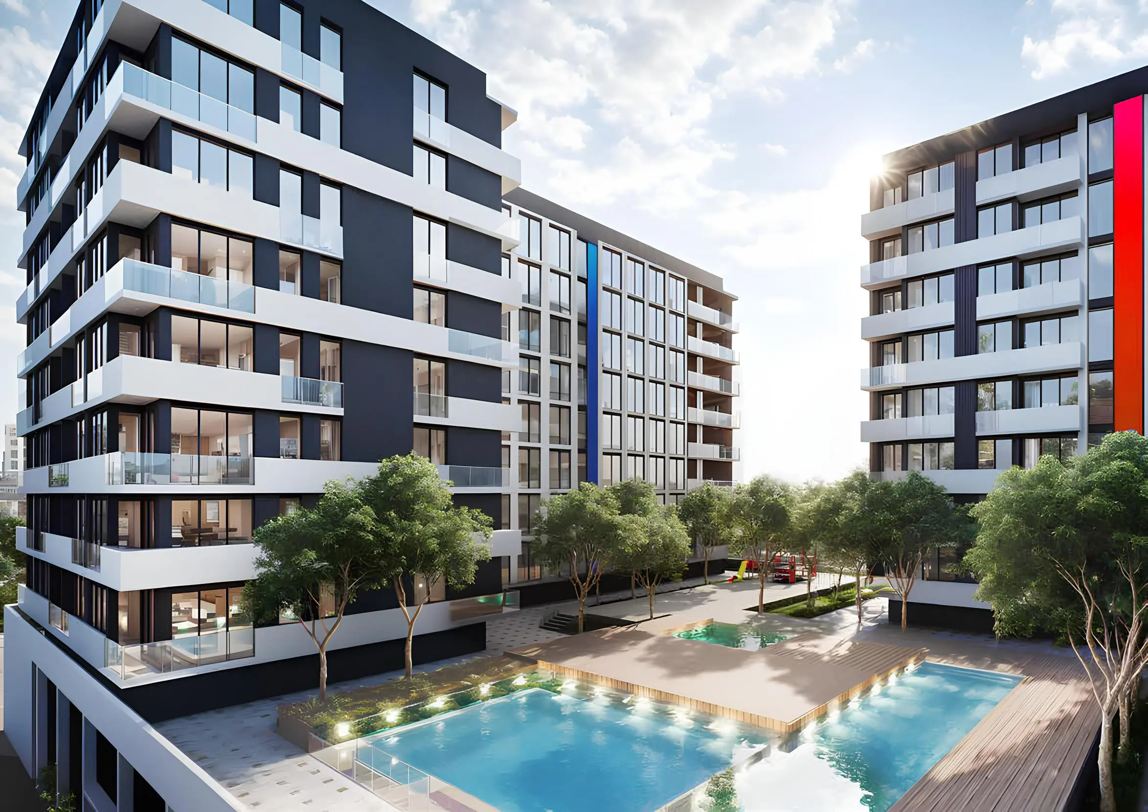 Al Mamsha Hamsa is the fourth phase of the Al Mamsha residential project from the developer Alef in the heart of Sharjah. The complex is a residential area consisting of three buildings, including a basement parking floor, a ground floor, a podium and 8 residential levels. The exterior of the buildings of the project is characterized by a modern and elegant design. The buildings are organically integrated into the landscape, complemented by beautiful greenery and water elements, creating a calm and refreshing atmosphere. The project includes apartments with 1-3 bedrooms, as well as commercial premises. All the residences have a modern design. Elegantly proportioned windows overlooking the park and spacious balconies with outdoor seating areas complement the sophistication of the interiors. Residents of the complex have access to a modern gym and swimming pool, as well as a lively shopping area where they can easily purchase all the necessary goods. The project is strategically located, which provides convenient access to the main attractions. Just 4 minutes to University City of Sharjah, 5 minutes to Sharjah School's Complex, 8 minutes to 06 Mall and 5 minutes to 311 Sheikh Mohammad Bin Zayed Road. Sharjah International Airport can be reached in 9 minutes and Dubai International Airport in 15 minutes.
