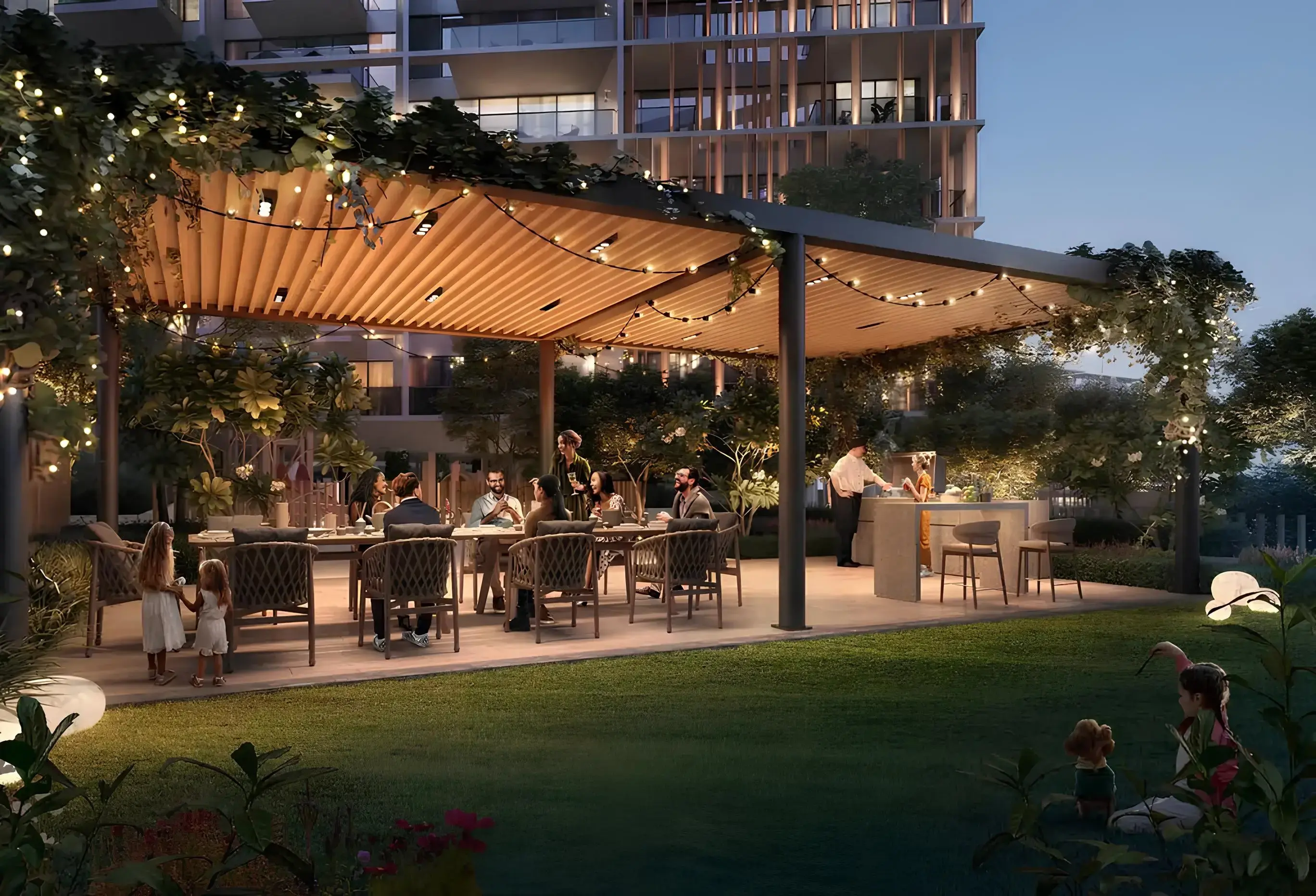 ALDER at Parkfive is the fifth and final premium residential complex within the Parkfive community by Deyaar Development. Located in Dubai Production City, the project is a modern mid-rise building featuring a basement level, a spacious ground floor, five residential floors, and a rooftop area. The architecture of the complex combines geometric facades and a harmonious fusion of traditional Arab aesthetics with modern design, while ensuring a close connection between the interior spaces and the natural environment. The interiors of residences are thought out to the smallest detail: spacious rooms with high-quality finishes, modern kitchens, built-in appliances, large windows and panoramic views of the park and lagoon. The complex offers a variety of layouts — one-, two- and three-bedroom apartments, designed for a comfortable urban life. ALDER at Parkfive offers residents a variety of amenities, including adult and children’s pools, BBQ and outdoor recreation areas, a rooftop garden, and a playground. Traditional Arabic sikhs, fountains, shopping malls, coworking spaces, shaded relaxation areas and lawns for meetings and events are also provided. The complex provides quick access to key Dubai locations: City Centre Me'aisem is just 2 minutes away, Expo City Dubai is 15 minutes away, and Dubai International Airport and Al Maktoum International Airport are within 25 minutes by car.