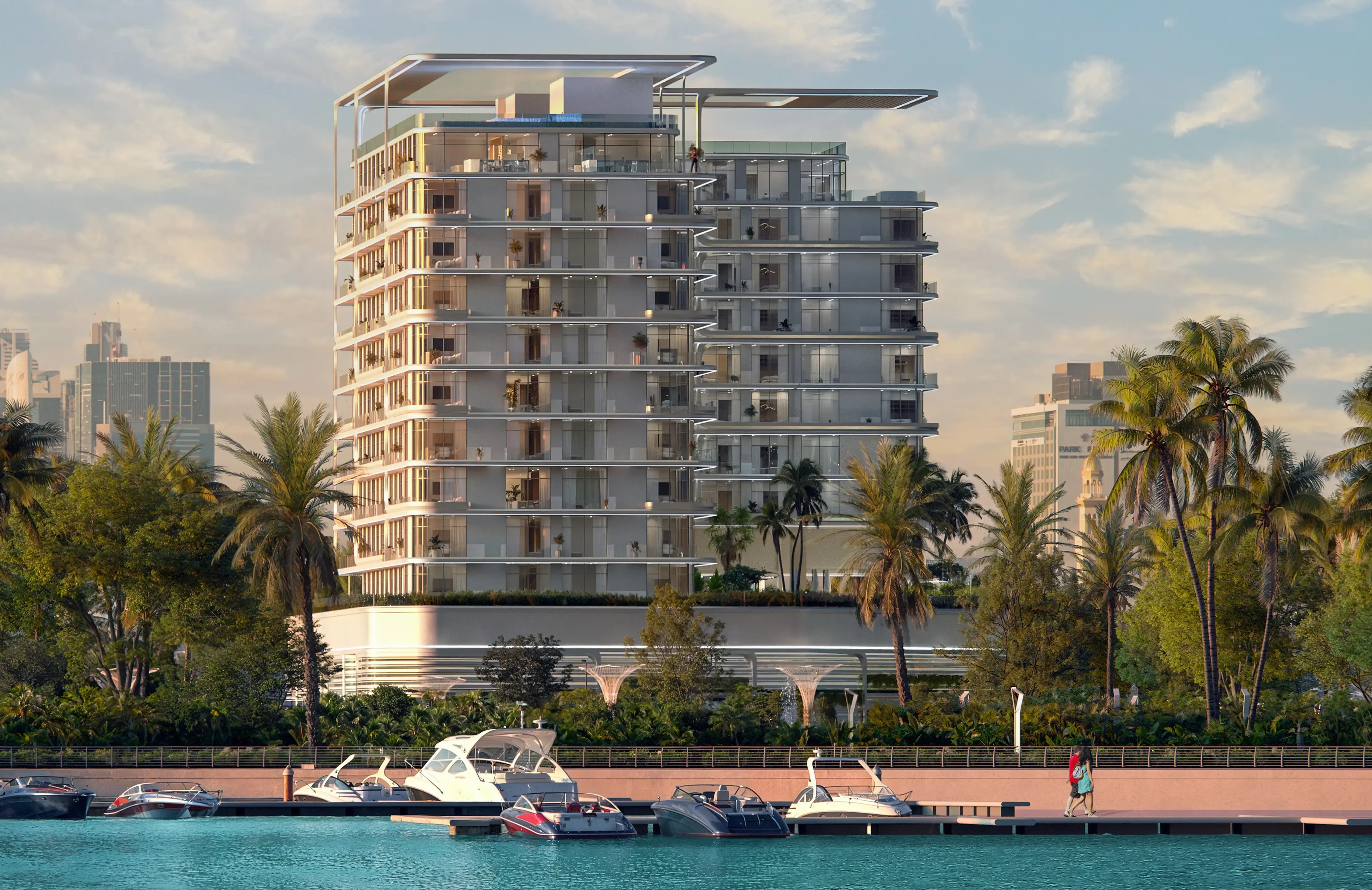 Arka Enclave is an elite residential complex from the developer Manodev, located in the prestigious Dubai Islands area. The marketing and sales of the project are carried out by the Devmark agency. The building stands out with a smooth, layered silhouette inspired by the sea element and extensive floor-to-ceiling glazing. The complex consists of a ground floor, a two-level podium, ten residential floors, and a roof. The residences in Arka Enclave have one to three bedrooms, including penthouses with spacious terraces and a jacuzzi. All apartments have well-thought-out layouts. The kitchens are equipped with branded appliances and natural stone countertops. Special attention is paid to the smooth transition between the indoor areas and the terraces, which creates the feeling of breathing space. The complex offers extensive infrastructure: a lagoon pool with a children's area, an infinity pool with a lounge area and BBQ, yoga studios, a fitness center, sports courts, an open-air cinema, an elite with a play area, and a private massage room. Arka Enclave is conveniently located within walking distance of key Dubai Islands facilities: 4-minute from the Waterfront Market, 8 minutes from Sheikh Zayed Road and Dubai International Airport, 12 minutes from the Dubai International Financial Center. Downtown Dubai and Dubai Mall are a 13-minute drive away, while Jumeirah Beach is a 15-minute away.