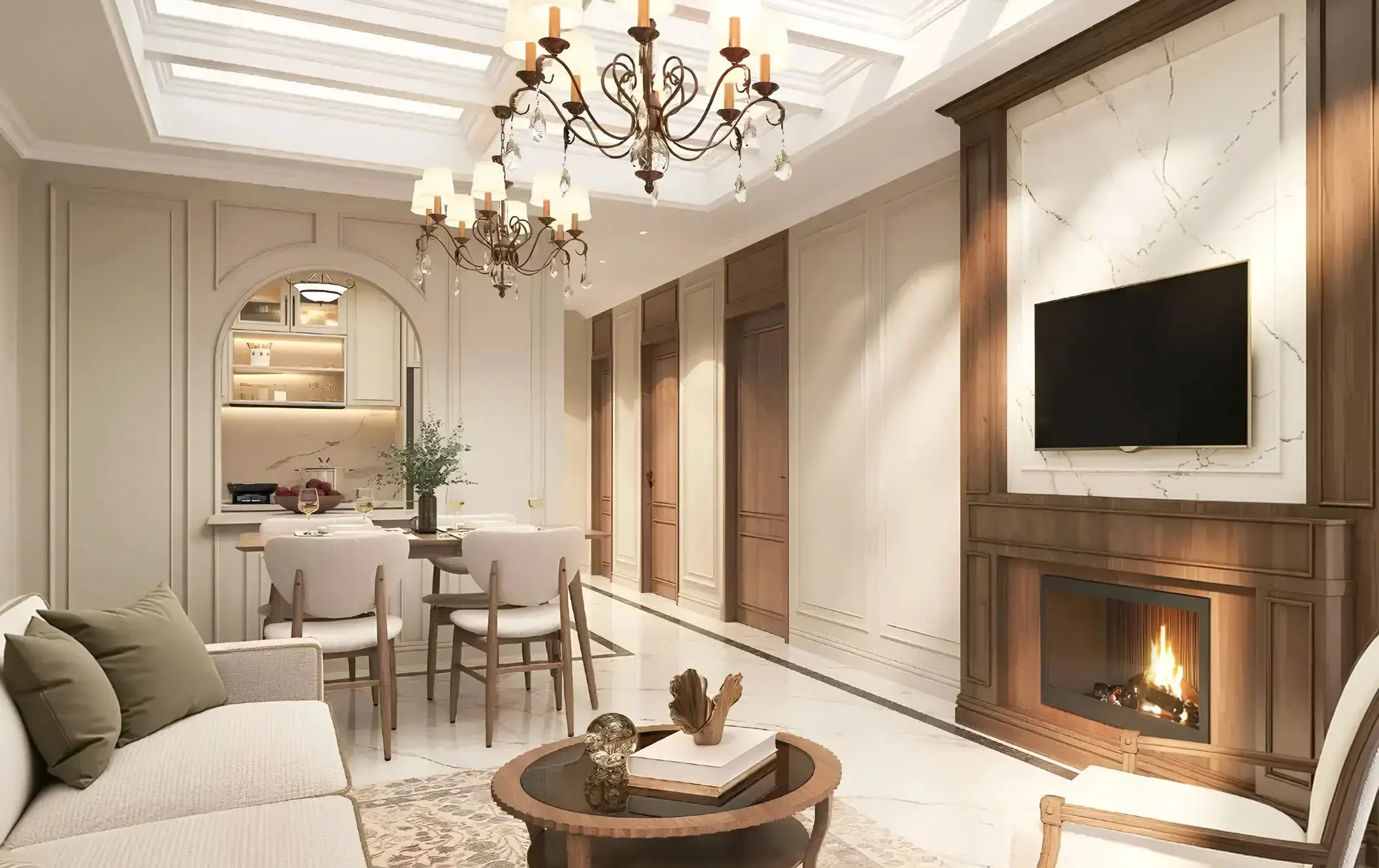 The residences feature spacious living areas, fully furnished with furniture from renowned brands, and semi-closed kitchens equipped with branded appliances.