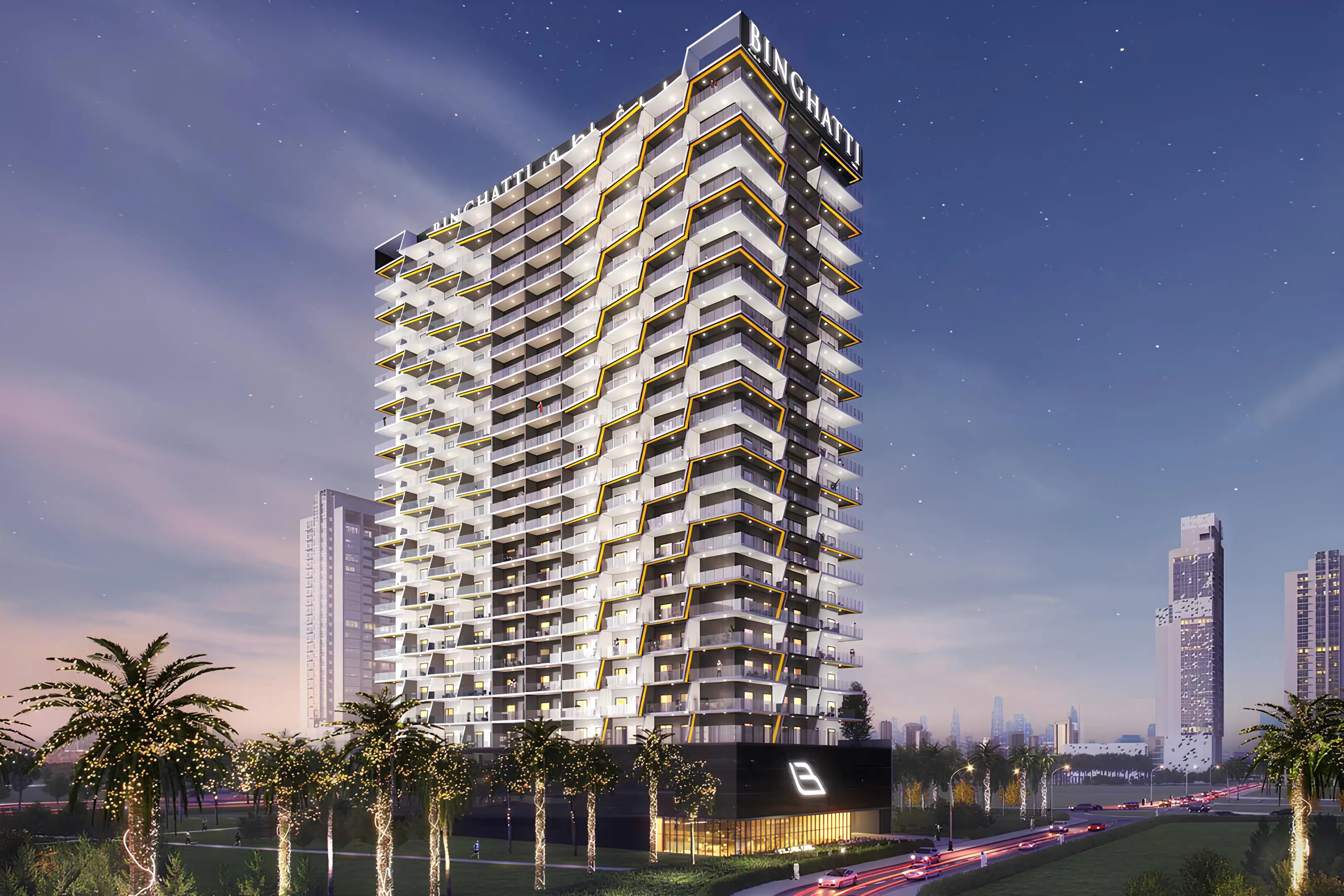 Binghatti Creek is a beautiful residential complex in the heart of Dubai, which is characterized by its premium style and high level of comfort. This 21-storey complex has a unique original design where balconies weave together to create an impressive dynamic effect. In addition, traditional elements of Middle Eastern architecture are used in the design of the building, giving it a special charm and personality.