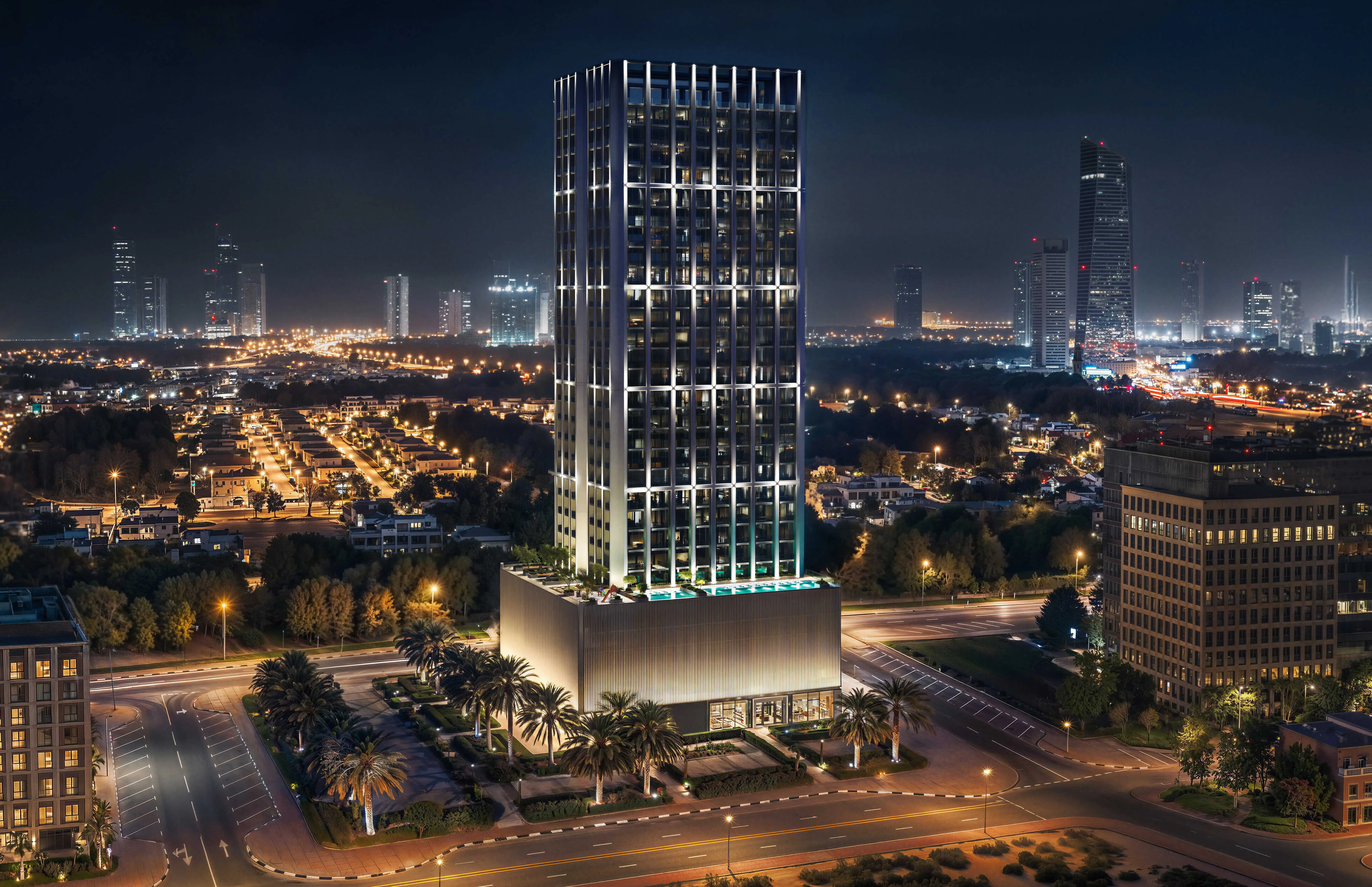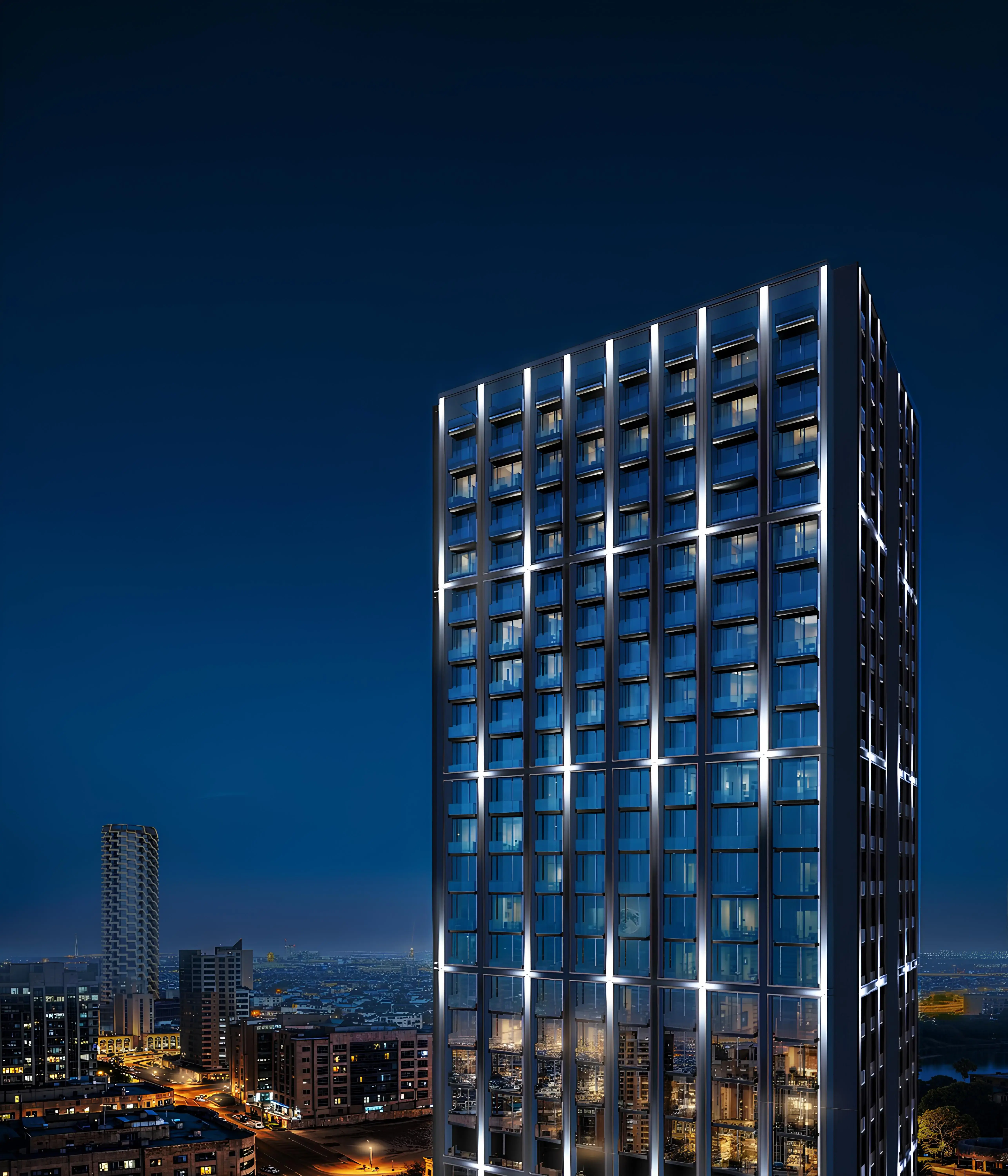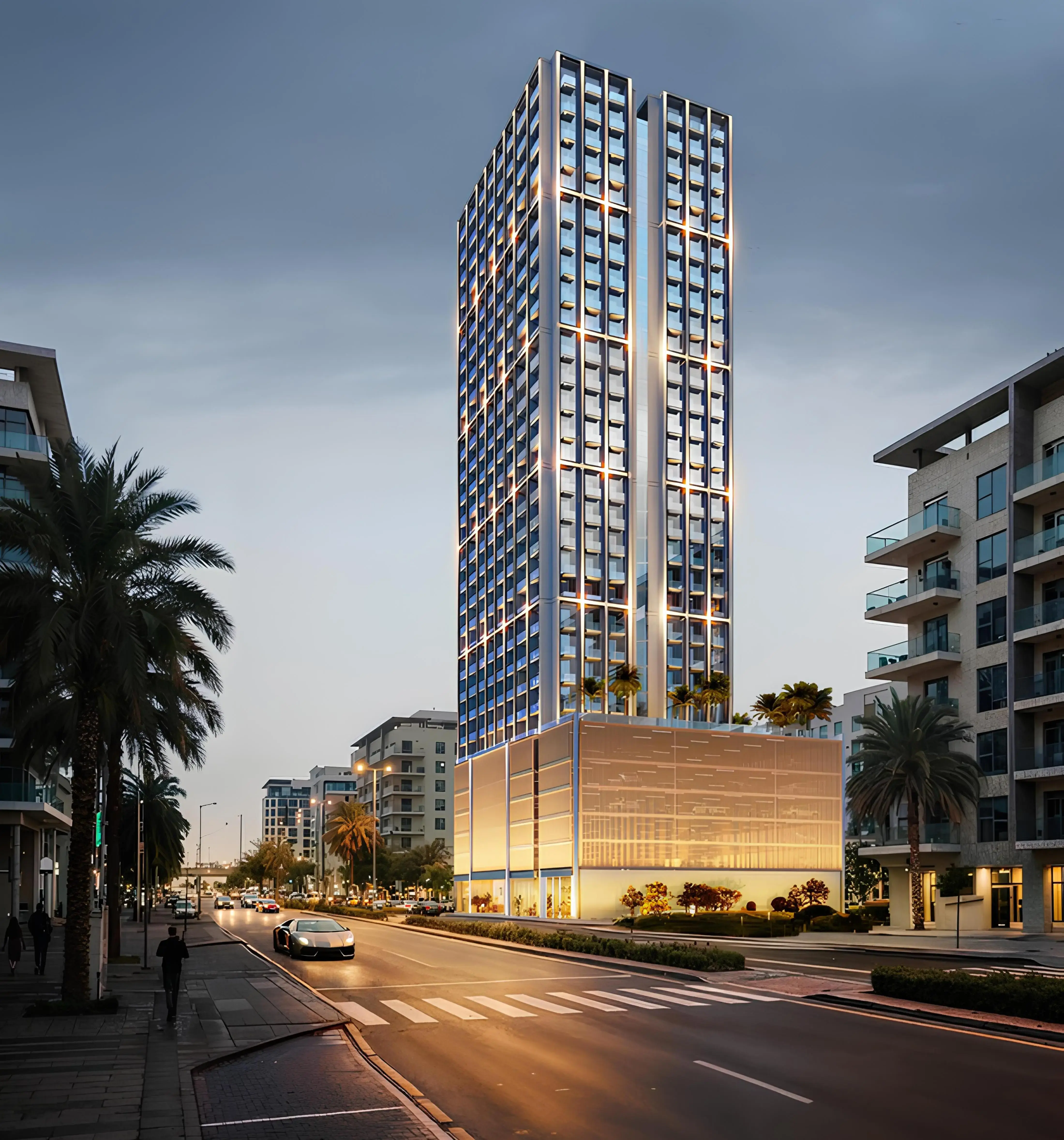 Binghatti Etherea is a stunning residential tower by Binghatti, located in Jumeirah Village Circle. The building features a basement level, a ground floor, five podium levels, twenty-two residential floors, a mechanical floor, and a rooftop. Its architecture is defined by a distinctive structure and satin chrome finishes that provide natural shading, creating a striking visual presence. The development offers a variety of residences, including studios and one- and two-bedroom apartments, as well as commercial spaces. The interiors exude tranquility and sophistication, with soft neutral tones and luxurious textures designed to create a serene atmosphere. Residents enjoy access to a range of world-class amenities, including adult and children’s swimming pools, bicycle and walking paths, sitting areas, a jacuzzi area, a sunbathing zone, a kids' play area, a yoga area, and much more. Perfectly positioned, Binghatti Etherea ensures seamless connectivity to some of the top attractions: Dubai Autodrome is just 20 minutes away, while Ibn Battuta Mall and Dubai Festival City are within 22 minutes. Expo City Dubai, Burj Al Arab, and Jumeirah Beach are reachable within 25 minutes. Dubai Marina, Dubai Harbour, Ain Dubai, and Al Maktoum International Airport are just 30 minutes away, and Palm Jumeirah is only 35 minutes away.