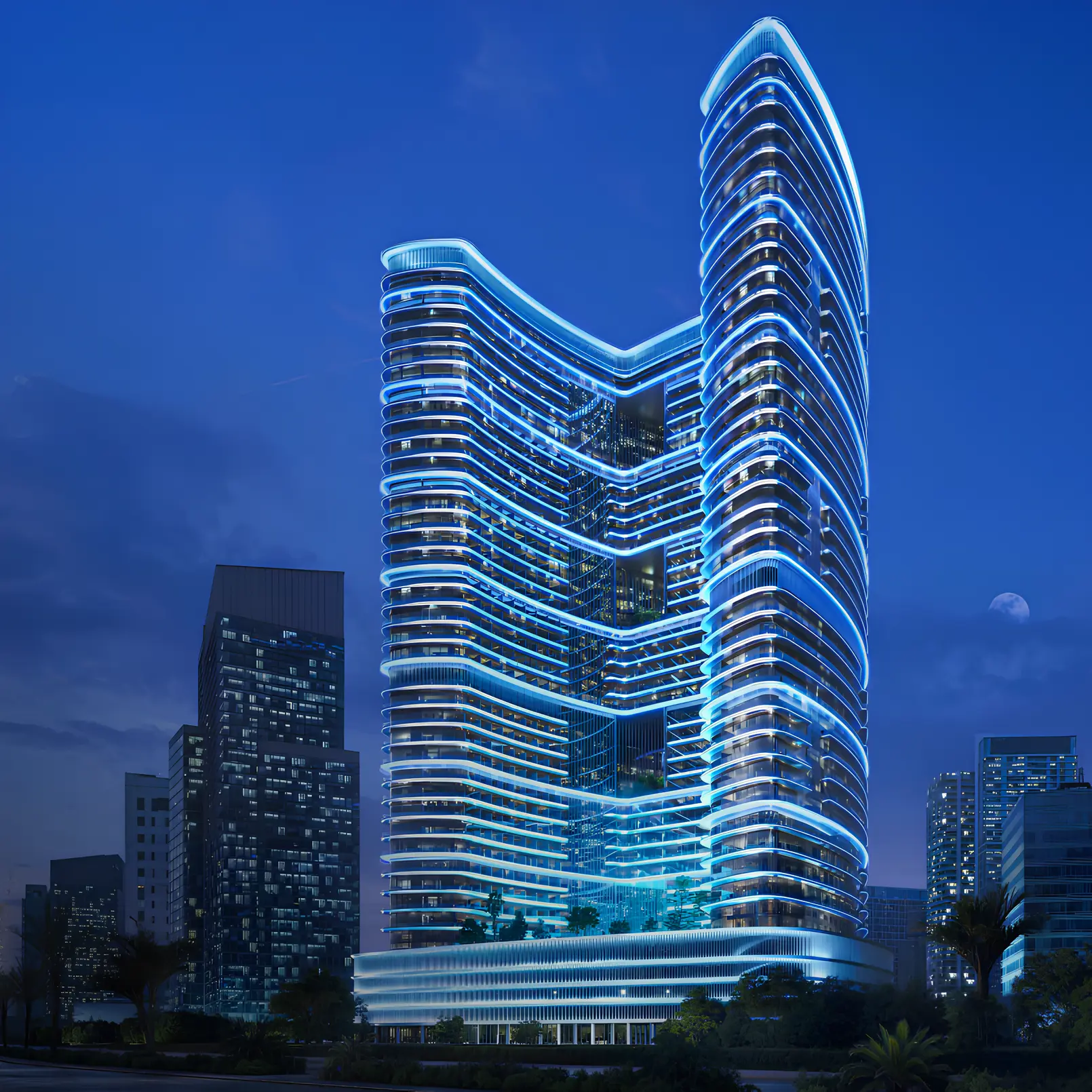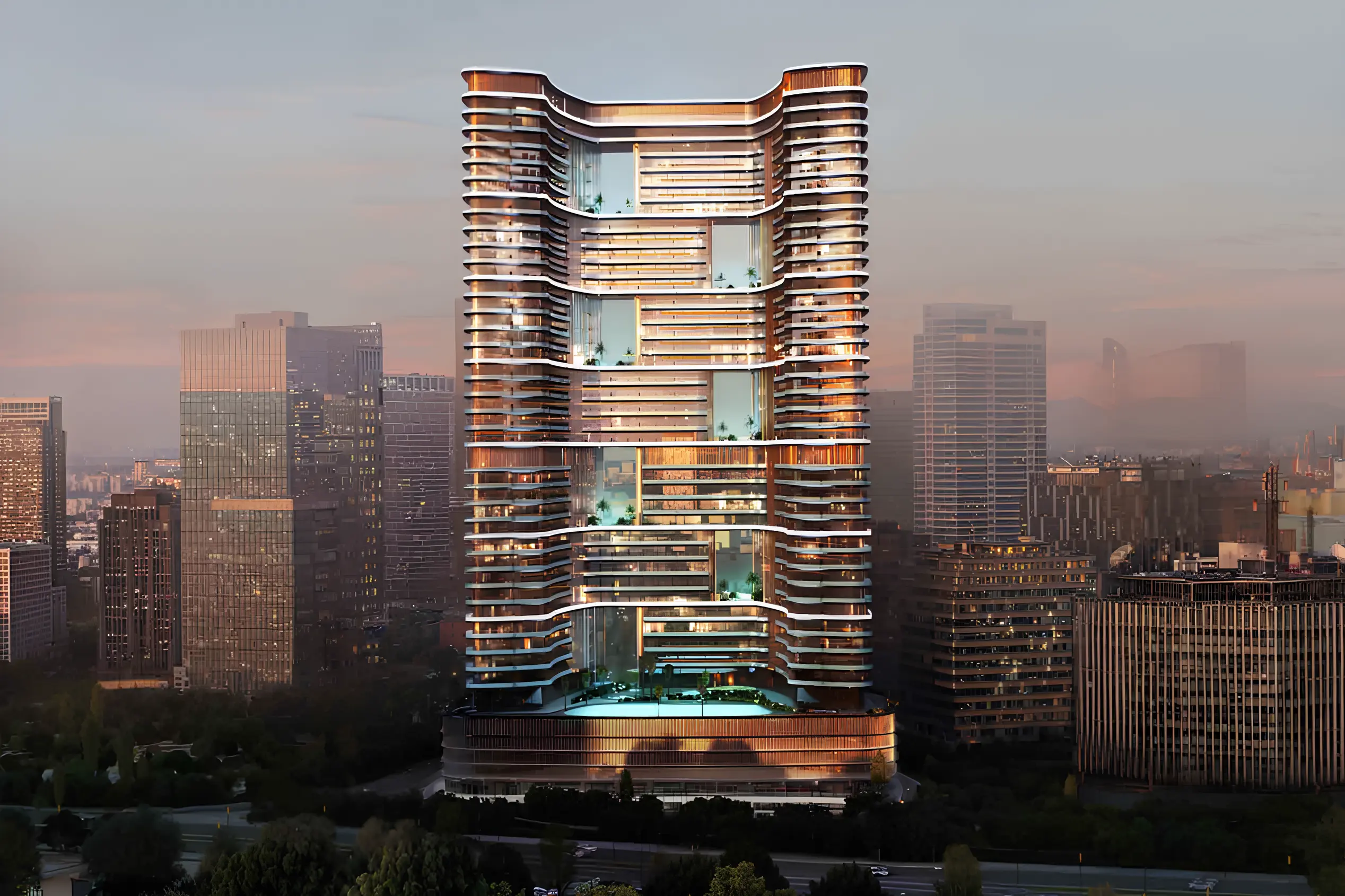 Binghatti Hillviews is a project by developer Binghatti, located in the heart of Dubai Science Park. The complex includes two basement levels, a ground floor with retail spaces, four podium levels dedicated to parking, and thirty-five residential floors. The structure is topped with a rooftop area, seamlessly integrated into the overall architectural design. The building’s facade showcases Binghatti’s signature style, characterized by geometric patterns, rhythmically arranged balconies, and striking visual accents. The architecture blends modern aesthetics with dynamic elements, highlighting the project’s unique identity. The complex features studios as well as one- and two-bedroom apartments. Interiors are designed in a light color palette, featuring natural textures and warm-toned accents. Residents benefit from a wide range of amenities designed for relaxation and an active lifestyle: an adult swimming pool with a sun-lounge area, a children's pool, an open-air gym, a basketball court, a children’s play area, and a yoga space surrounded by greenery. The complex is just 3 minutes from Dubai Hills Mall and within easy reach of Mall of the Emirates. Its strategic location ensures quick access to key areas of the city, such as Al Barsha and Downtown, while maintaining a sense of privacy—making Binghatti Hillviews an ideal choice for balanced and peaceful urban living.
