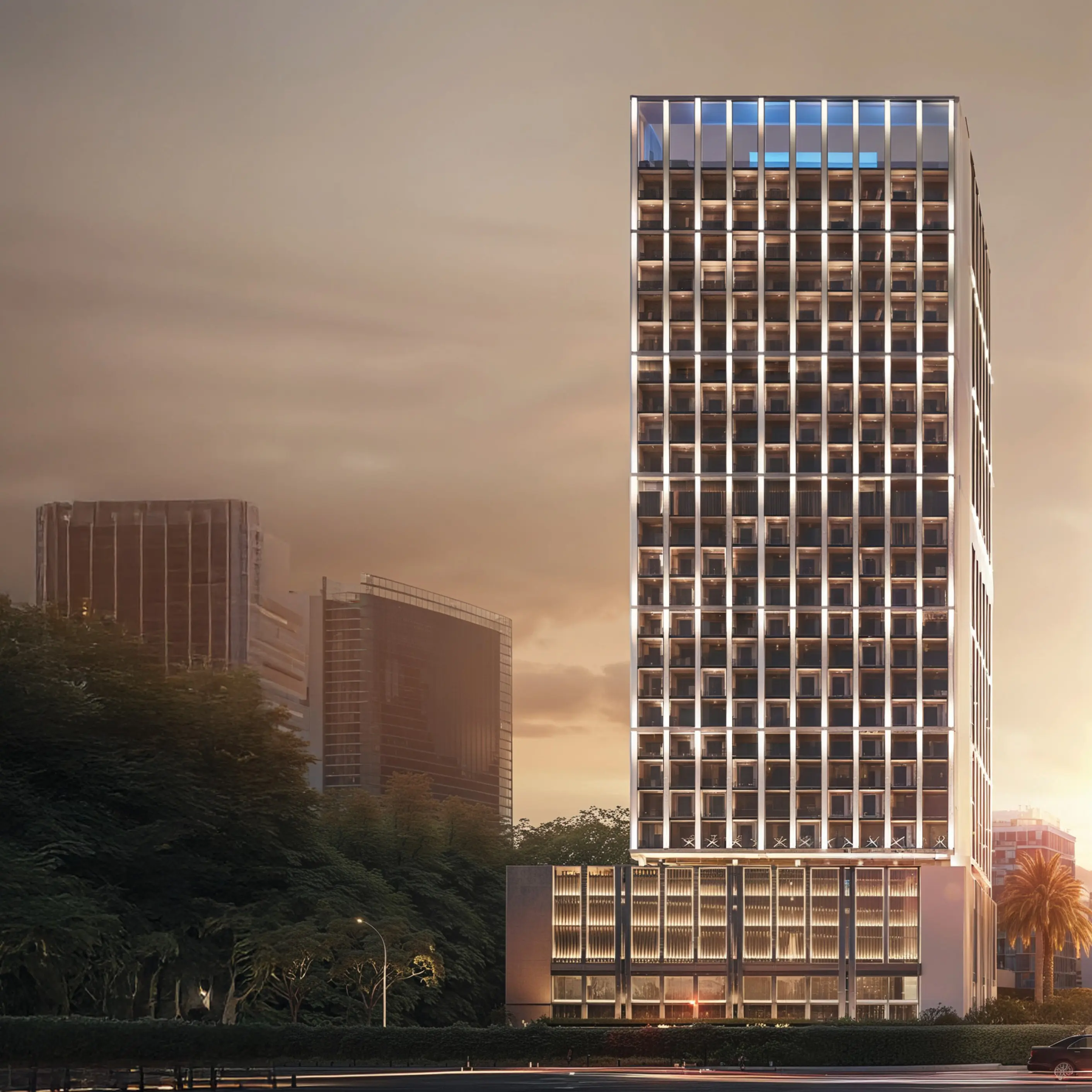 Binghatti Moonlight is a project by Binghatti, located in Al Jaddaf Waterfront. The complex includes four basement levels, a ground floor, three podiums, three office floors, nineteen residential floors, a technical level, and a rooftop. The tower features modern architecture with crystalline glass façades. Its top is crowned by a glowing open structure. It offers luxurious one-, two-, and three-bedroom apartments. Interiors are designed with quality materials like marble, wood, concrete, and brass. Spacious layouts and panoramic windows fill the rooms with light and offer views of the city and waterfront. Special attention is given to details that create a cozy and visually calm atmosphere. Residents will enjoy a gym, a rooftop infinity pool with lounge areas, relaxation zones, retail outlets on the ground floor, and 24/7 security. All units come with smart home systems. Nearby parks and green spaces are ideal for walks and pet-friendly activities. Binghatti Moonlight is conveniently located between Dubai Creek and Business Bay. It takes just 10 minutes to reach Dubai Mall, Burj Khalifa, and the Museum of the Future. DXB Airport and Business Bay are about 8 minutes away.