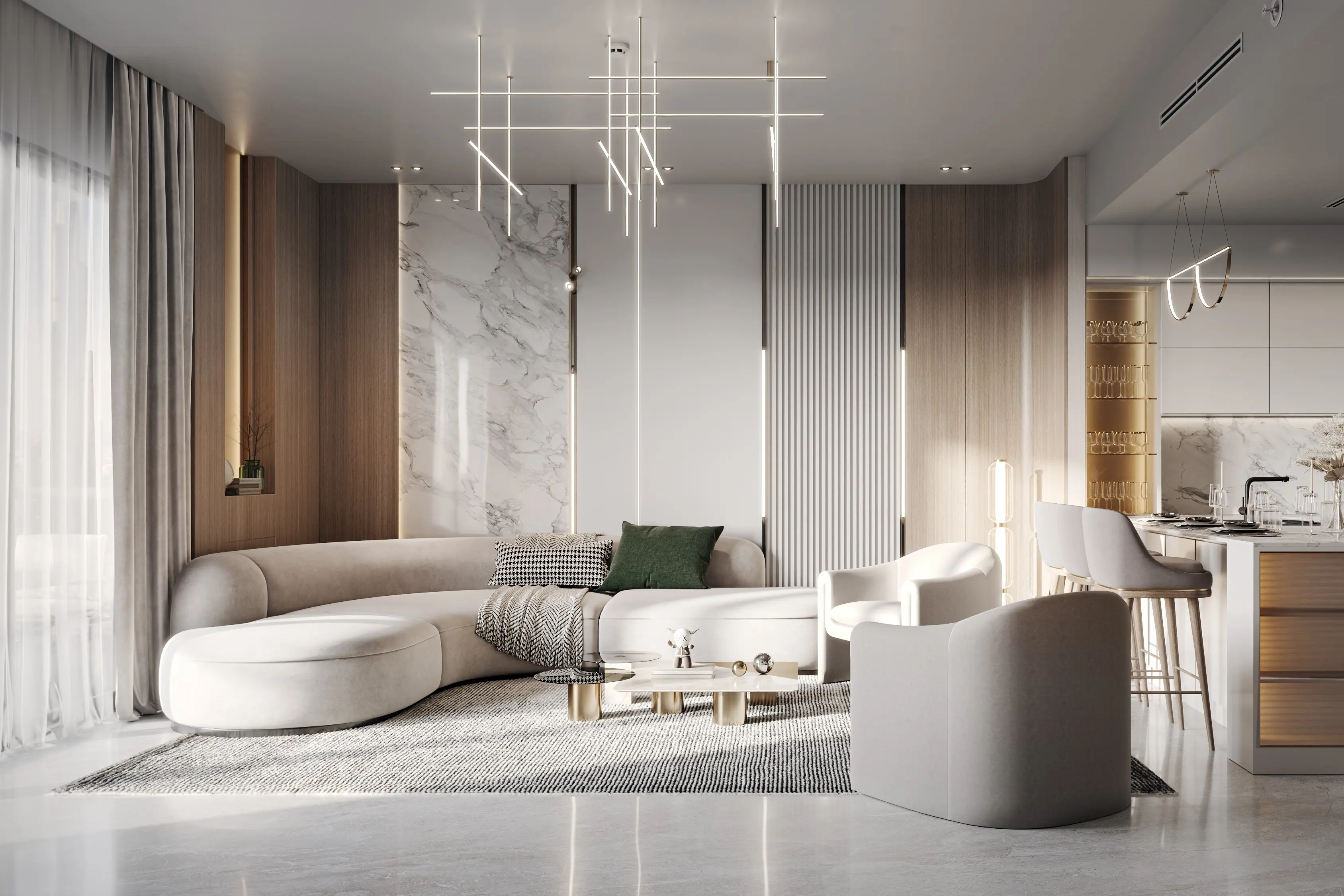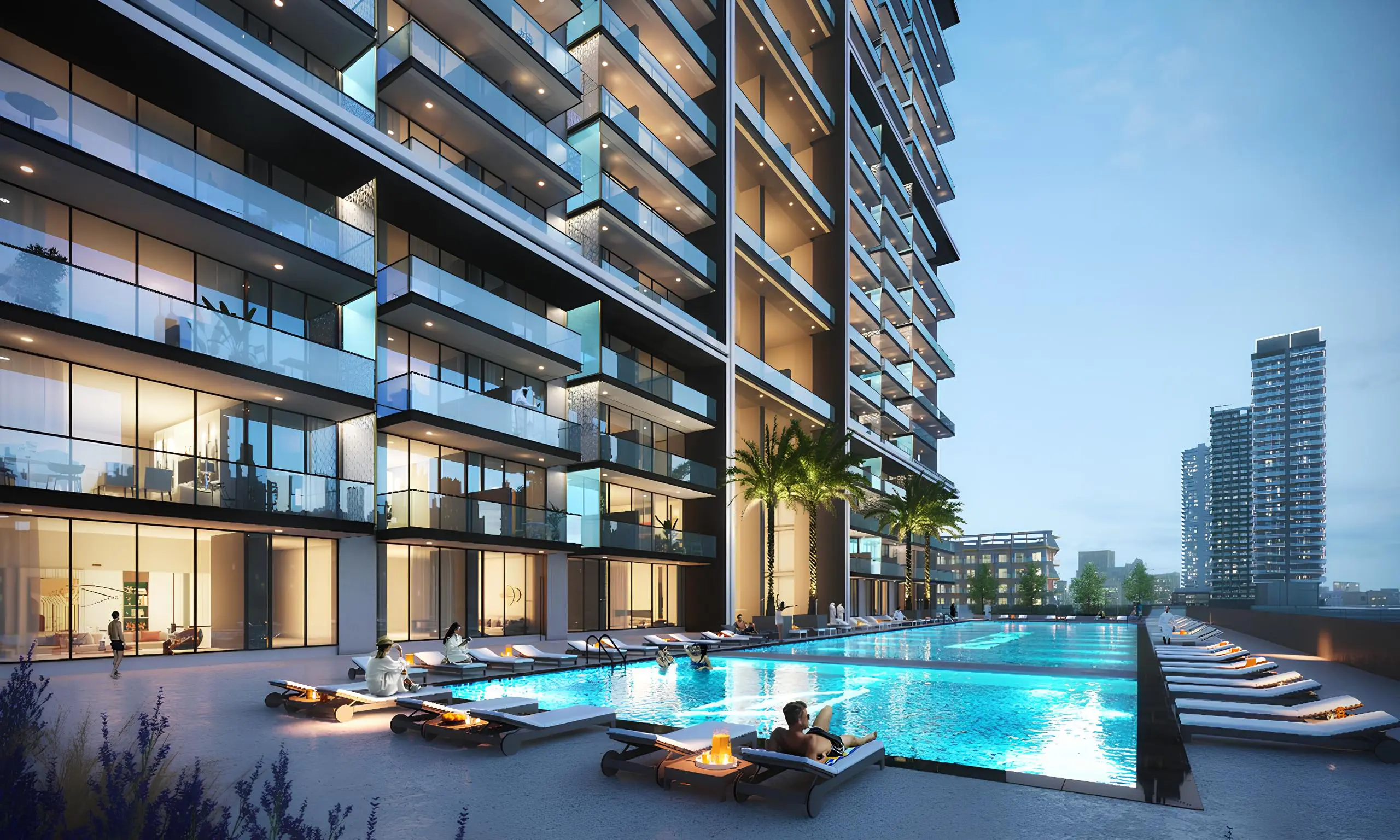 Binghatti Onyx, a contemporary project by developer Binghatti in JVC, is a residential tower with a striking design that blends traditional Middle Eastern elements with contemporary design. The tower comprises a basement floor, a ground level, four podium floors, thirty-six residential floors, and a roof. With its clean lines and glass panels, the facade of this development stands out amongst the surrounding homes, yet blends perfectly into the landscape of the neighborhood. The main property types in the development include luxury one- to two-bedroom apartments as well as commercial units located on the lower floors of the building. Binghatti Onyx boasts a wide range of amenities to provide residents with a comfortable living and recreational experience. These include a swimming pool with sun loungers, a gym with state-of-the-art equipment, children's playgrounds and sports fields, including a basketball court, as well as a green picturesque park with walking paths and recreational facilities. Within walking distance are stores, restaurants, cafes, and parks. The complex has a very convenient location. Nearby are the main thoroughfares of Dubai, which provides residents with quick access to public and social infrastructure of the city. Circle Mall is just three minutes away, Dubai Marina and JBR beach are 15 minutes away by car, and the road to Business Bay, Downtown and Burj Khalifa will take 20 minutes.