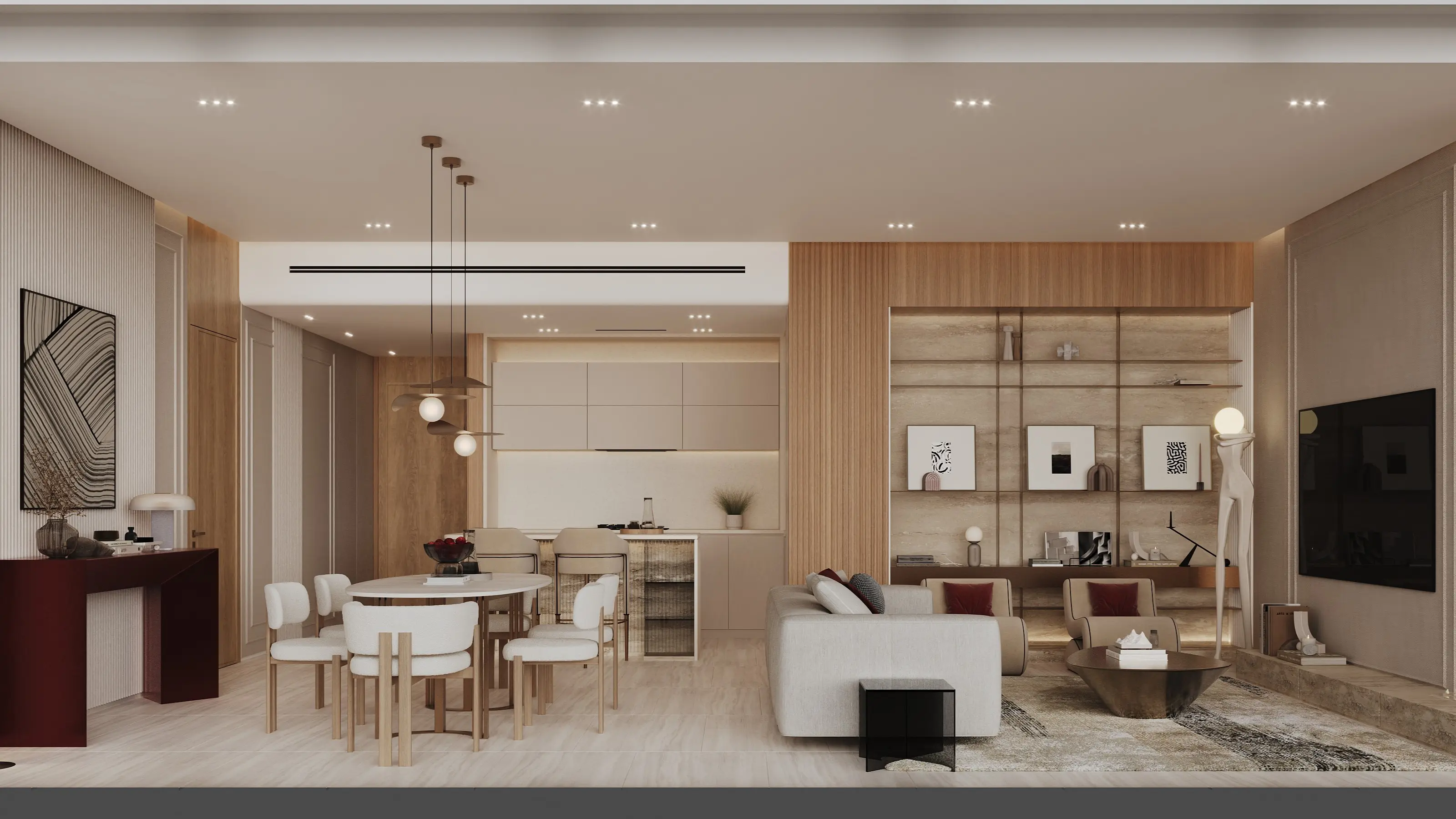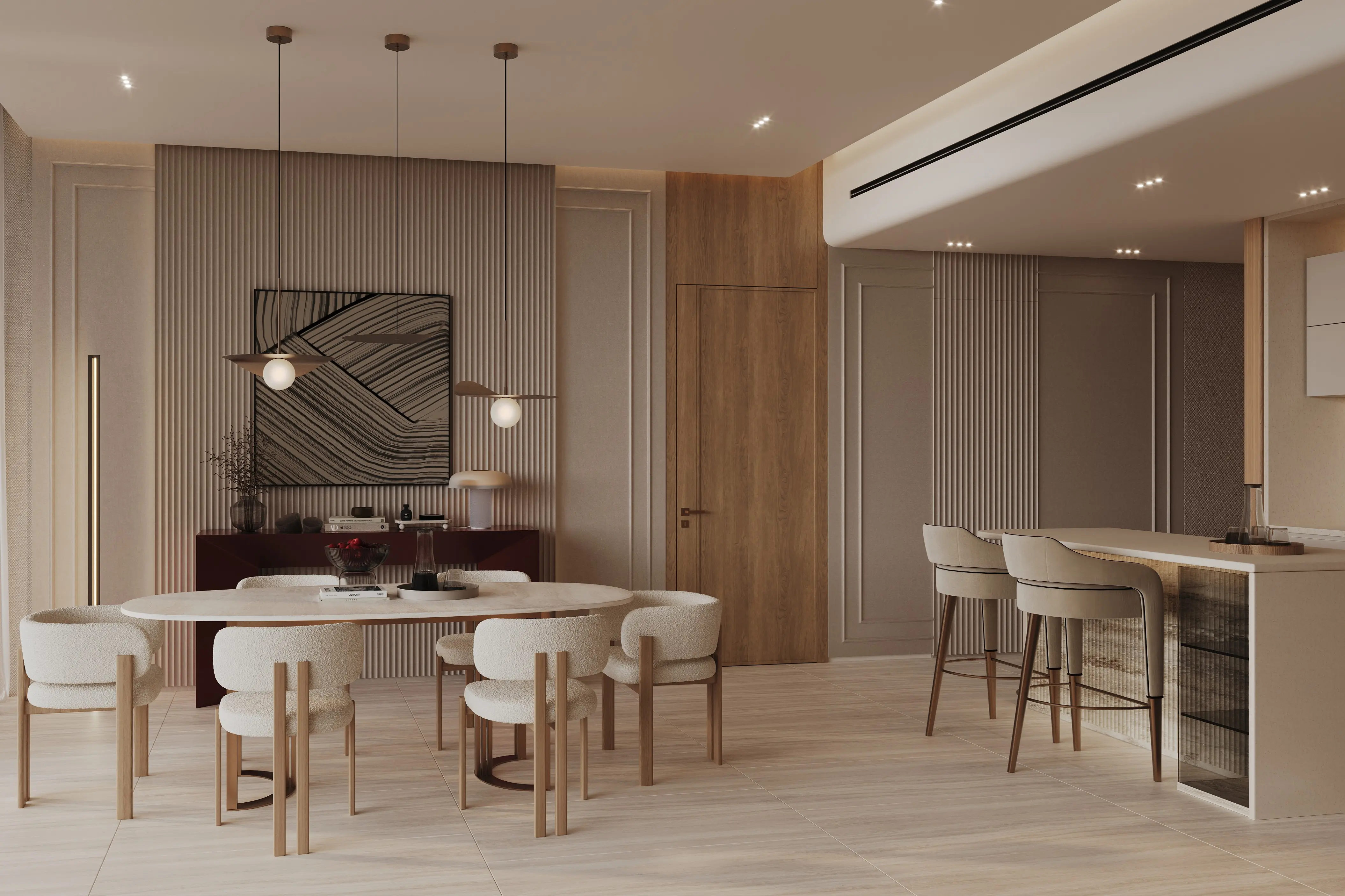 The project offers stylish studios and apartments with one, two, or three bedrooms, seamlessly blending refined elegance with modern comfort.
