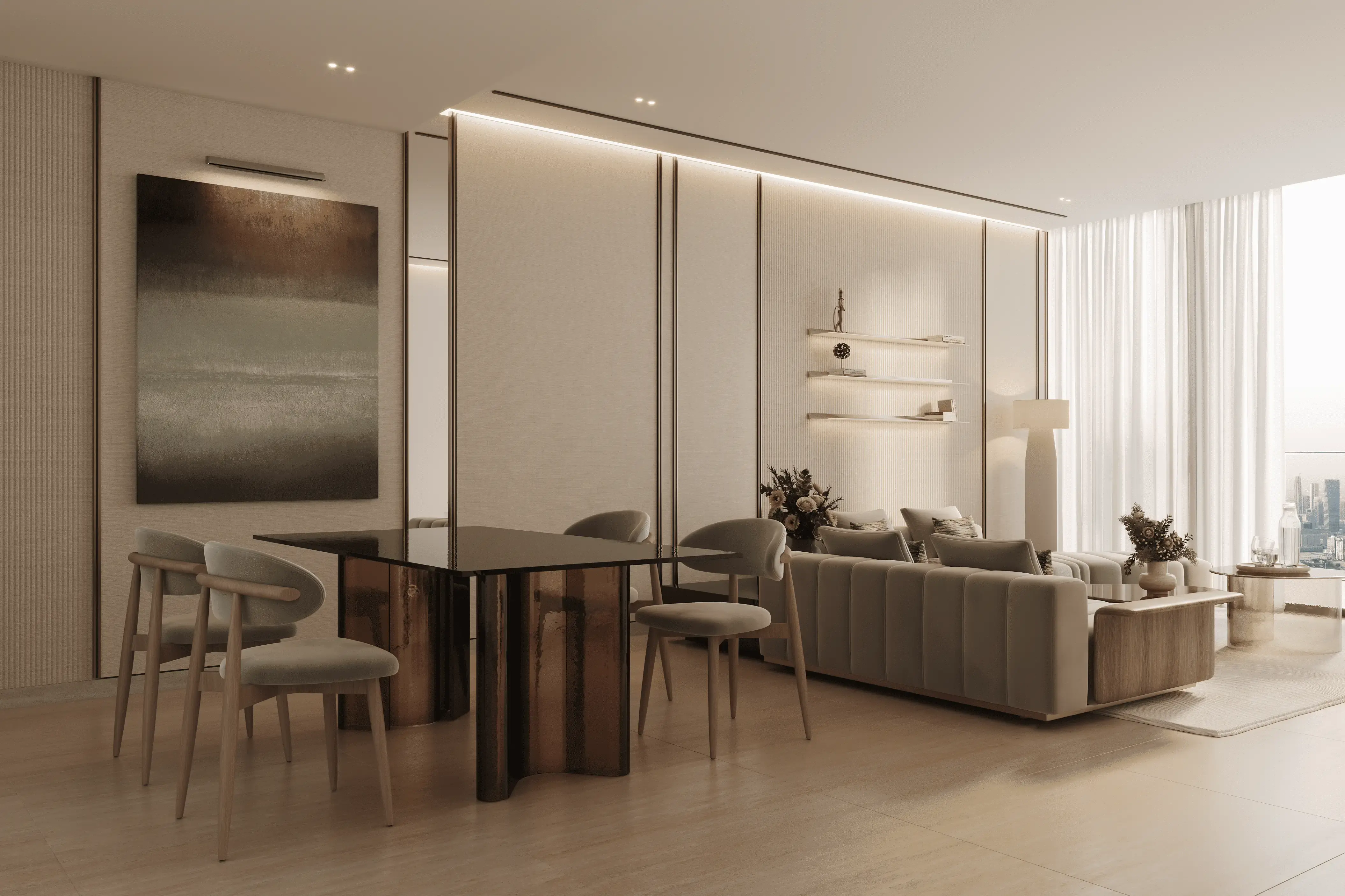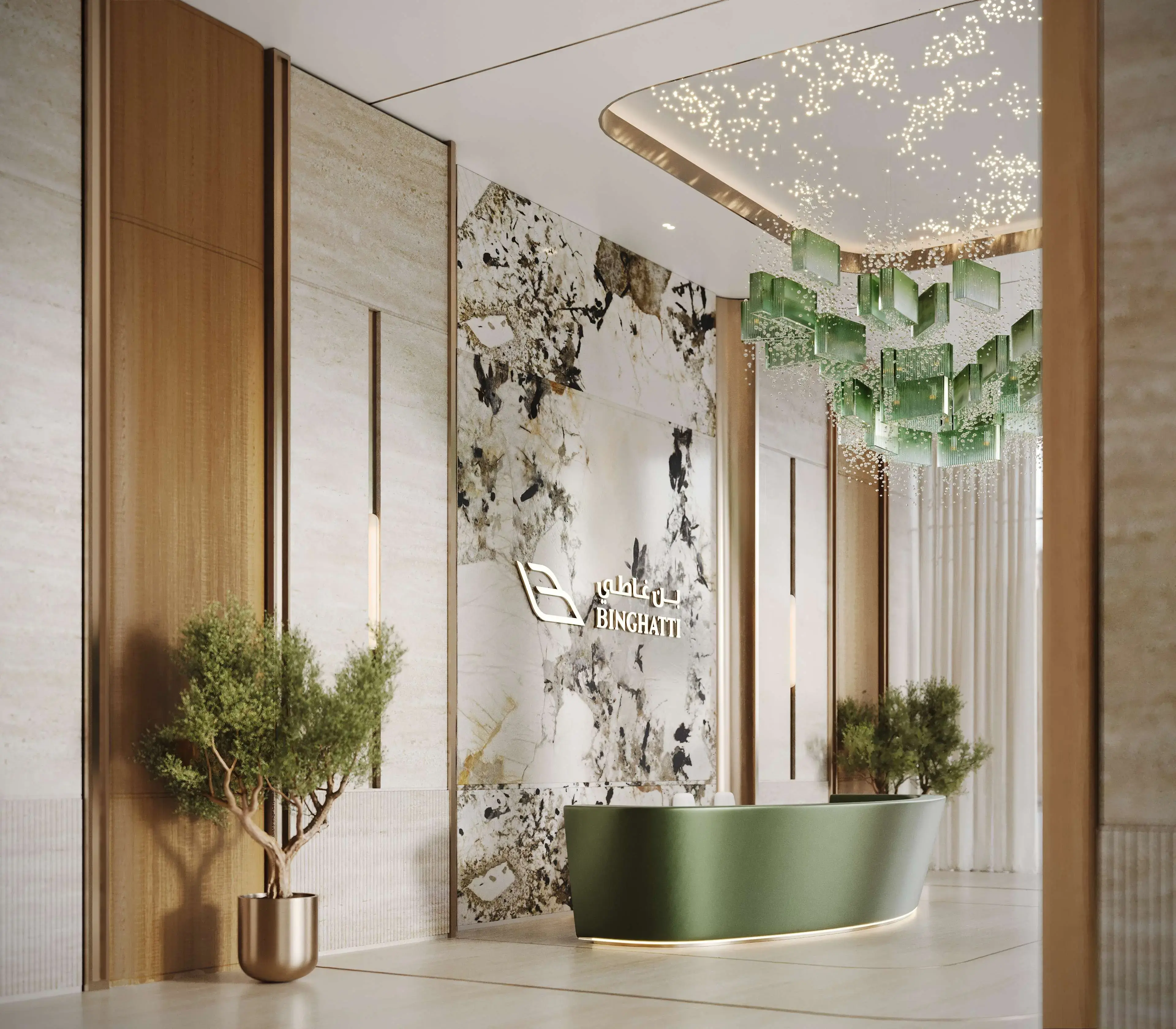 Binghatti Titania is an architectural landmark in the heart of the Majan community, reflecting the bold style and technical excellence of Binghatti. The building includes three basement levels, a ground floor, four podium levels, thirty-two residential floors, a technical level, and a roof. The elegant tower, with its expressive façade illuminated by vertical lines, combines modern aesthetics with everyday comfort. The architectural concept of Binghatti Titania is defined by geometric precision and minimalist forms. The tower embodies a forward-looking approach to design, where every element supports the harmony between visual impact and functionality. The project offers studios and one- and two-bedroom apartments, as well as commercial spaces. Interiors are crafted in light tones to enhance space and comfort. Premium finishing materials and panoramic windows fill the rooms with natural light and openness. Residents can enjoy a wide range of amenities, including a fully equipped gym, pools for adults and children, relaxation zones with sunken seating, and landscaped areas for leisure and walks. The project’s location provides easy access to key city landmarks: five minutes to Global Village and IMG Worlds of Adventure, fifteen minutes to Dubai Mall and Burj Khalifa, and around twenty minutes to the international airports.