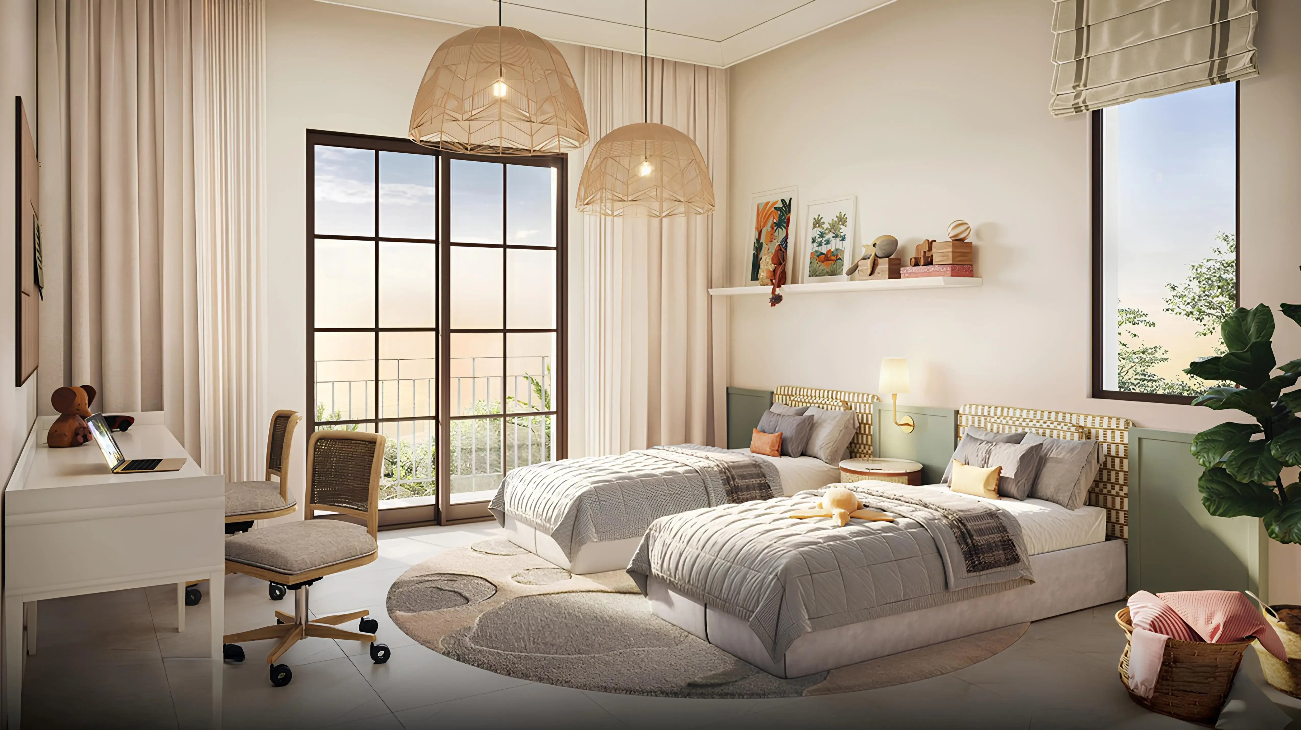 Residents of the complex have access to the rich infrastructure of Bloom Living, which is located within walking distance: several parks connected by pedestrian paths, a clubhouse with swimming pools and leisure zones, sports and recreational areas, a Town Center with restaurants, cafes and shops, Sunset Plaza and Sunrise Plaza with picturesque views, multifunctional amphitheaters for events and meetings, two international schools on the premises.