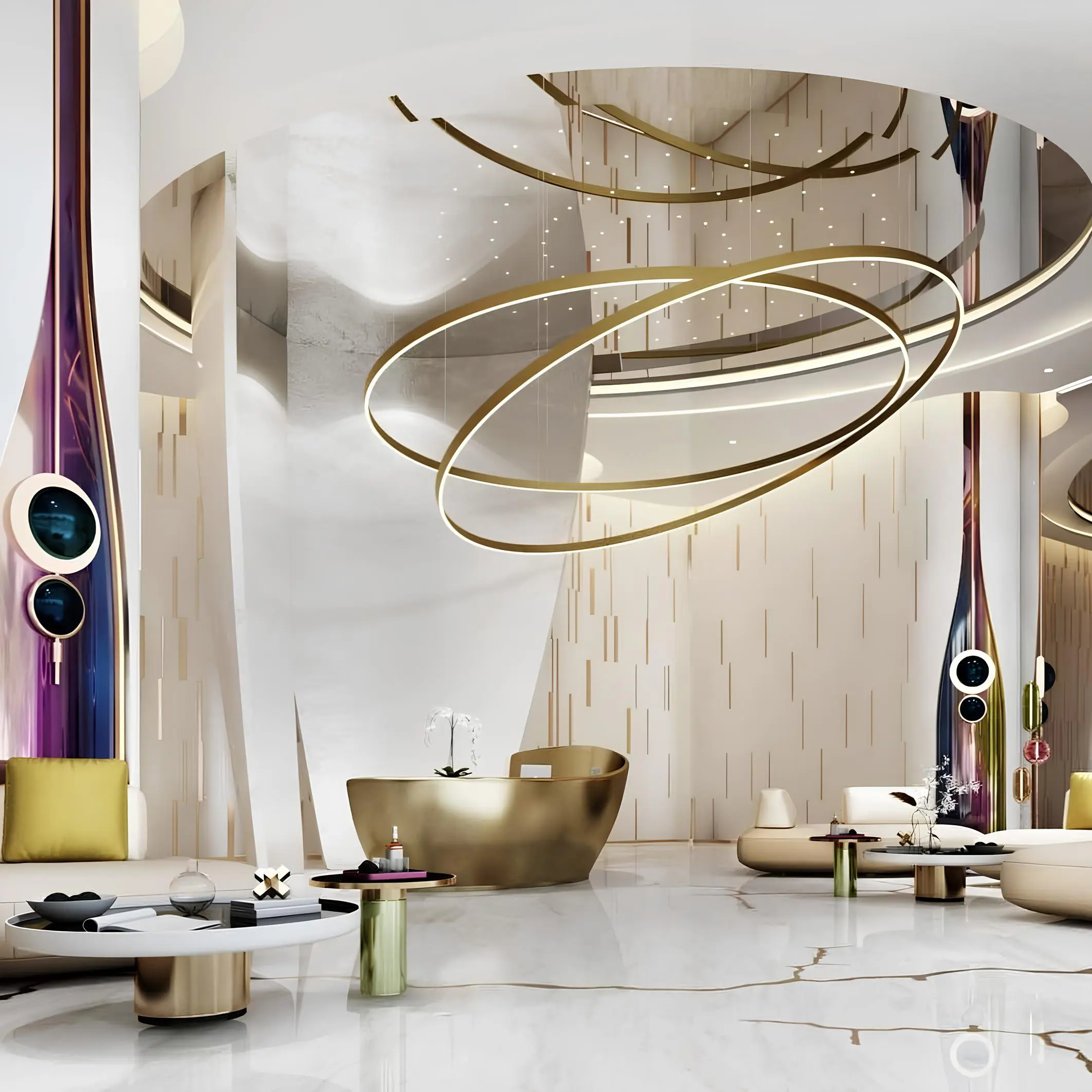 The complex provides exclusive leisure and entertainment facilities. Residents can enjoy glowing spheres, a unique planetary garden, a beauty bar, an infinity pool with solar-powered loungers, and innovative floating spa capsules that create an atmosphere of relaxation and luxury.
