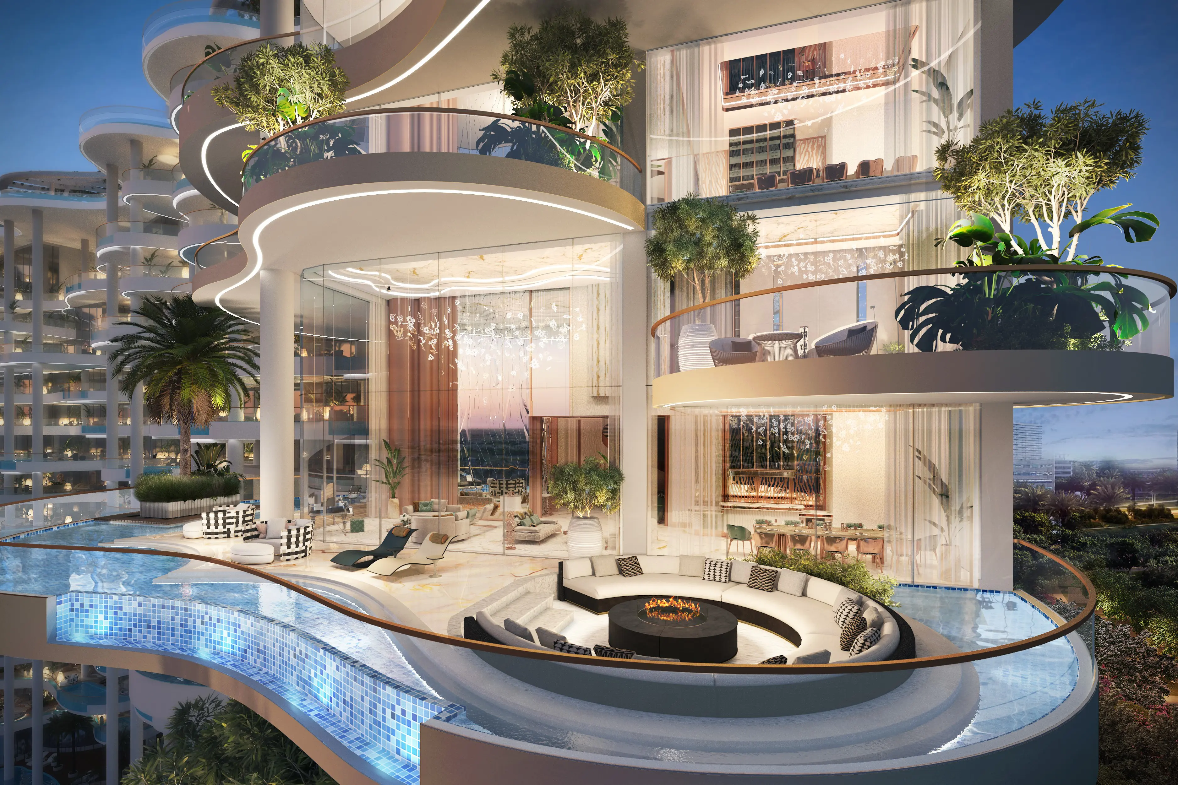 Couture By Cavalli is an ultra-luxurious project by Damac Properties, located in the historic Safa Park area of Dubai. The building features a configuration with a ground level, podium, 11 residential floors, and a rooftop. The architecture and design blend luxury, style, and modernity, embodying the Italian heritage of the Cavalli brand. The use of high-quality construction materials and attention to detail make each residence unique and refined. Couture By Cavalli offers luxurious 3-5 bedroom apartments designed in haute couture style. Spacious layouts and panoramic views of the city and bay create an atmosphere of comfort and sophistication. Each apartment is crafted with premium materials, emphasizing a high level of luxury and coziness. Residents have access to a variety of exclusive amenities, including a luxurious spa, fitness centers, private gardens, swimming pools, and high-end restaurants. The complex’s prime location in Safa Park offers easy access to the park for relaxation and walks. The complex is strategically located with excellent transportation links. Burj Khalifa, The Dubai Mall, Souk Al Bahar, Dubai Aquarium & Underwater Zoo, VR Park, and EKart Zabeel are just a 10-minute drive away. Dubai International Airport, Burj Al Arab, and Palm Jumeirah are within 30-40 minutes.