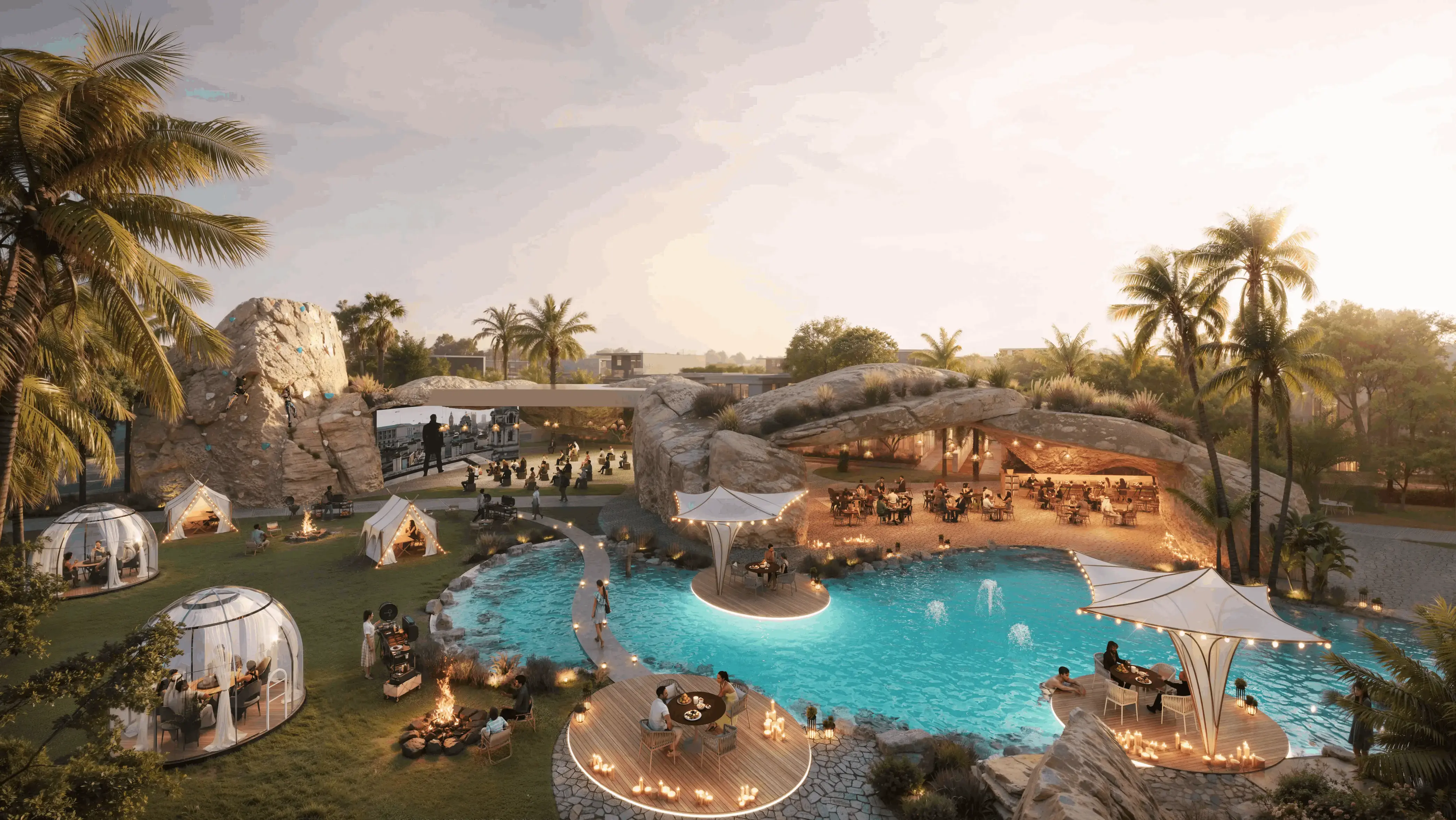 Residents have access to a wide range of amenities, including an eco-park, botanical garden, spa, saltwater pools, fitness areas, and a clubhouse with an organic-style pool. The eco-living concept brings together comfort, nature, and technology.