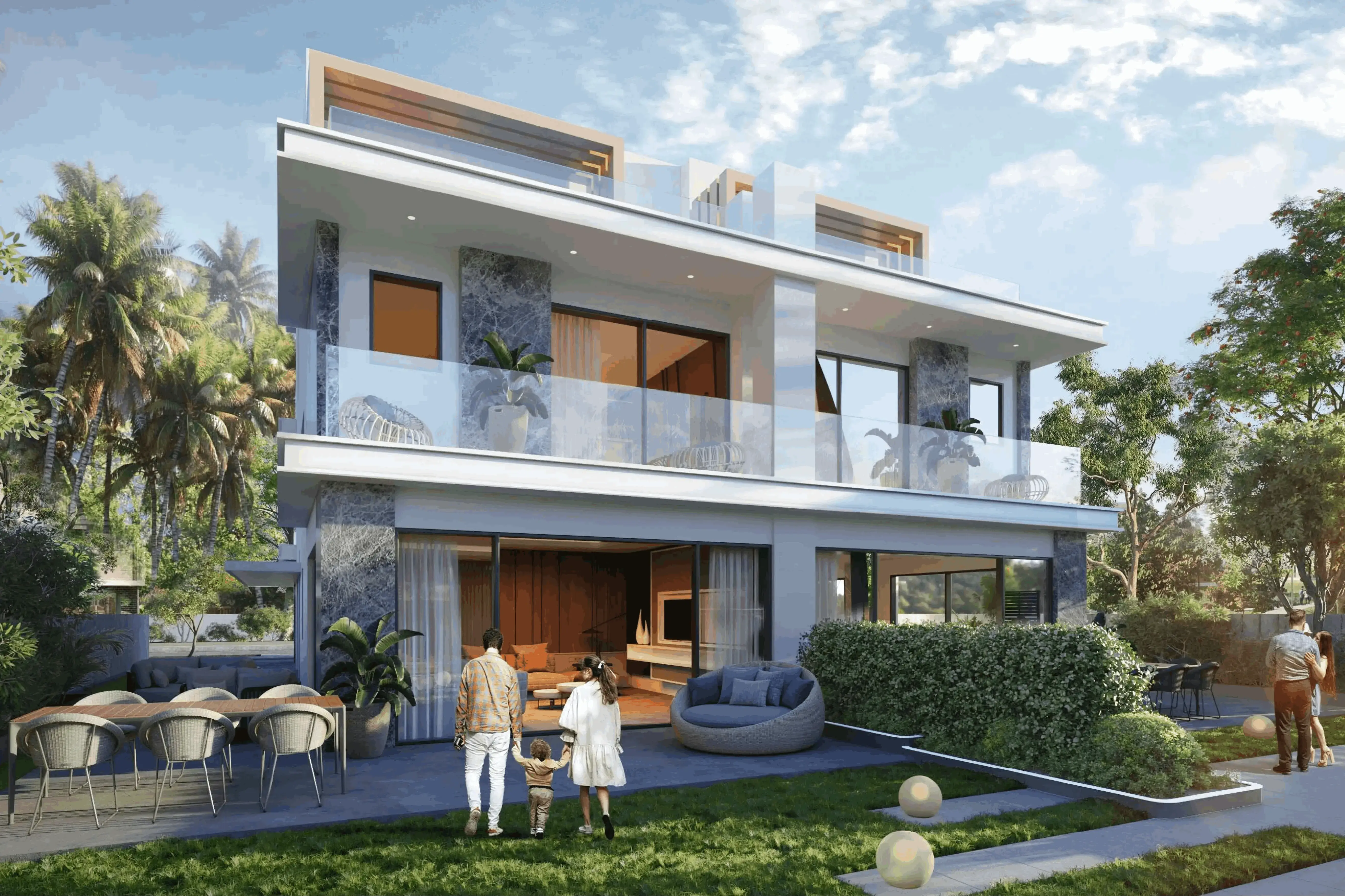 Damac Islands – Tahiti 1 is a project by Damac located in the Damac Islands 2 community, featuring villas and townhouses with four- and five-bedroom layouts. The architectural concept blends tropical motifs with modern minimalist lines, creating an atmosphere of a private island retreat.
