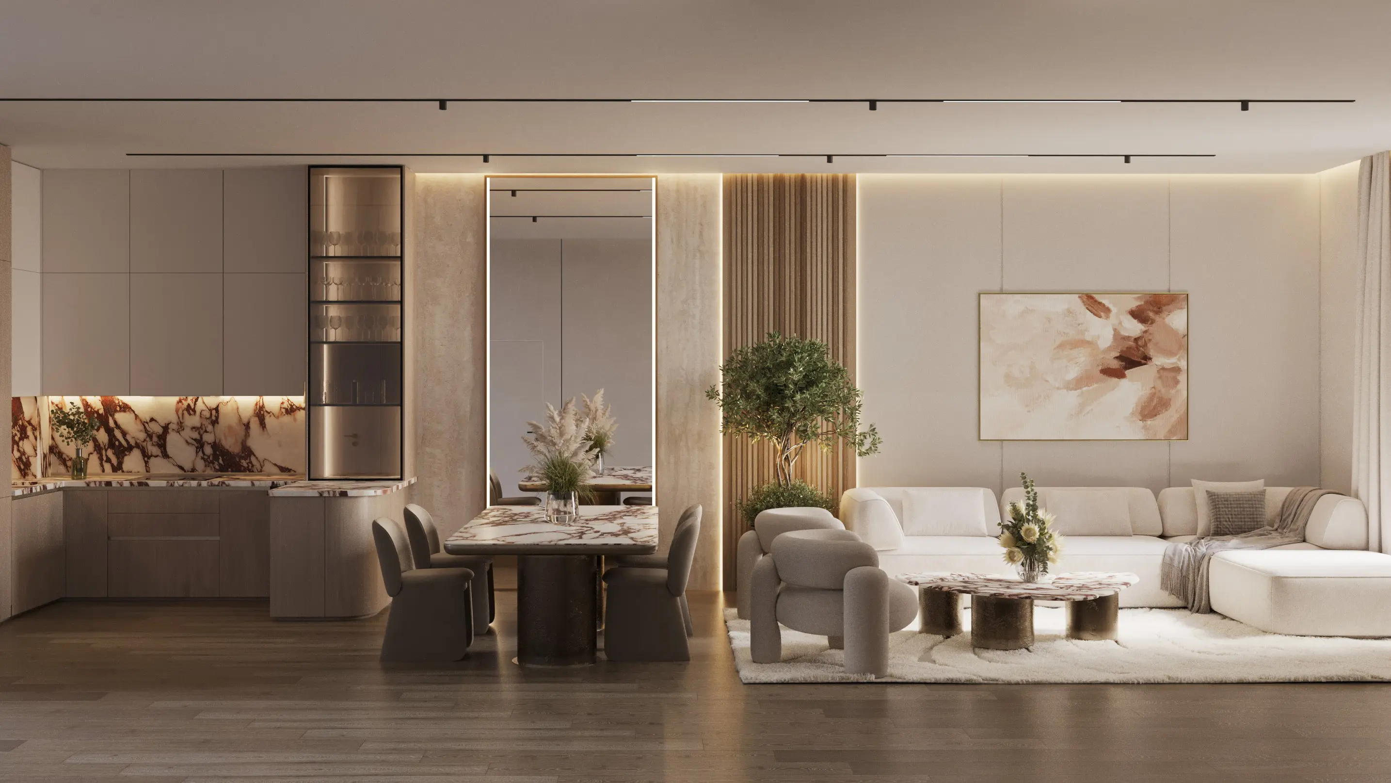 The development boasts a prime location near Dubai’s main highways, ensuring quick access to key infrastructure. Circle Mall is just a 5-minute drive away, Mall of the Emirates – 7 minutes, Dubai Marina and Palm Jumeirah – 10 minutes. Business Bay, Burj Khalifa, and Dubai Mall can be reached in under 15 minutes.