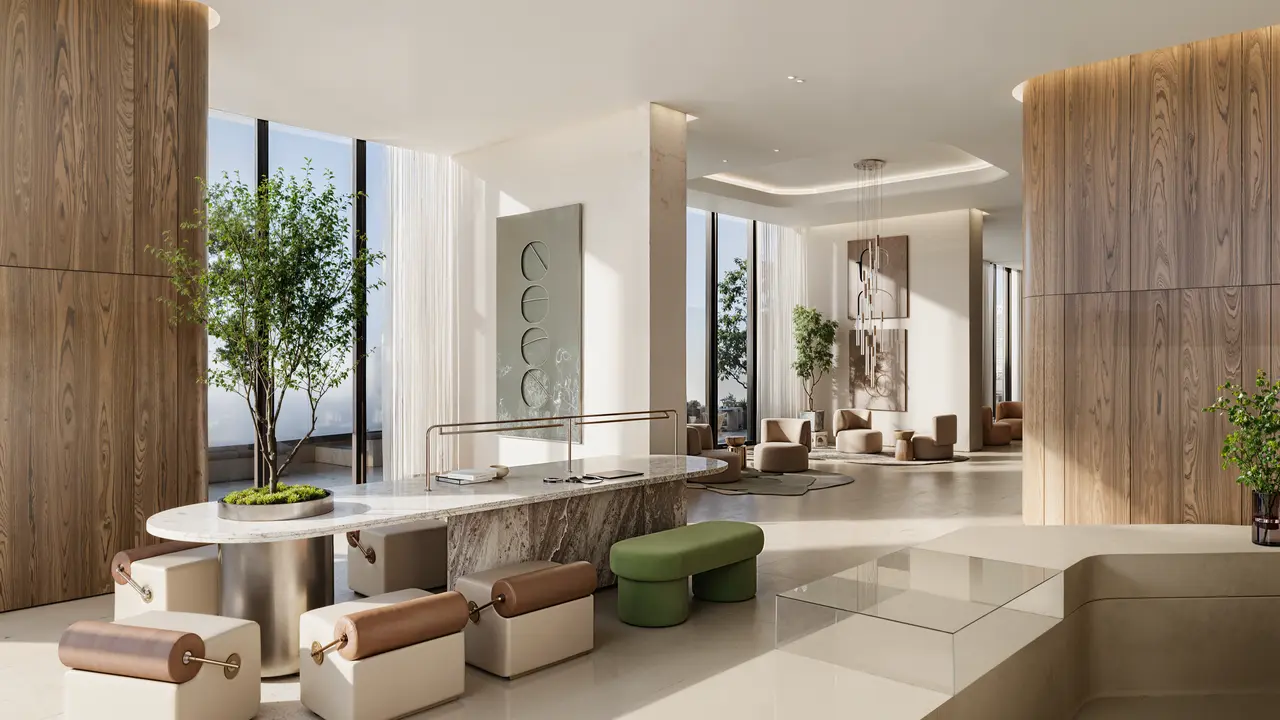 DWTN Residences, an elite residential complex developed by Deyaar Development, stands as one of Dubai's tallest residential skyscrapers. Its contemporary facade, inspired by the city's dynamic energy, blends glass panels and metal structures to create a striking silhouette against Dubai's skyline. The 110-story tower is located in the prestigious Business Bay district and features two seamlessly integrated towers of varying heights. The structure comprises four basement levels, a luxurious ground floor, and an 11-level podium, with residential units occupying 99 floors. The rooftop hosts exclusive amenities. The development offers residences ranging from 1 to 5 bedrooms, including duplexes and lavish penthouses. Interiors showcase impeccable craftsmanship, featuring premium marble finishes, bespoke design elements, and state-of-the-art kitchen appliances. DWTN Residences redefines luxury living with its six themed "vertical worlds" of amenities: House of Wellness: Spa facilities and yoga studios, Sky Club & Park: Business infrastructure and leisure spaces, Cloud Nine: infinity pool with panoramic views. Additional highlights include a private cinema, golf simulator and more. DWTN Residences provides quick access to key destinations: just 2 minutes to Sheikh Zayed Road, 5 minutes to The Dubai Mall and Downtown, and 7 minutes to Dubai Water Canal. DXB is a 15-minute drive away.