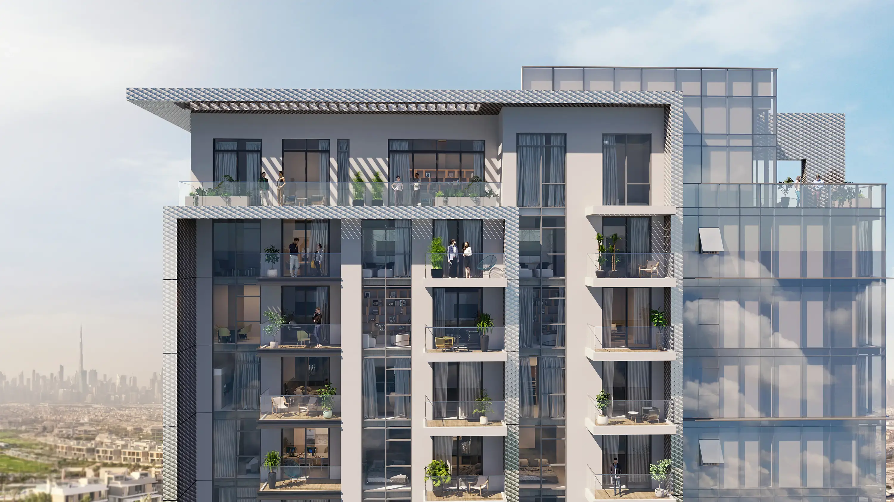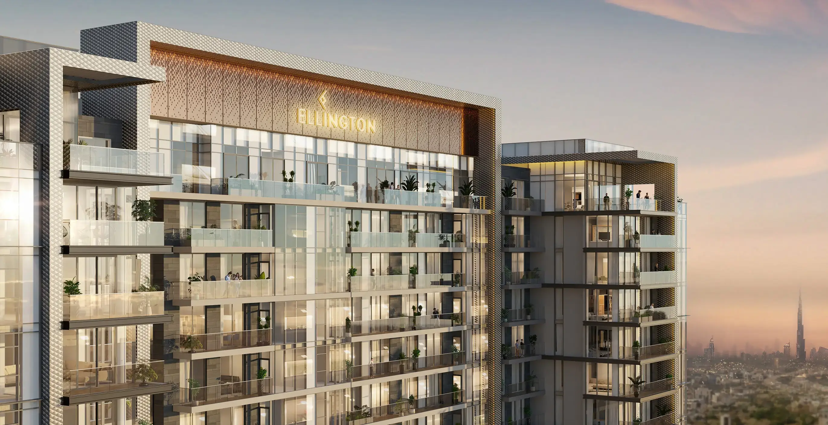 Ellington House II is a sophisticated apartment complex created by developer Ellington Properties in the prestigious Dubai Hills Estate area. The elegant building includes a ground floor, a mezzanine and ten residential levels. The exterior of Ellington House II combines modern style with timeless classics, featuring spacious balconies and facades, maximizing light penetration and enjoying panoramic views.
