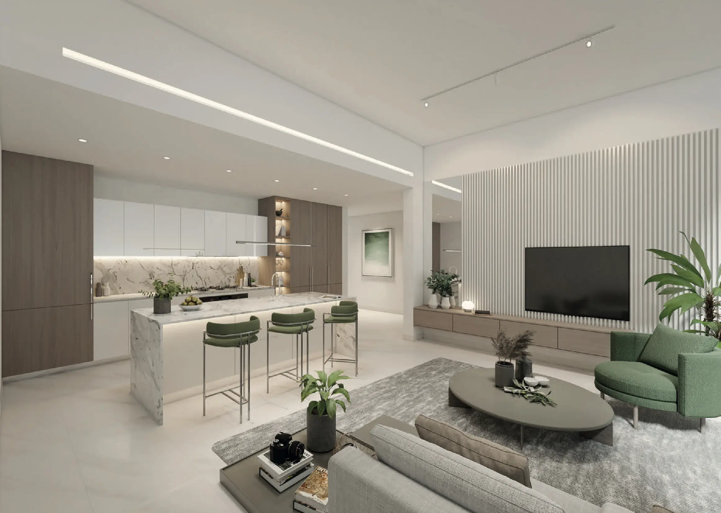 Ellington House III offers a variety of different layouts, from cozy studios to spacious apartments with 1-4 bedrooms, as well as luxury duplexes with 4 bedrooms. The interior combines minimalistic accents with elements of comfort suitable for family life. Featuring a neutral color palette and floor-to-ceiling panoramic windows, the apartments are filled with natural light.