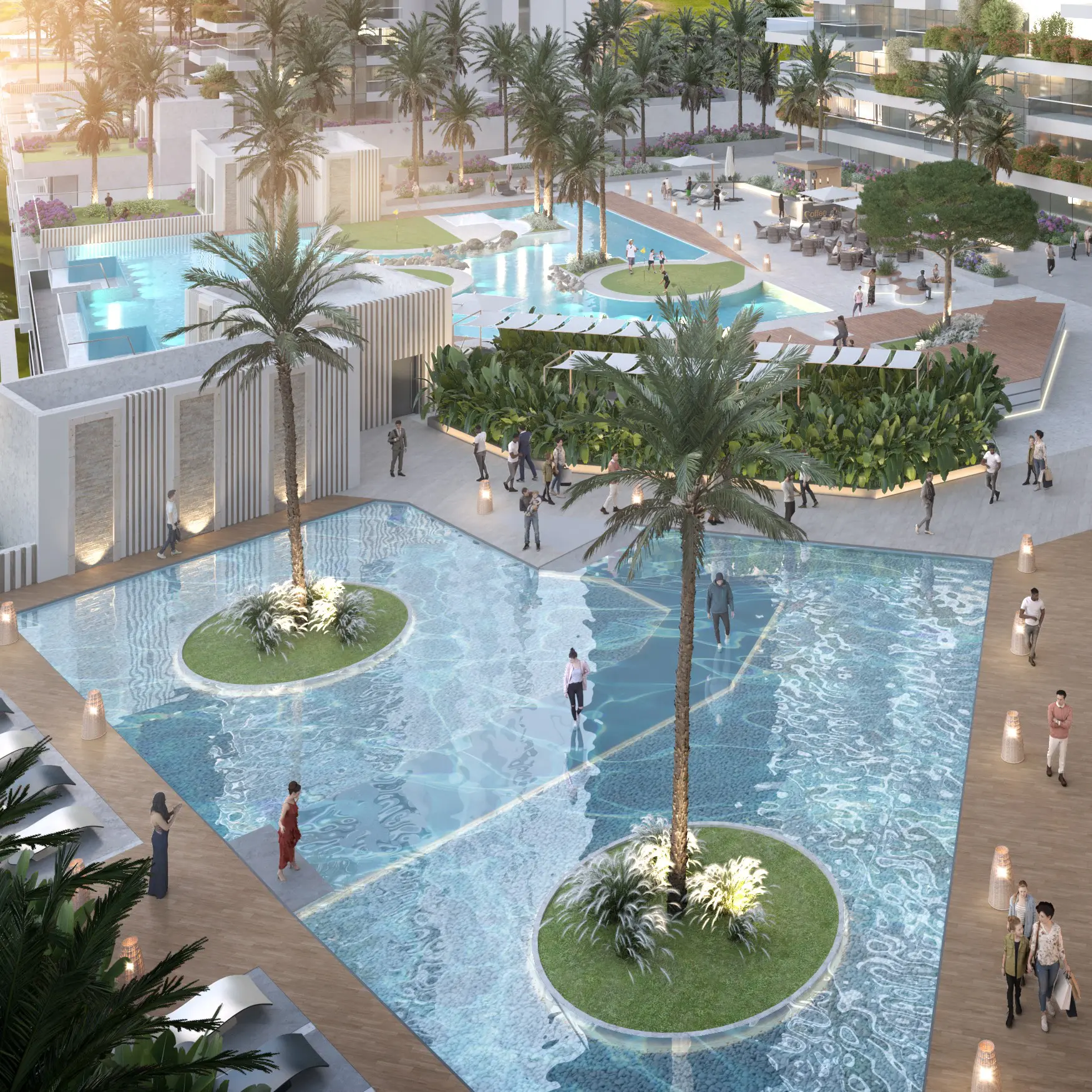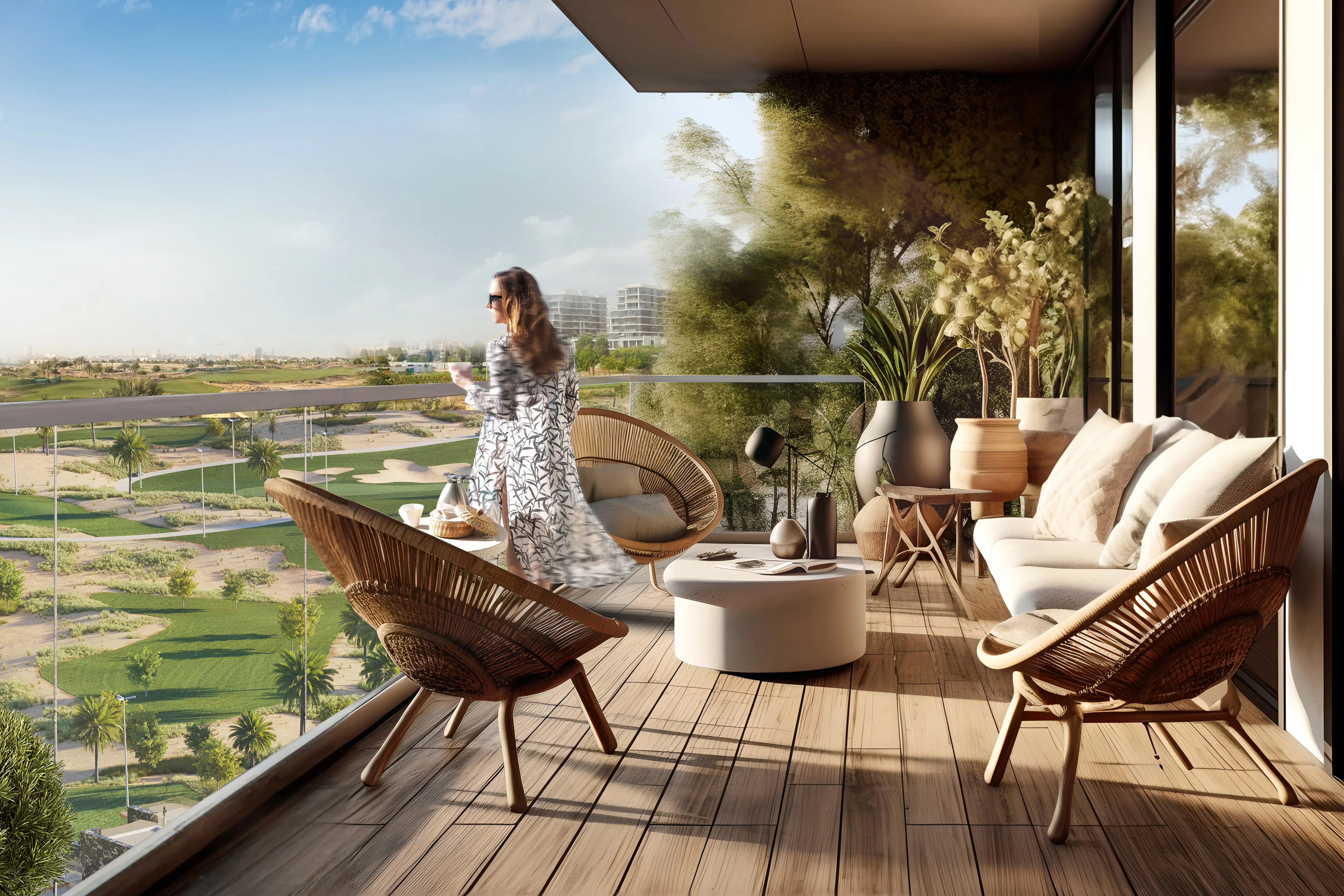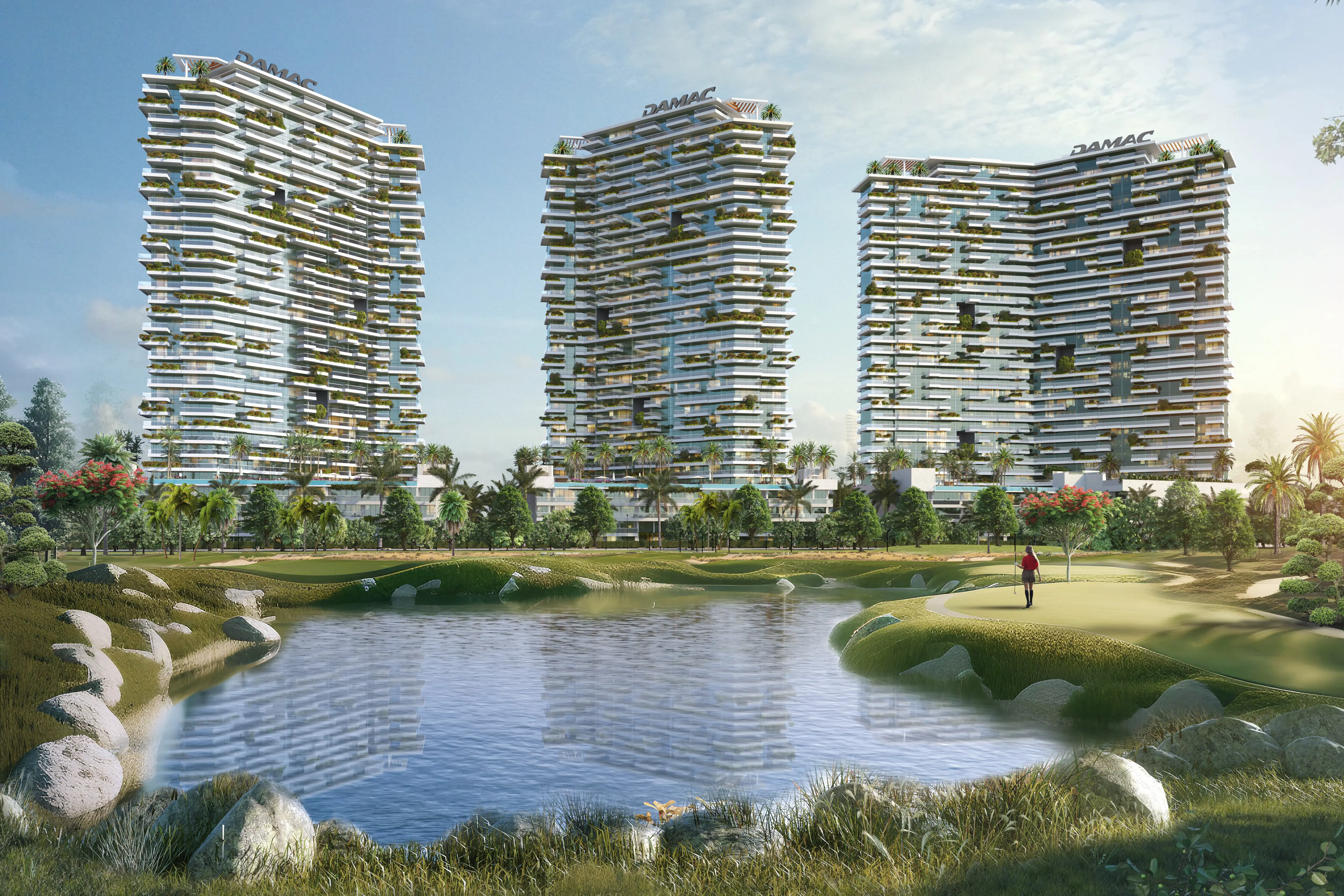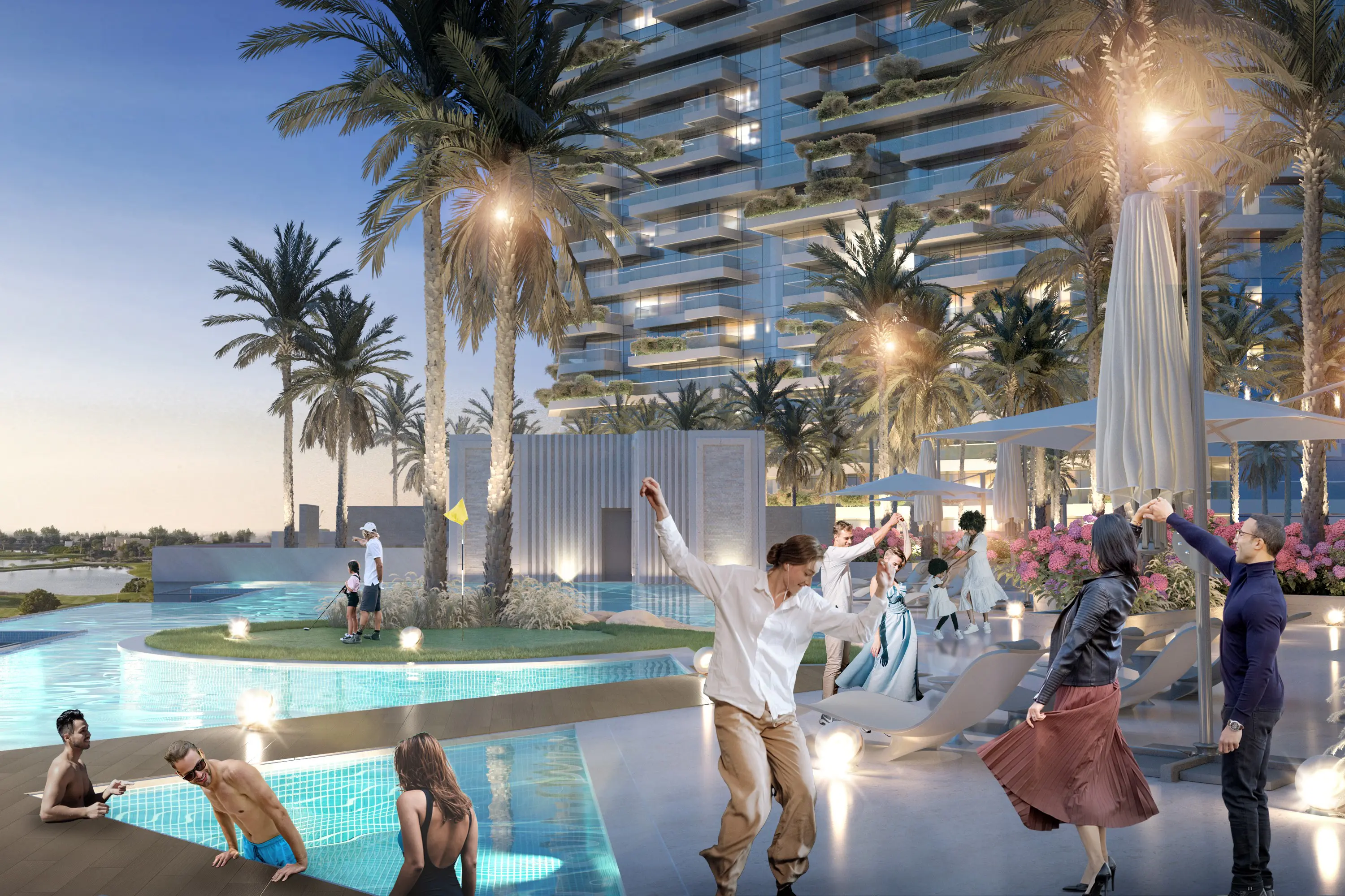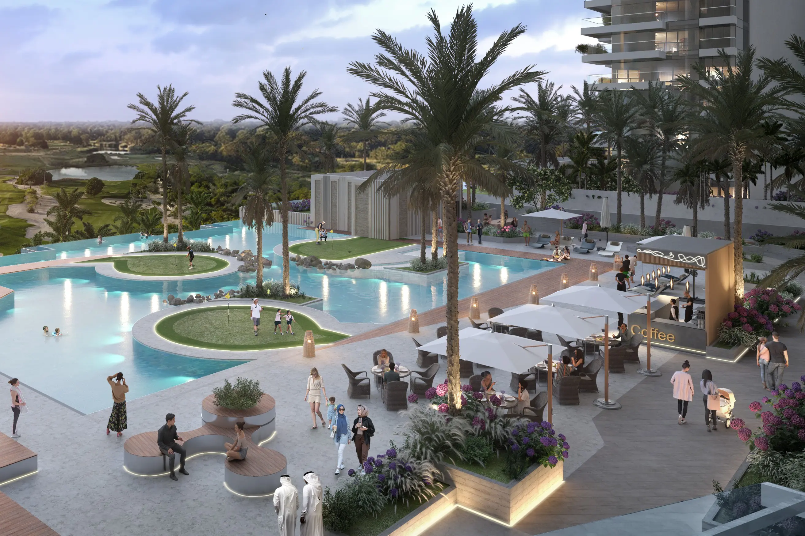 Golf Greens 2A is the first tower of the second building in a residential development by Damac, located in the Damac Hills community. The project features a ground level, 3 podium floors, 31 residential floors, and a rooftop. The collection includes 1- and 2-bedroom apartments, as well as 2- and 3-bedroom townhouses. The architecture follows a contemporary style with an emphasis on panoramic views: each residence features balconies and terraces overlooking the golf course. The buildings blend seamlessly with the lush surroundings, creating a sense of closeness to nature. The spaces are designed for both privacy and active living, with private lounge areas and fitness zones. Interiors are styled in a light color palette, using natural materials and well-planned layouts. The design balances the aesthetics of nature with the comfort of urban living. Amenities include swimming pools with islands, waterfront lounge areas, a palm garden, golf simulator and academy, night golf zones, creative 3D printing spaces, golf carts, relaxation areas, and sky golf-themed platforms. The complex is situated in Damac Hills with direct access to the golf course and convenient transportation links. Within 10–15 minutes by car, residents can reach Dubai Polo & Equestrian Club, Dubai Autodrome, Miracle Garden, Dubai International Stadium, Global Village, IMG World, and Hamdan Sports Complex.