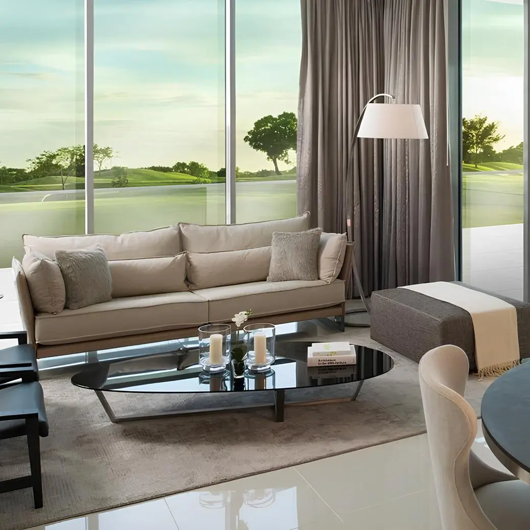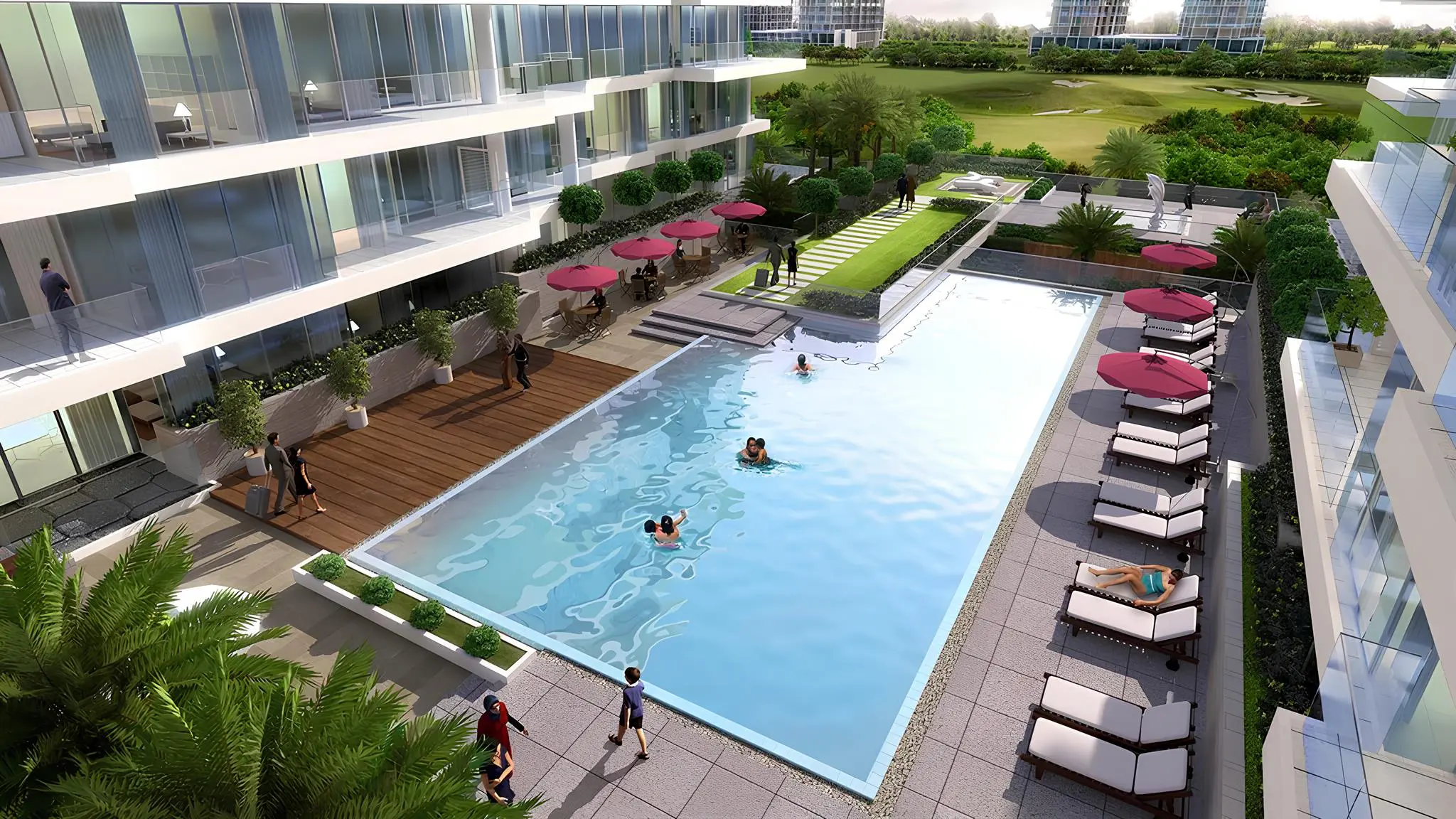 Golf Promenade is a project by Damac Properties located in the DAMAC Hills community, comprising five buildings ranging from seven to nine storeys. The development offers studios, apartments, and townhouses with one, two, or three bedrooms, designed for living amidst the green landscapes of a golf course.