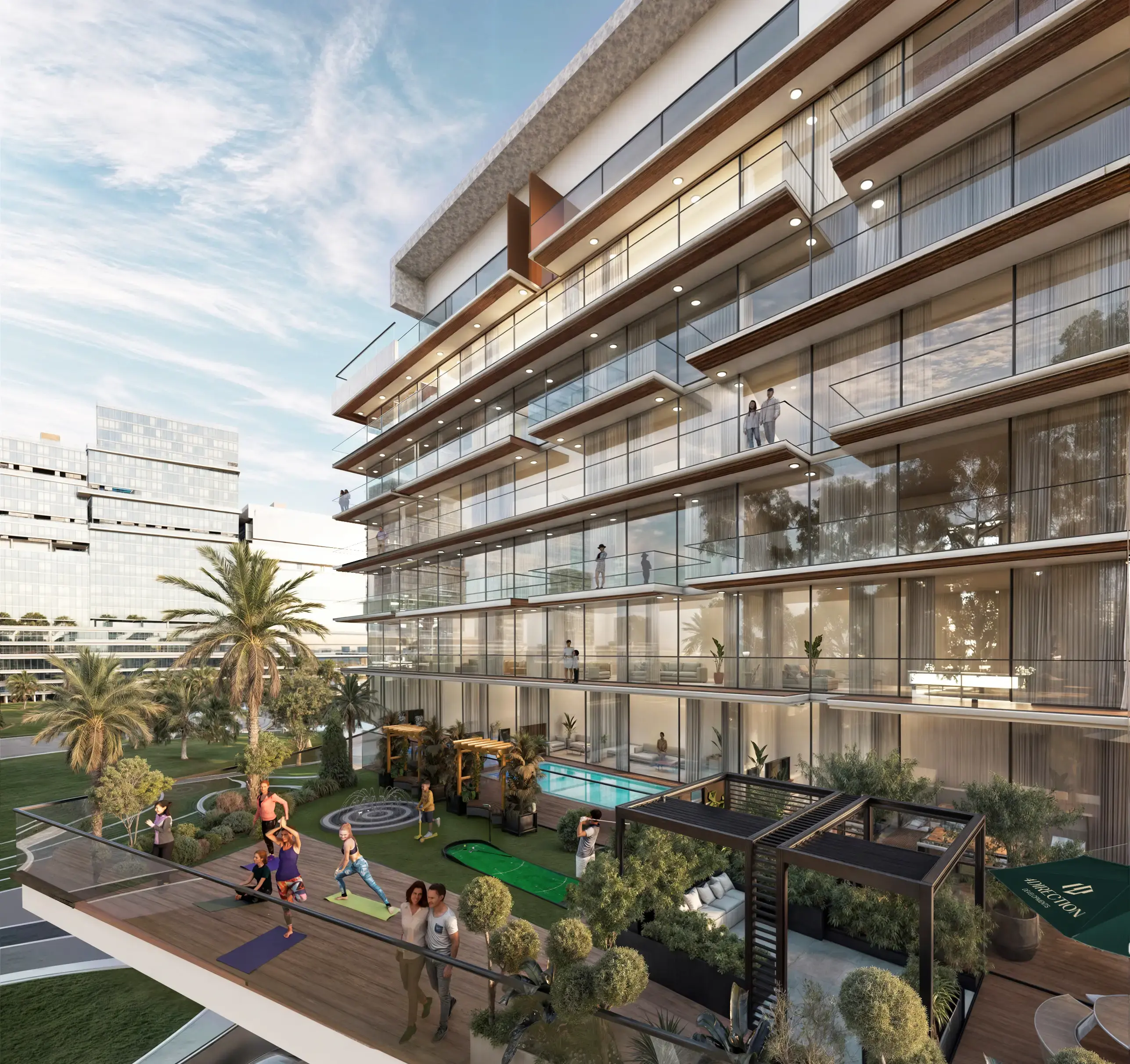 Heaven Views 1 is a project by developer 4Direction Developers, located in Dubailand Residence Complex, Dubai. The complex includes a ground floor, two podium levels and seven residential floors with luxury studios and apartments with one or two bedrooms. Some residences have their own swimming pool. The architecture of the building stands out for its concise and modern design: the facade is decorated with vertical landscaped walls, the balconies and terraces are spacious, and the roof has a recreation area with landscaping and decorative elements that give the project an eco—friendly and premium look. The interiors of the apartments are made using high-quality materials and exquisite finishes. The main focus is on a light color palette and panoramic glazing, which fills the rooms with natural light and visually expands the space. Residents can take advantage of a wide range of amenities: a swimming pool, fitness areas, yoga and mini golf courses, a barbecue area, a cinema, special pet areas, landscaped gardens, and a smart home system. The complex is conveniently located relative to key infrastructure facilities: Metro Station is a 4—minute drive away, Dubai Mall is 20 minutes away, Dubai International Airport is 23 minutes away, Burj Khalifa is 25 minutes away, Jumeirah Beach is 28 minutes away, and Al Maktoum Airport is 32 minutes away. EOI: 50 000 AED Launch date: February 2026