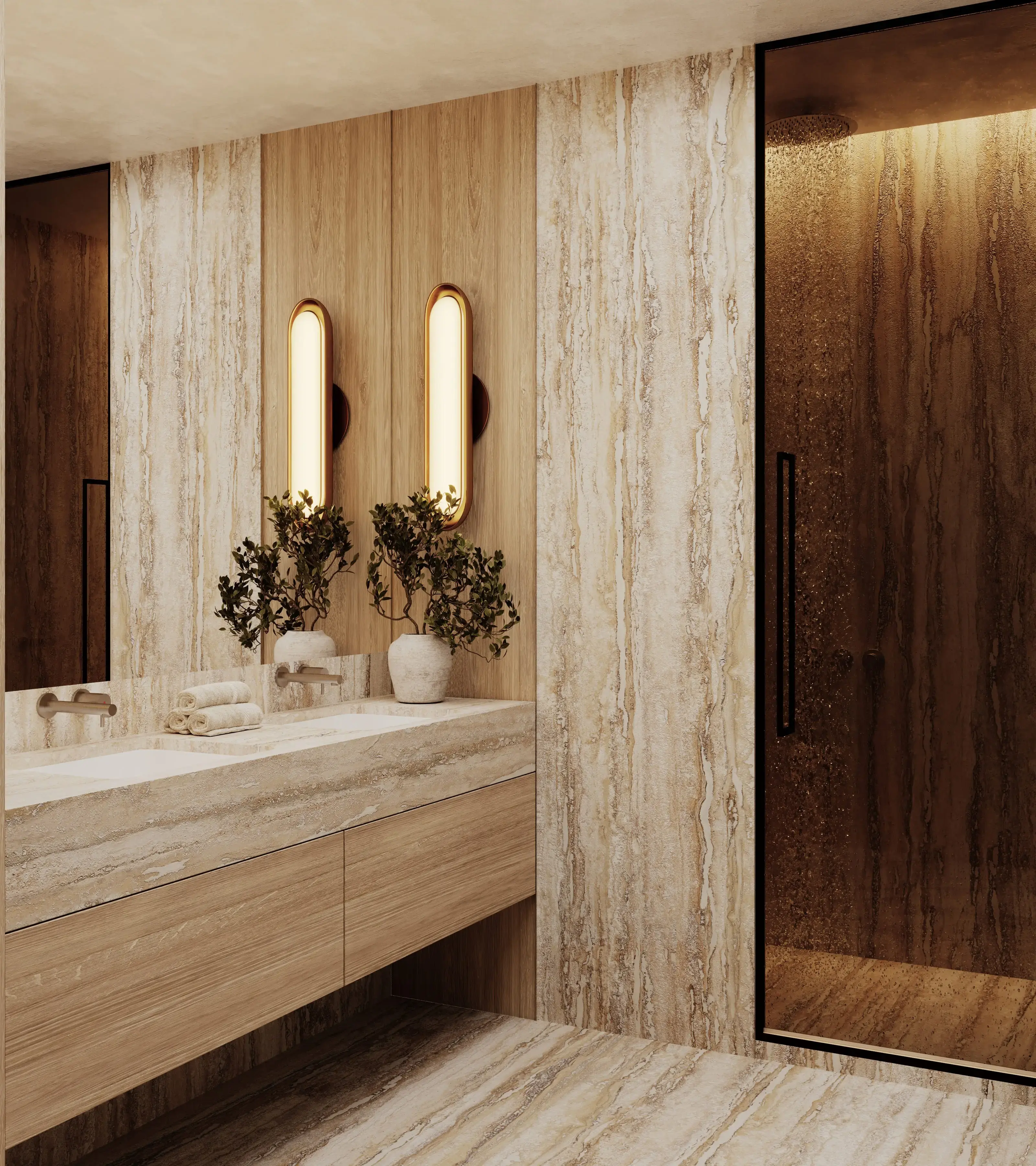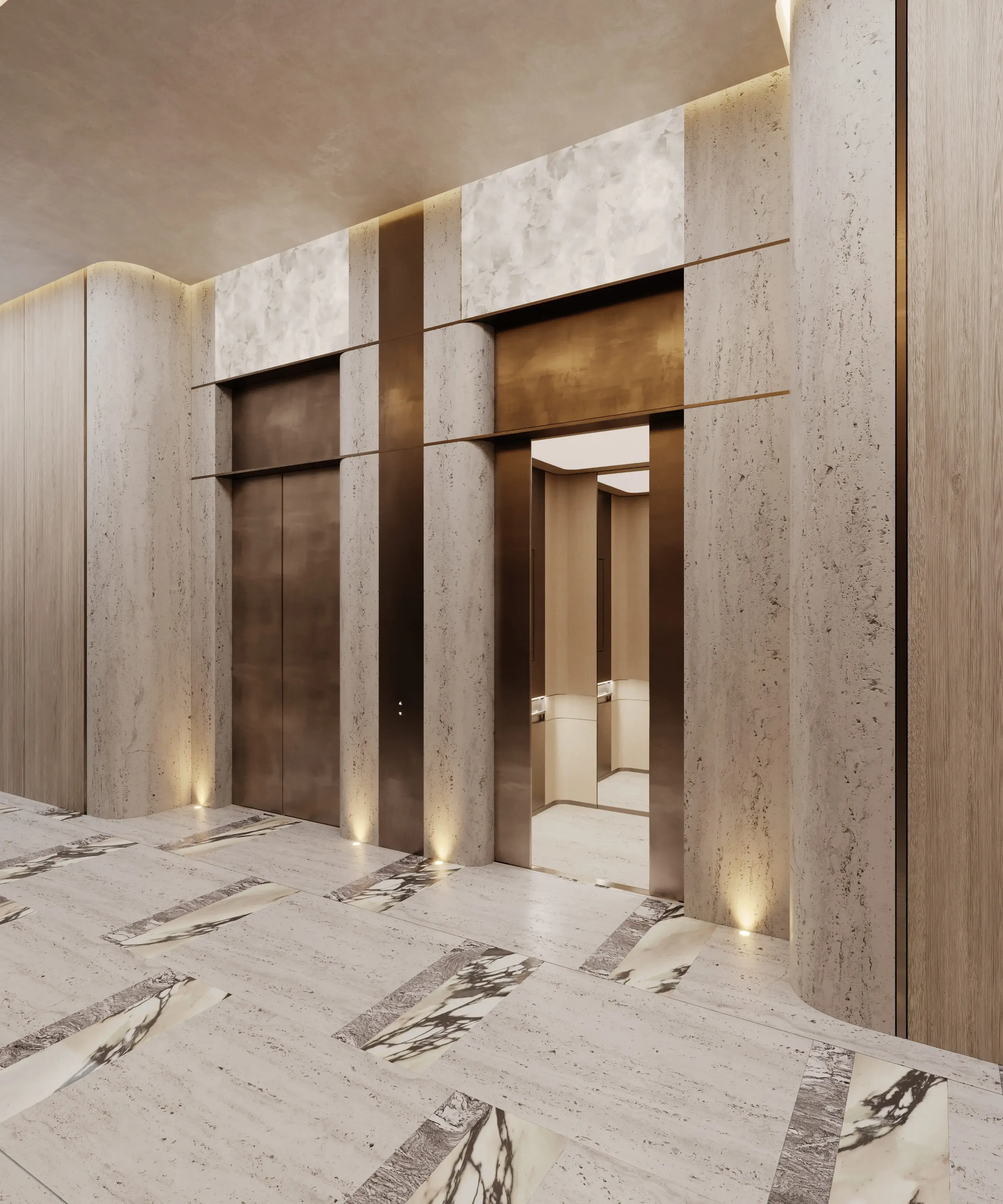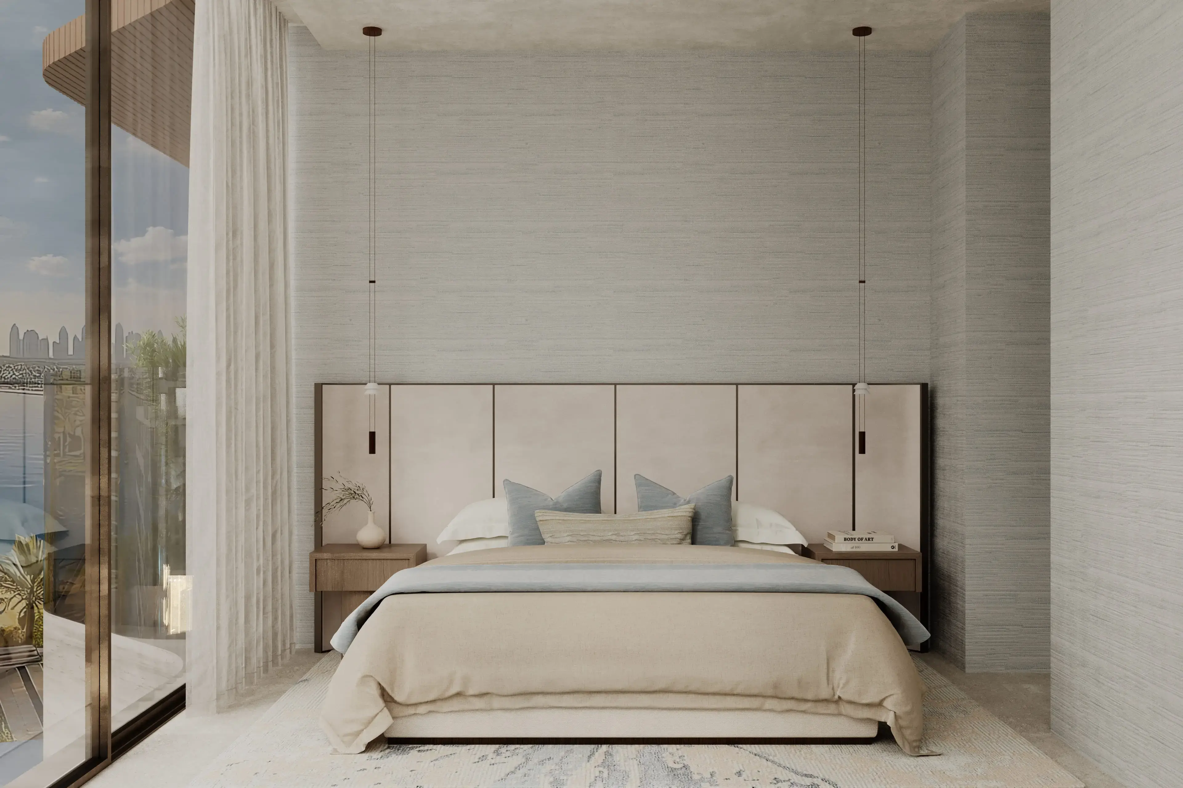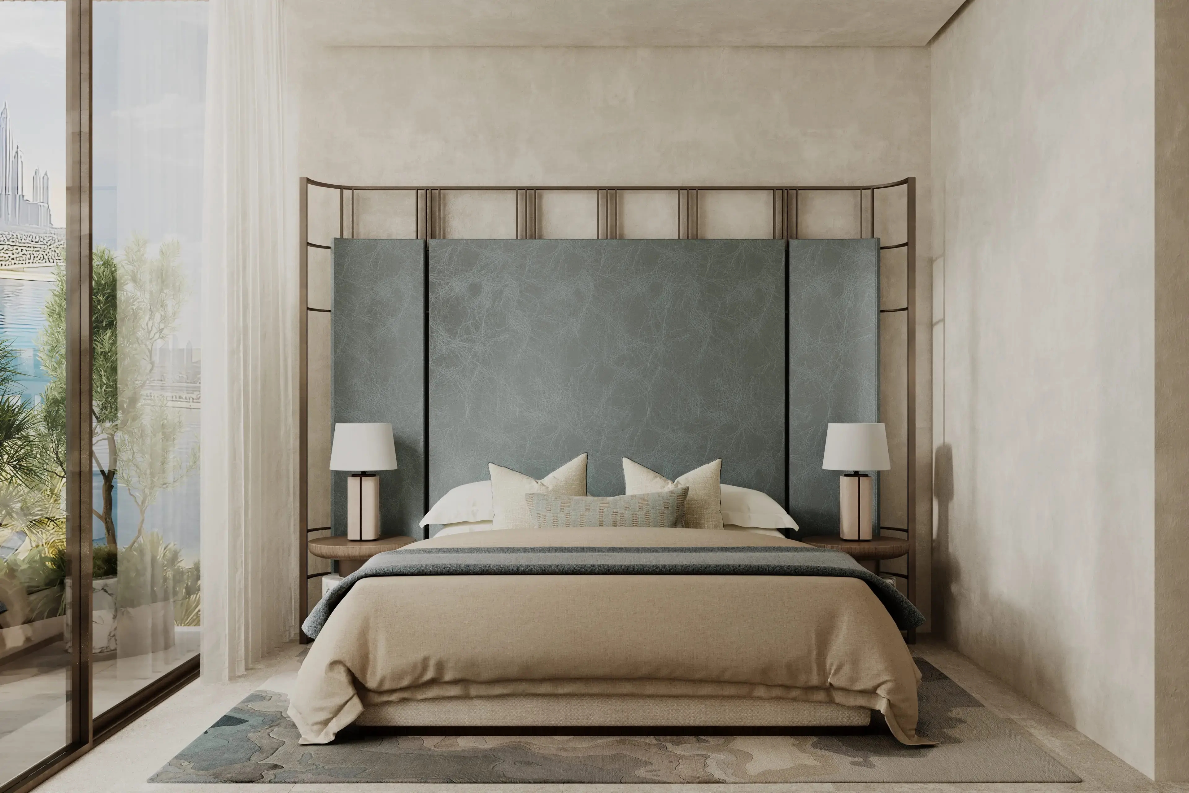 The project offers apartments with 1–3 bedrooms, as well as two-bedroom duplexes with a maid’s room, three-bedroom residences with a maid’s room and a private garden, and one-bedroom layouts with a garden. The interiors are designed in a calm palette with natural tones and expressive accents, reflecting contemporary yacht-inspired aesthetics.