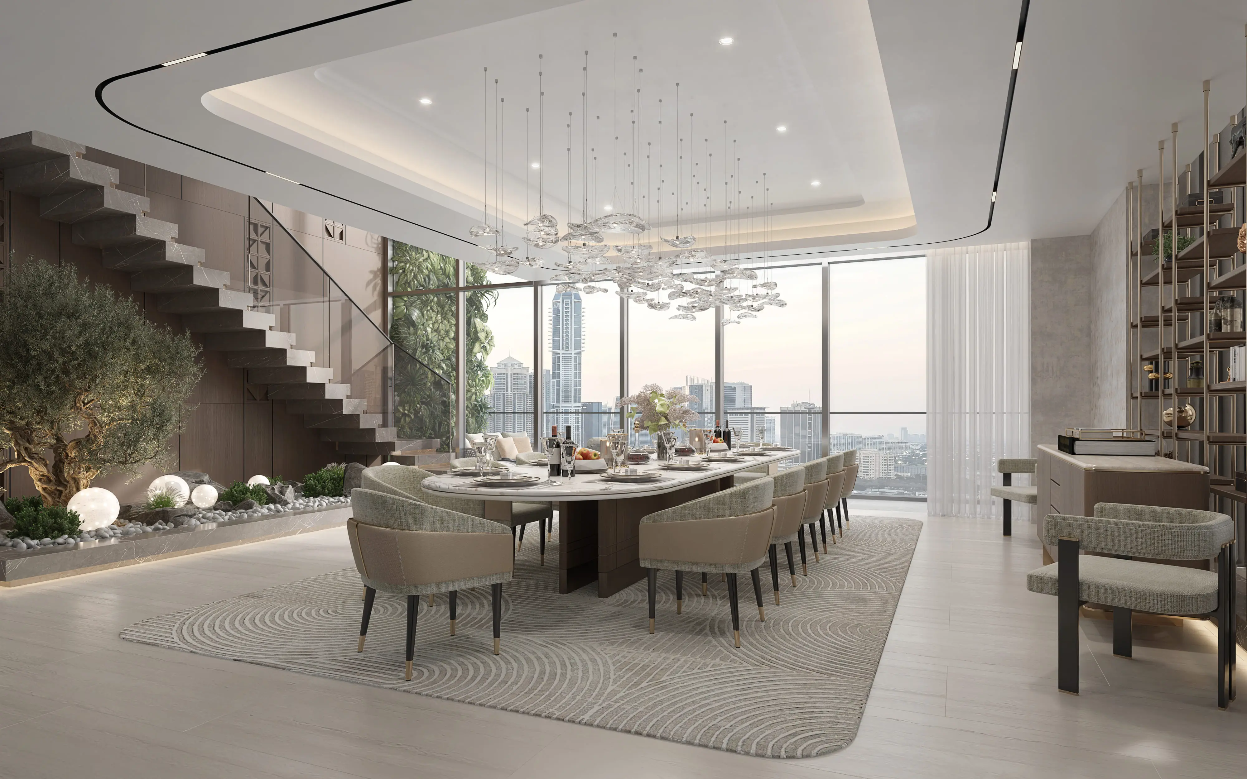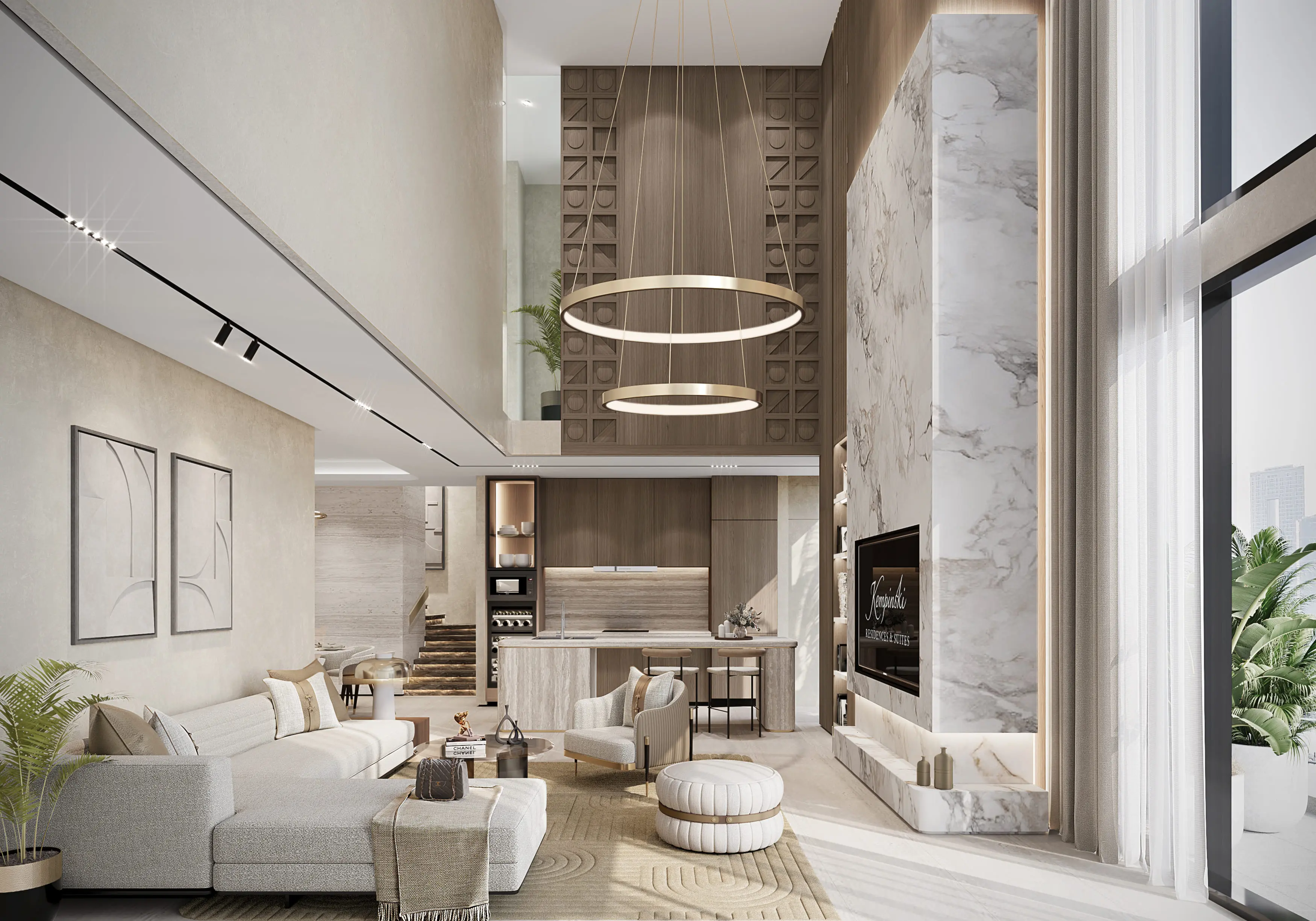 Kempinski Dubai Marina Residences is an exclusive project by Devmark in the prestigious Dubai Marina district. The developer is ABA Group. Vertical gardens framing the facade add an elegant accent to the restrained exterior. The project combines a high level of service, a range of amenities, and a collection of premium residences with luxurious finishes. The skyscraper includes forty-seven residential floors, three basements, a ground floor, four podium levels, two technical floors, and a rooftop offering one- and two-bedroom apartments as well as two- to five-bedroom duplexes. All residences are equipped with a smart home system. Finishes feature marble, quartz, and travertine; bathrooms are fitted with high‑end sanitary ware, and kitchens come with premium‑class appliances.