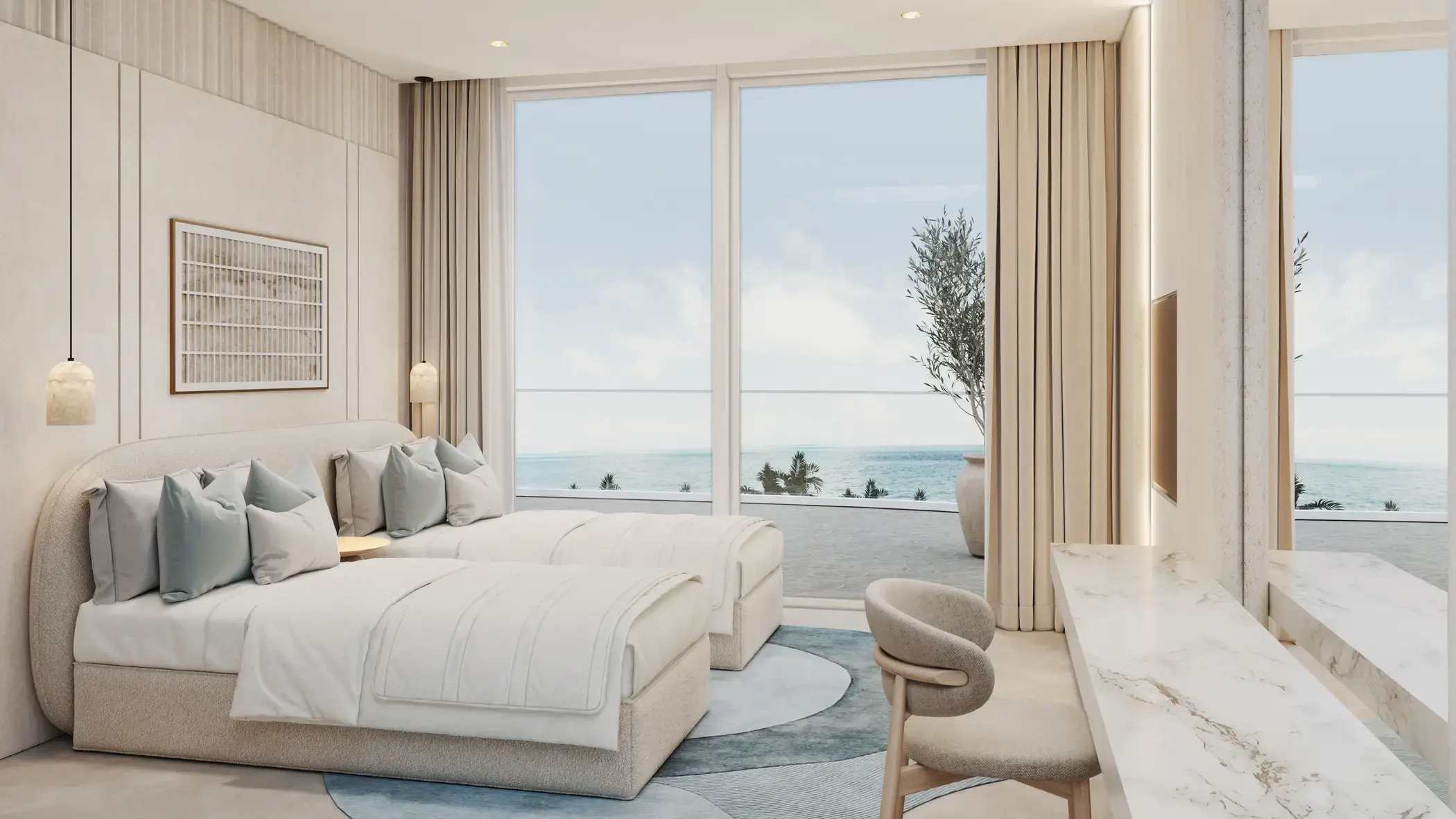 La Perla is a premium residential complex from BNW Developments, which is located on Al Marjan Island, in Ras Al Khaimah. The building has two basement levels, a ground floor, six residential floors and a roof. The organic symmetry and marine silhouettes in the lines of the facades give the building a softness and a unique identity against the background of urban development. Thanks to its curved shape, La Perla organically follows the curve of the coastline. The complex offers beautiful views of the bay. For sale in La Perla are spacious apartments with 1, 2 and 3 bedrooms, as well as penthouses with high ceilings and landscaped Spanish courtyards, duplexes with modern loft aesthetics. All the residences have well-thought-out layouts and are focused on maximizing the use of space, natural light and panoramic views. The complex offers a wide range of premium amenities for a comfortable and luxurious life: panoramic viewing platforms, a rooftop pool, a Spanish courtyard, an outdoor cinema, a Jacuzzi, a relaxation area, a modern gym, a sauna, steam rooms, and a SPA. Due to its location on the island, the residents of the complex are provided with privacy, while they remain within walking distance of urban infrastructure and entertainment facilities. It is a 5 minutes drive to Al Marjan Island Boulevard, 8 minutes to Wynn Resort, 13 minutes to Al Hamra Golf Club and Al Hamra Village, 35 minutes to RAK Airport, 55 minutes to DXB.