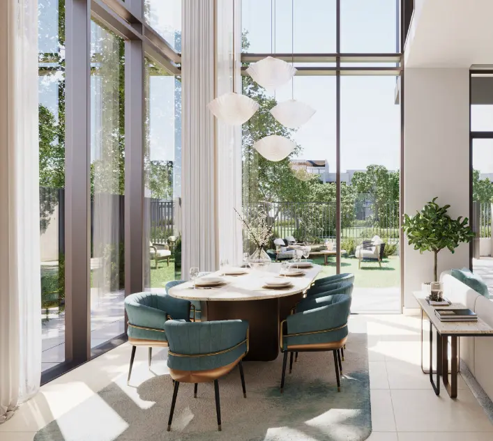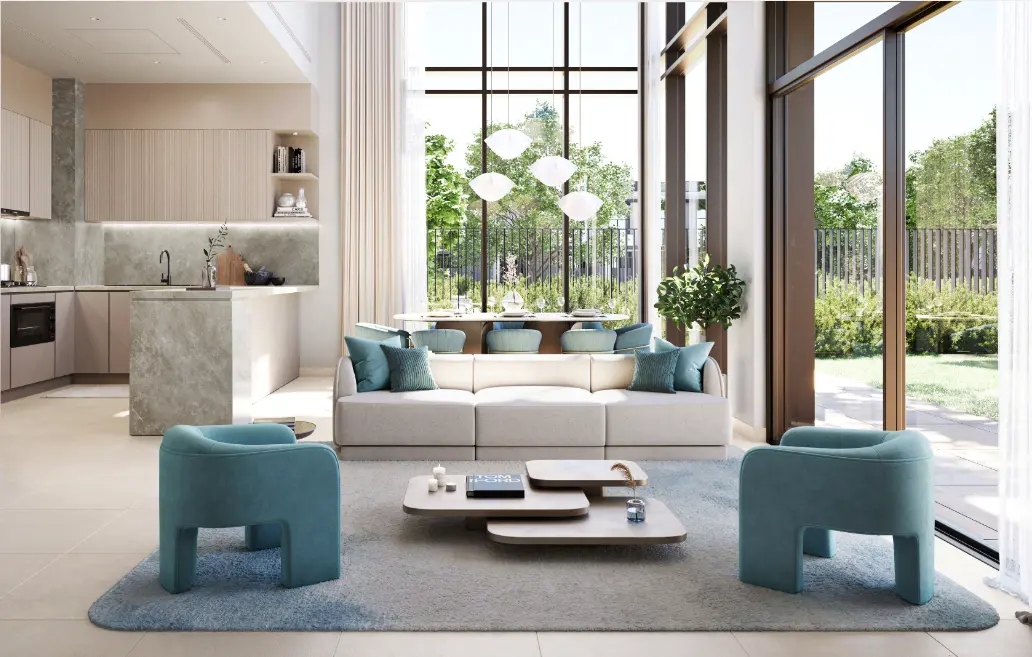 La Tilia presents modern townhouses with elegant interiors. The three-bedroom residences feature spacious, open floor plans with clean lines and modern finishes, while the 4-bedroom homes feature a double-height ceiling in the main living area, designed for a sense of serene space. Mansions with panoramic windows and stunning garden views, connected by green pathways to the beach lagoon at the center, create the perfect balance of privacy and openness to provide tranquility and inspiration.