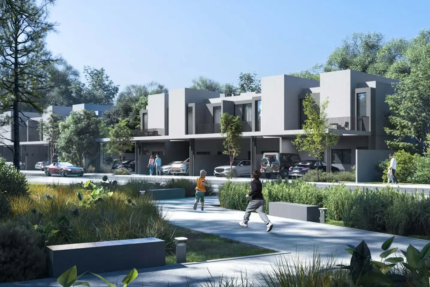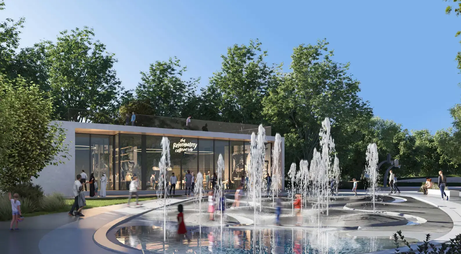 The heart of the community is a spectacular lagoon with a picturesque waterfall and swimming lake. This carefully designed oasis, hidden behind greenery, is complemented by all the necessary infrastructure, including comfortable changing rooms and cozy cafes. Residents can enjoy numerous amenities, from a state-of-the-art sports complex and wellness center to an outdoor cinema, a mosque and a network of hiking trails.