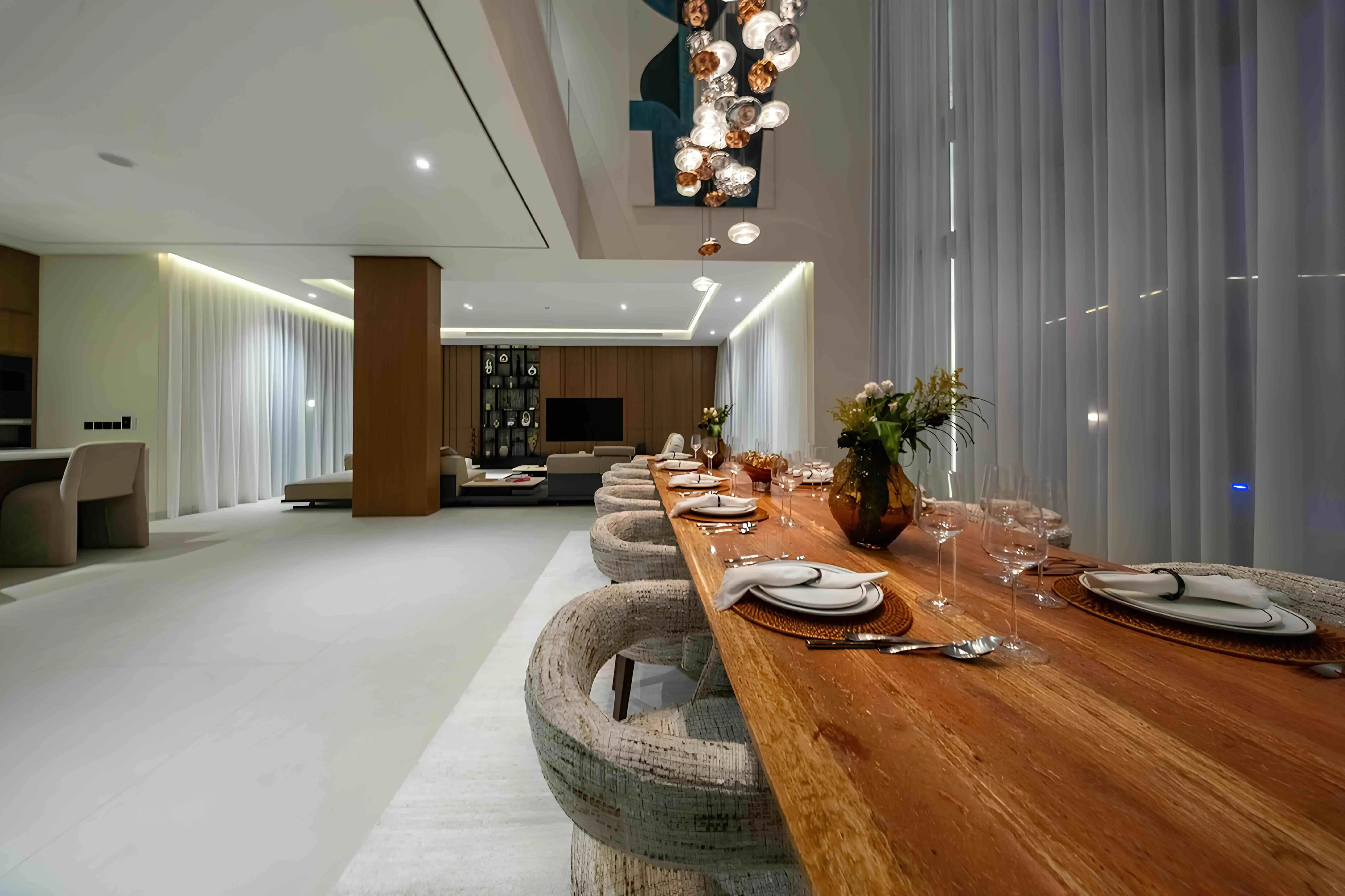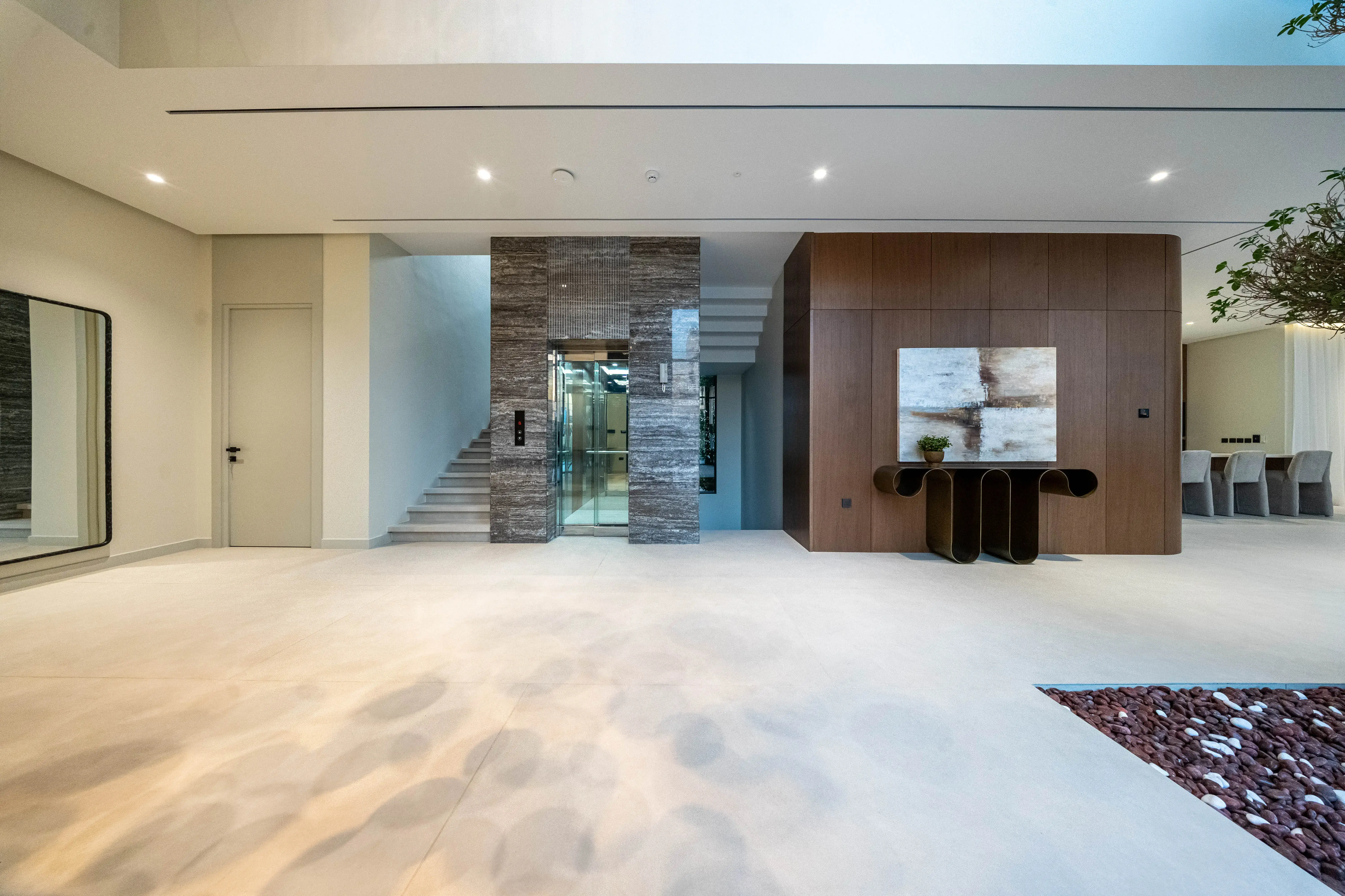 Residents have access to a range of private amenities, including a private swimming pool, a home cinema, a gaming area, a fitness space, a spa area with a sauna, as well as rooftop leisure areas.
