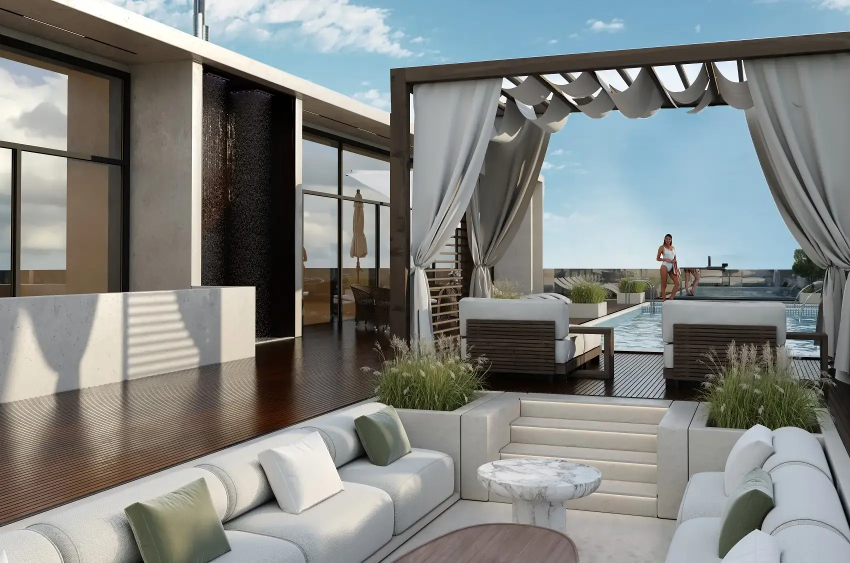 Nooré is a luxurious residential project by Eight Square Developers, located in the Meydan district of Dubai. The development is part of a thoughtfully designed ecosystem offering harmonious living amidst green landscapes. The project includes a basement level, a ground floor, five residential floors, and a rooftop. The architectural style of Nooré combines Mediterranean forms with modern elegance. The building’s exterior features soft lines, natural materials, and warm textures, creating a refined and serene atmosphere. The complex offers apartments with one, two, and three bedrooms, equipped with modern amenities such as smart home systems, fully fitted kitchens, water filtration systems, and soundproofing. The interiors are designed using timeless materials, with high ceilings, ambient lighting, and spacious layouts that combine functionality with elegance. Residents enjoy first-class amenities, including a swimming pool, padel court, gym, sauna and steam room, yoga and meditation zones, a children’s play area, and social spaces. Nooré benefits from a prime location. It is just 5 minutes to Kent College Dubai, 10 minutes to Dubai Schools Nad Al Sheba, 15 minutes to Dubai Mall and Burj Khalifa, 25 minutes to Mall of the Emirates and Burj Al Arab, 30 minutes to Dubai International Airport, and 45 minutes to Al Maktoum International Airport.