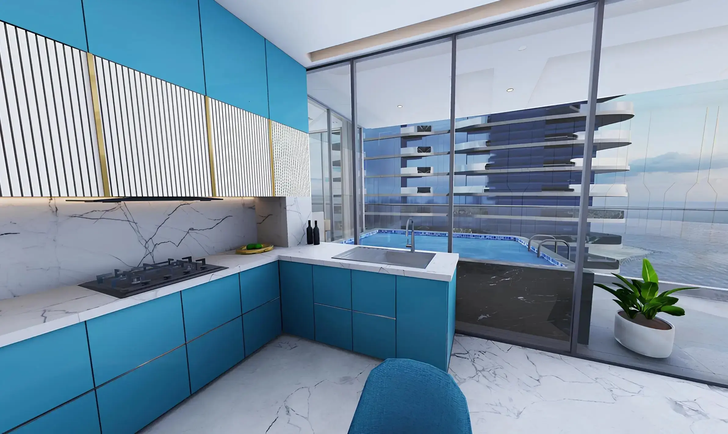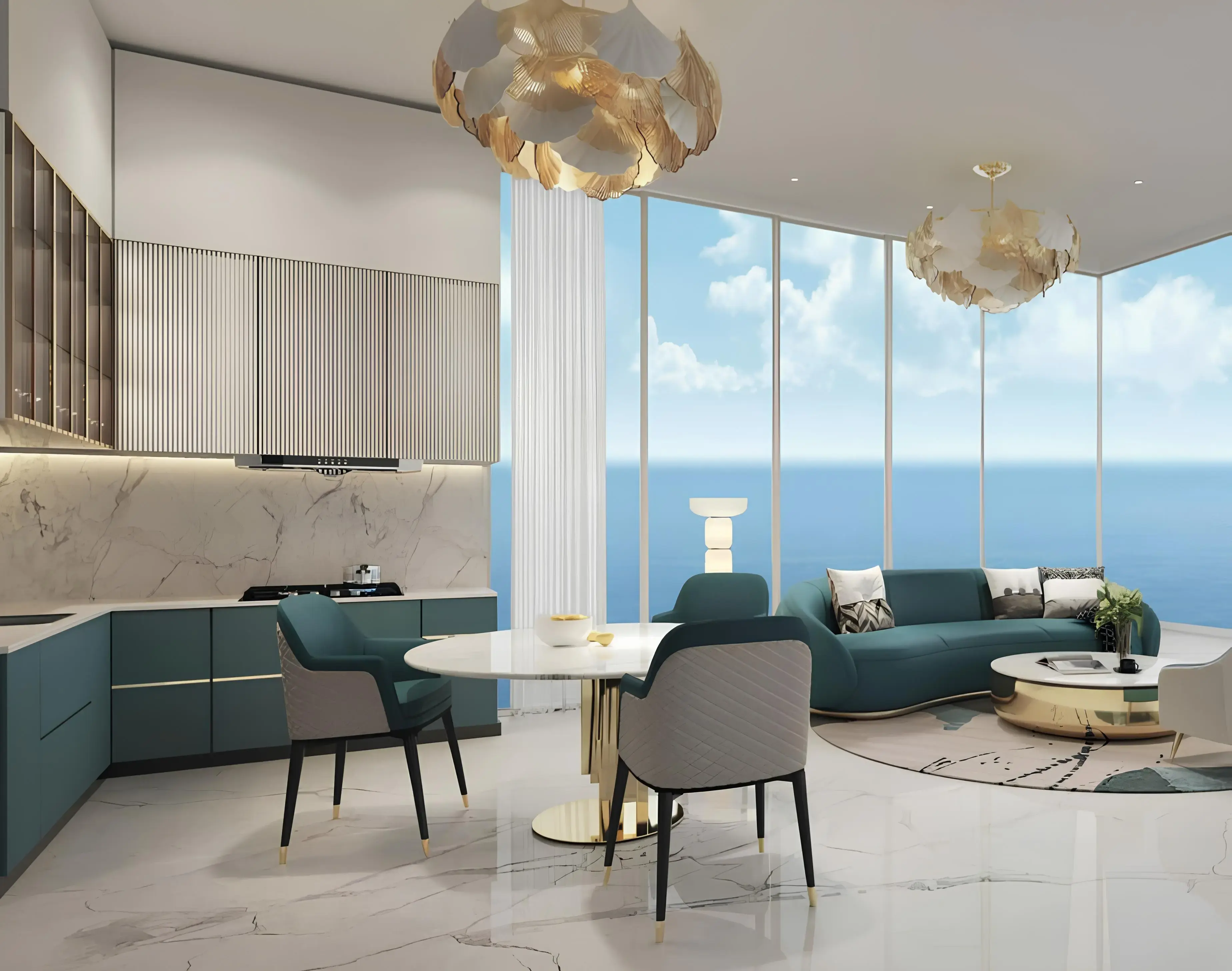 Oceanz 3 is the third tower of the premium Oceanz project from developer Danube Properties. This tower within the twin-tower complex features two basement levels, one ground floor, six podium levels, and 42 residential floors, and offers a selection of studios and 1-, 2- and 3-bedroom apartments. Most of the residences have private pools and spectacular panoramic views of the Persian Gulf. The design is perfectly combined with premium finishes, creating an aesthetic and cozy atmosphere. The Italian interiors feature exclusive materials and furniture from Tonino Lamborghini Casa.