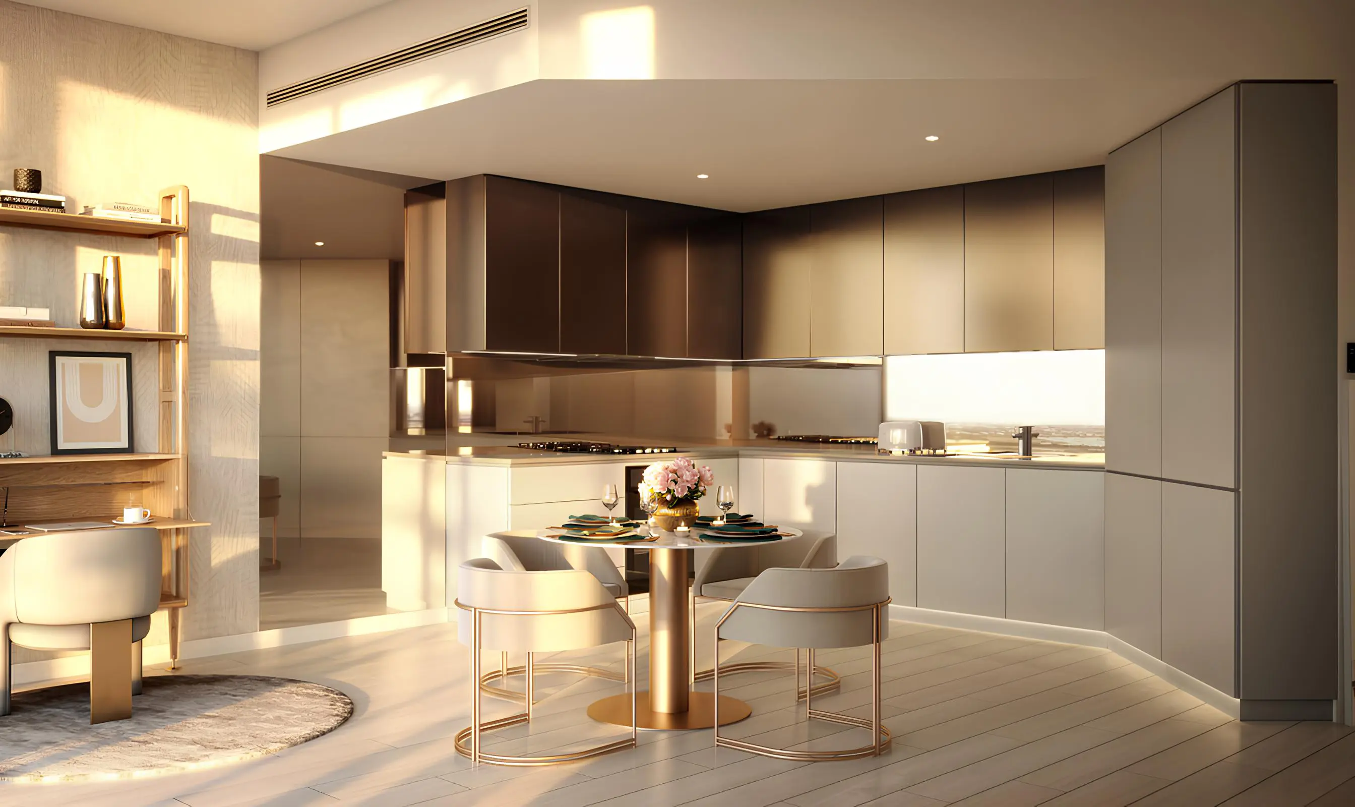The residences feature world-class finishes and signature European kitchen appliances, including a multi-functional gas oven, refrigerator, classic hood and freestanding washing machine. The interiors use a light color palette and the residence layouts are functional with attention to every detail. The apartments have access to a spacious open balcony. All residences are equipped with "smart home" systems.