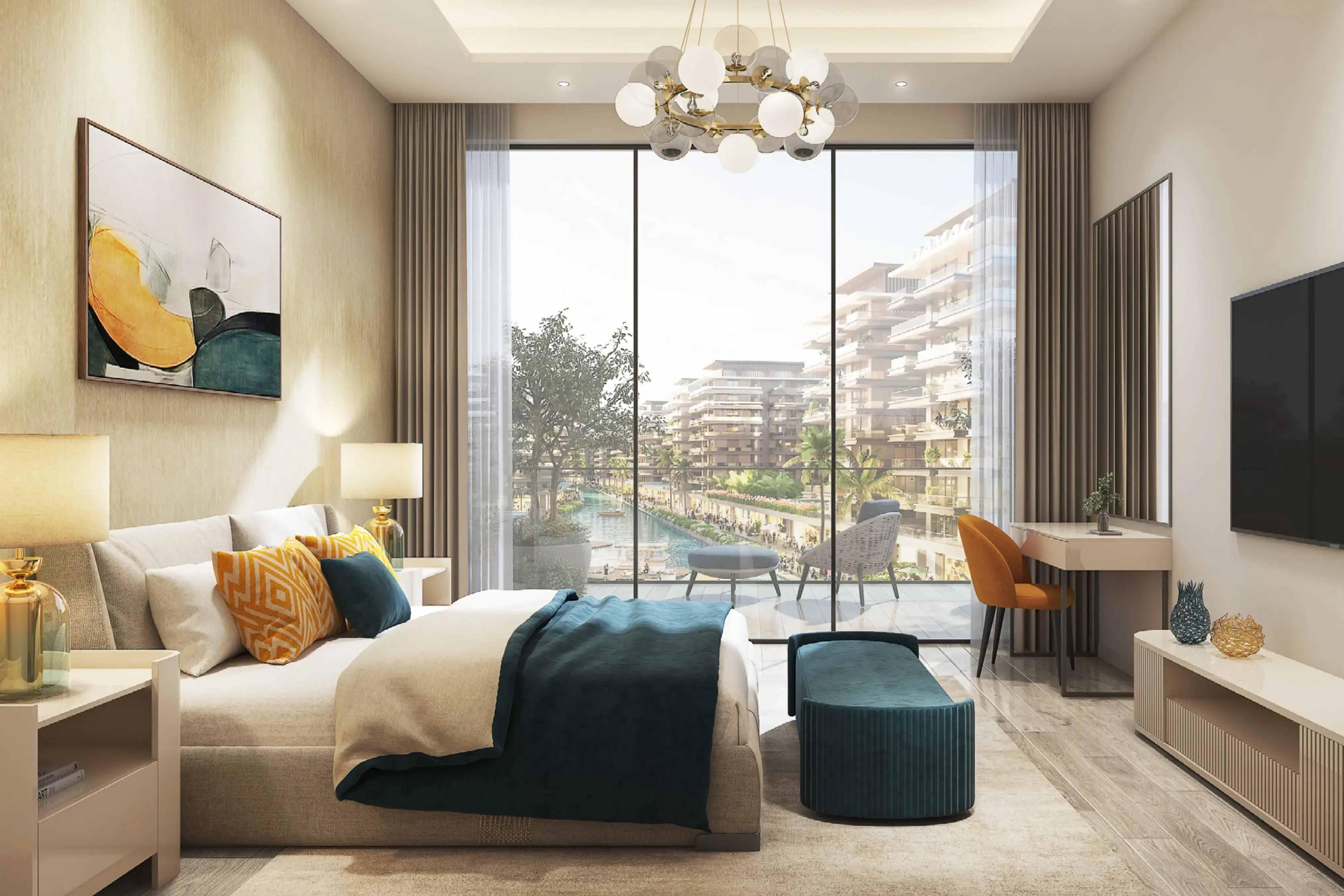 Riverside Views - Azure 2 is a prestigious residential complex by Damac and forms part of the large-scale Riverside Views project. The development consists of a single complex made up of five interconnected blocks. They share a common ground floor and a two-level podium, above which each block rises eight residential floors. The collection features modern studios and 1-bedroom apartments. The architecture of the complex is defined by elegant lines, large panoramic windows, and the use of modern materials, giving the building a striking and contemporary appearance. Interiors are designed in a minimalist style with a focus on comfort and practicality. Light tones, high-quality finishes, and well-thought-out layouts create an atmosphere of harmony and convenience. Residents enjoy a wide selection of amenities including a floating opera, wedding deck, restaurants, barbecue and relaxation areas, an amphitheater, picnic lawn, and a children’s playground. The unique location makes Riverside Views - Azure 2 especially attractive. Al Maktoum International Airport can be reached in 12 minutes, while Dubai Outlet Mall is only 19 minutes away.