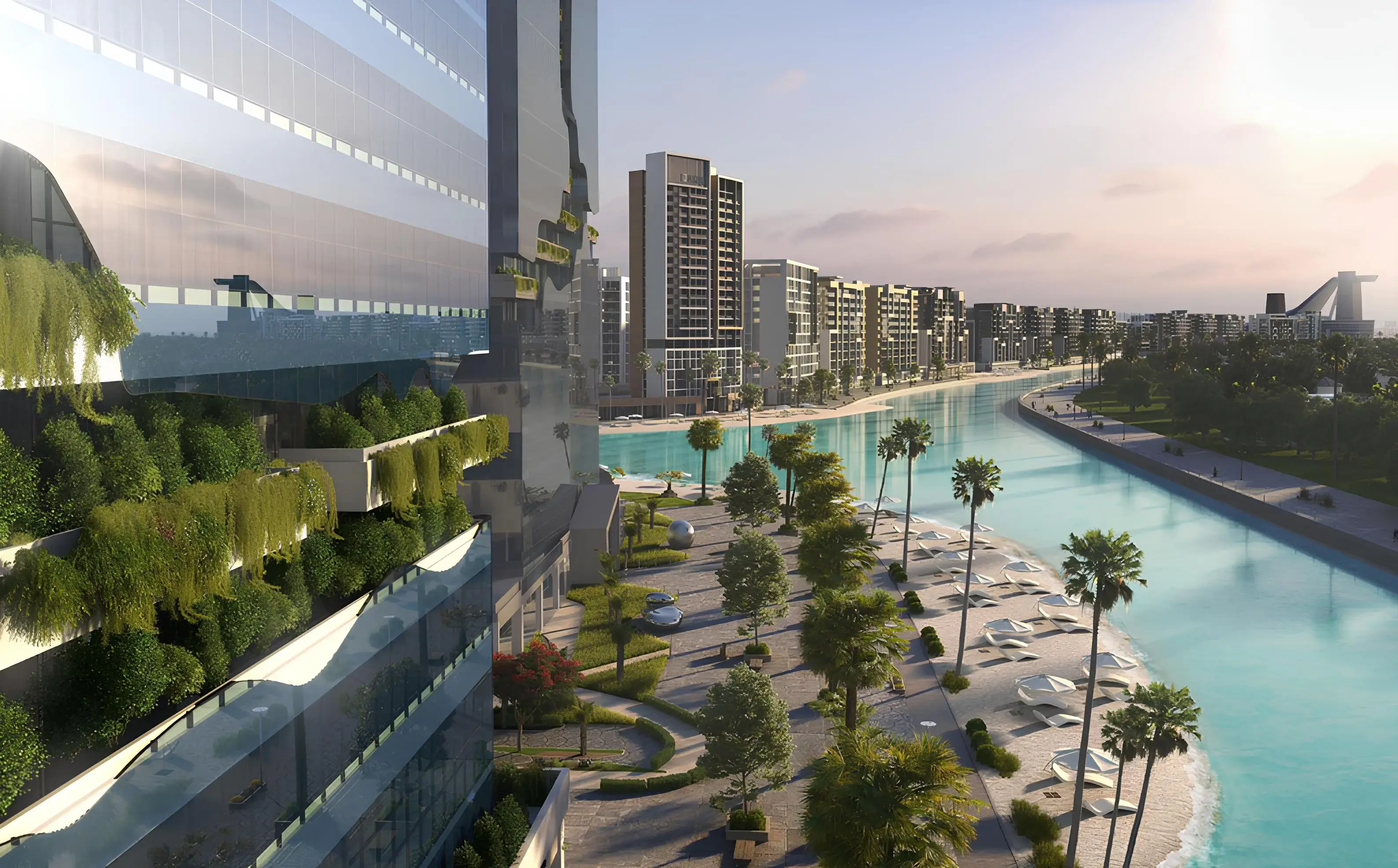 Riviera Azure is a residential development by Azizi Developments and part of the large-scale Azizi Riviera project, located in the Meydan area of MBR City. The complex is designed in a modern architectural style with floor-to-ceiling glazing and vertical landscaping, inspired by the dynamic movement of the lagoon’s waters. The building consists of a ground floor, eight residential floors, and a roof. The project offers studios, one- and two-bedroom apartments, as well as exclusive penthouses with spacious terraces. All residences feature thoughtfully designed layouts, contemporary interiors, and large windows with views of the lagoon, Dubai’s skyline, and surrounding greenery. Residents enjoy a wide range of amenities: an infinity pool with cabanas and relaxation areas, a fitness center with panoramic views, a spa zone, children’s playrooms, a cinema, lounge areas, barbecue spaces, landscaped gardens, as well as premium services including laundry and a car wash. The development boasts excellent connectivity: The Meydan Hotel — 2 minutes, Meydan One Mall and Meydan One Tower — 3 minutes, SZR, Al Khail Road, MBZ Road — 10 minutes, Downtown Dubai — 10 minutes, DIFC and Business Bay — 10 minutes, Dubai Festival City and IKEA — 10 minutes, Jumeirah Beach — 12 minutes, Dubai International Airport (DXB) — 15 minutes, Global Village — 15 minutes, Palm Jumeirah — 22 minutes. Building Configuration: G+8+R