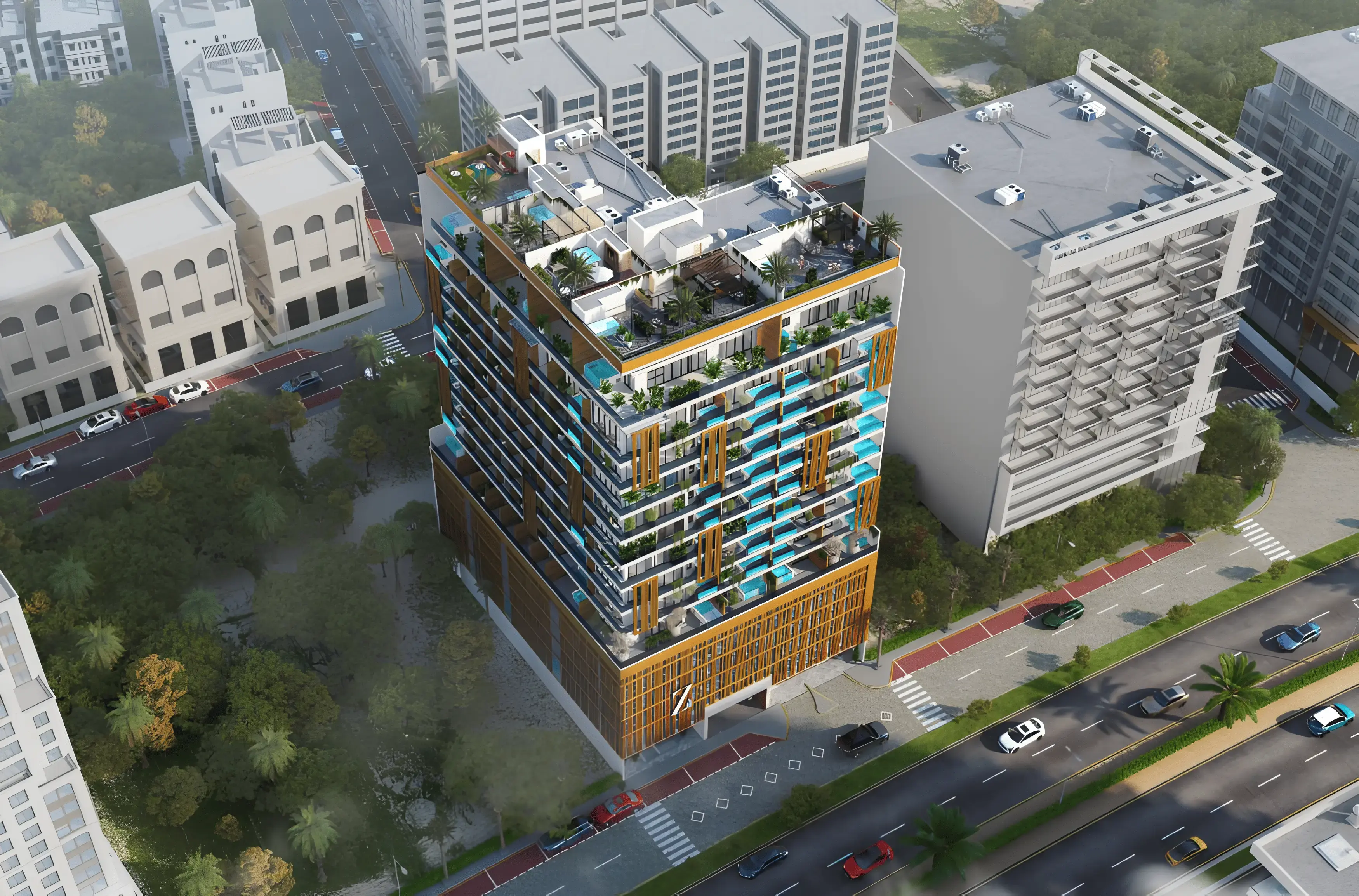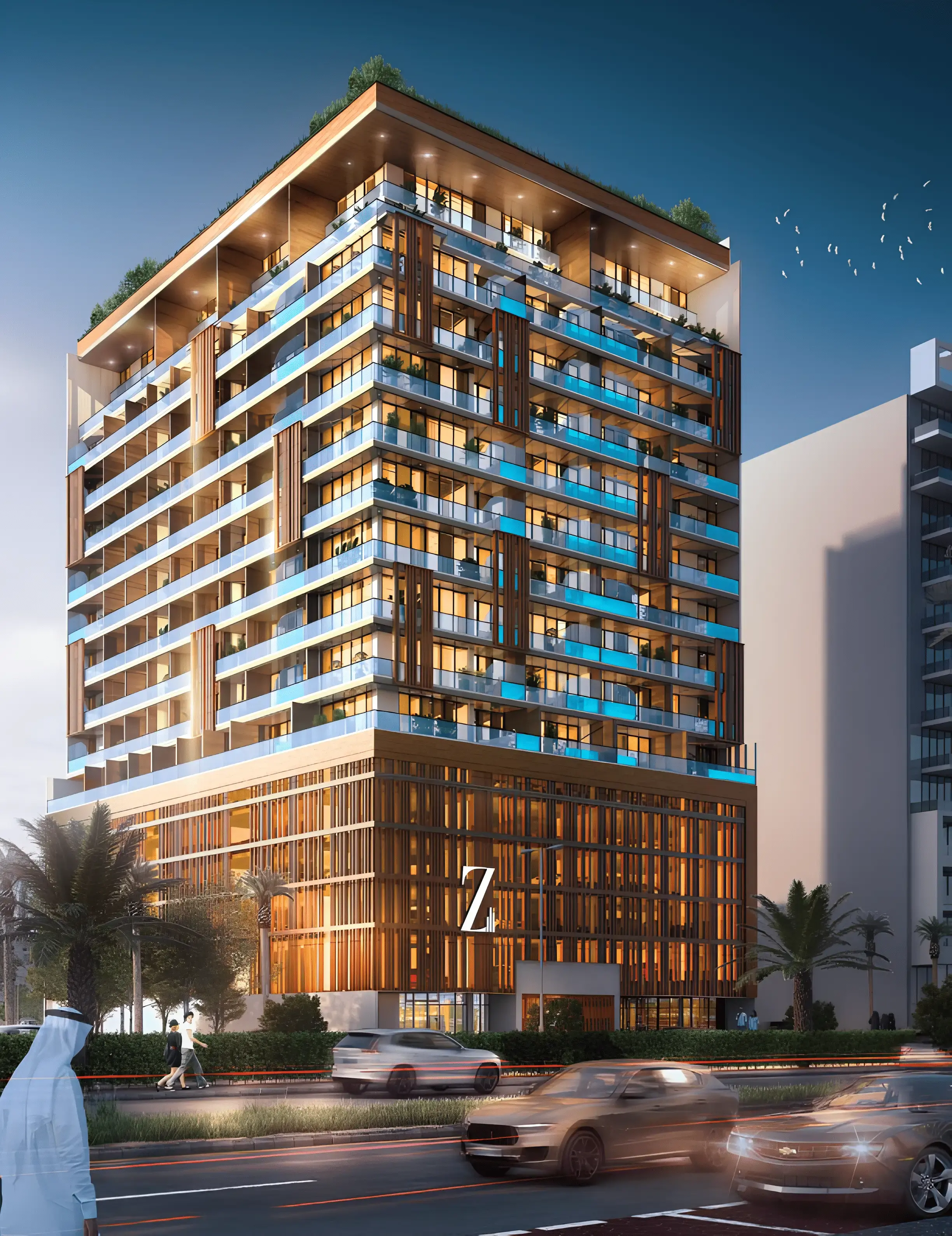 Rose Gold Residences is an exclusive residential apartment complex by developer Zee Development, presented by Asora Luxury Real Estate. The building consists of a ground floor, podium floor, eleven residential floors, and a rooftop. Rose Gold Residences features a bold and elegant façade with rose gold–toned accents, a light ash-colored base, and expansive glass surfaces that give the building a modern and prestigious appearance. The full-glass façade ensures natural light fills the interiors and reflects the cityscape, creating a warm and sophisticated atmosphere. Spacious terraces offer impressive panoramic city views. The complex offers studios, one-bedroom apartments, two-bedroom apartments and sky villas. The interiors at Rose Gold Residences are designed with elegance and comfort: large windows bring in abundant natural light, while thoughtful finishes and high-quality materials create a modern and cozy luxury atmosphere. The complex provides modern amenities for a comfortable lifestyle: spa and sauna, swimming pool, smart parking, intelligent surveillance system, kids’ play area, retail outlets, and a fully equipped gym. Rose Gold Residences is conveniently located in Jumeirah Village Circle (JVC), with quick access to key destinations: Circle Mall — 2 minutes, Al Khail Metro — 10 minutes, Dubai Marina — 15 minutes, Mall of the Emirates — 15 minutes, Downtown Dubai — 25 minutes.