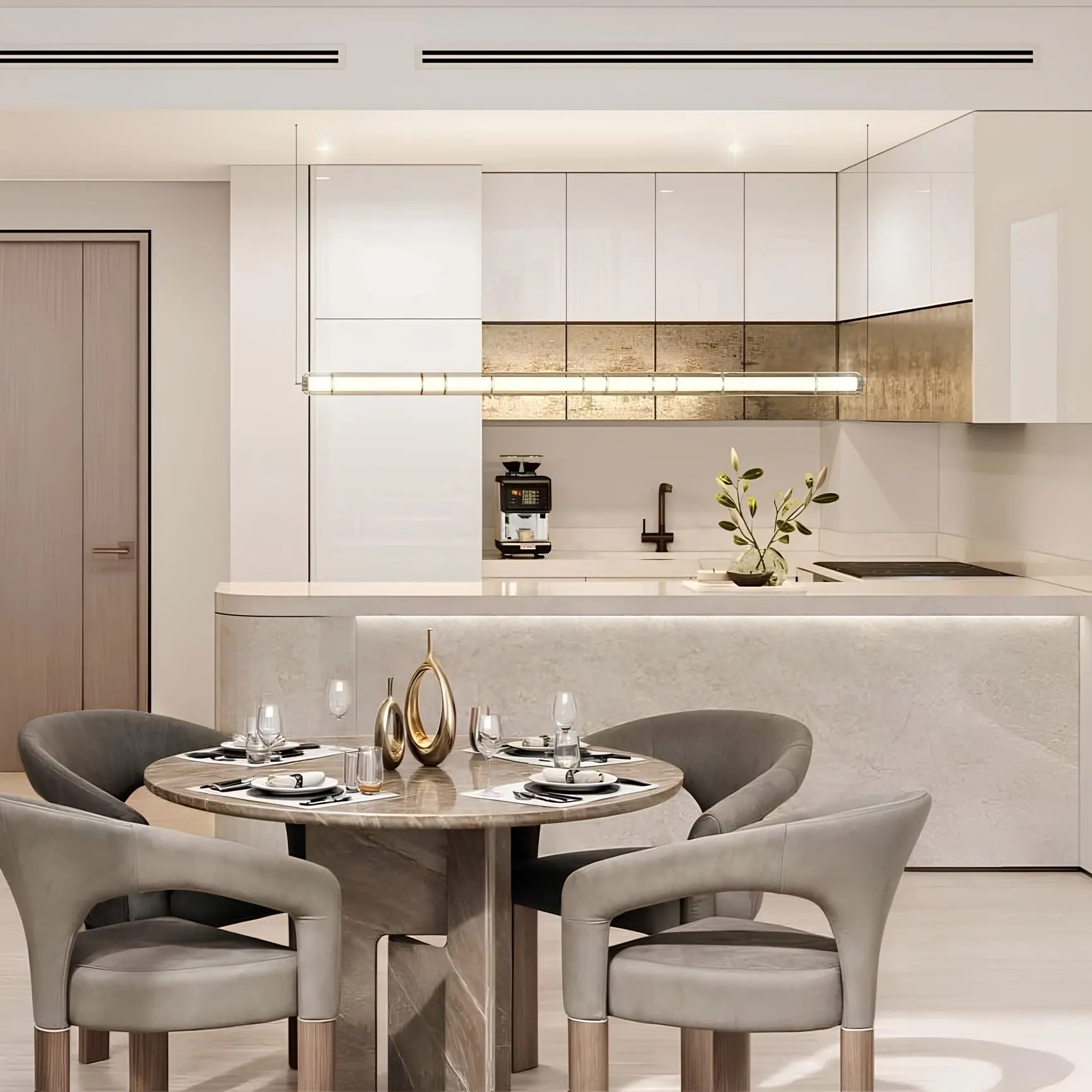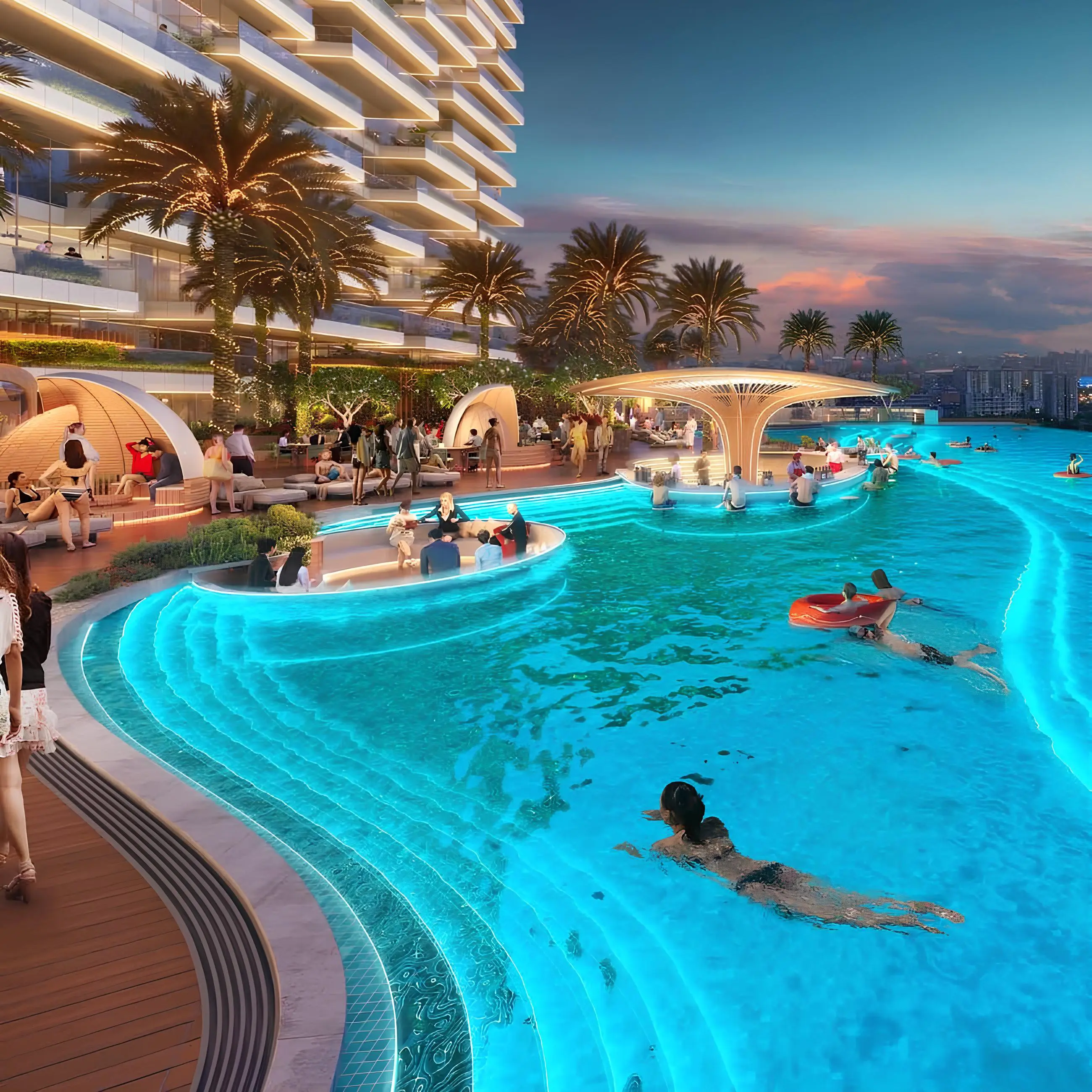 Safa Gate is a residential complex by developer Damac Properties, located in the prestigious Safa Park district. The building structure includes a ground level with a luxurious lobby, five podium levels dedicated to parking and amenities, and 50 residential floors featuring stylish one- and two-bedroom apartments, as well as ultra-luxurious three- and five-bedroom residences. The architecture combines elegance and innovative design, standing out with its smooth lines, glass facades, and refined details. The upper floors offer breathtaking views of the Burj Khalifa, the Persian Gulf, and the greenery of Safa Park. The interiors are meticulously designed, featuring high ceilings, natural marble, premium wood, and panoramic windows that create an atmosphere of luxury and comfort. Residents will have access to an infinity pool, a fitness center, a spa area, a private cinema, lounge areas, and landscaped gardens. The complex also boasts fine-dining restaurants, while a 24/7 concierge service and a smart home system ensure the utmost convenience. Safa Gate enjoys a prime location, just minutes away from Dubai’s main attractions. City Walk is only a 5-minute drive, The Dubai Mall is 10 minutes away, Jumeirah Beach can be reached in 9 minutes, and Dubai International Airport is just a 20-minute drive.