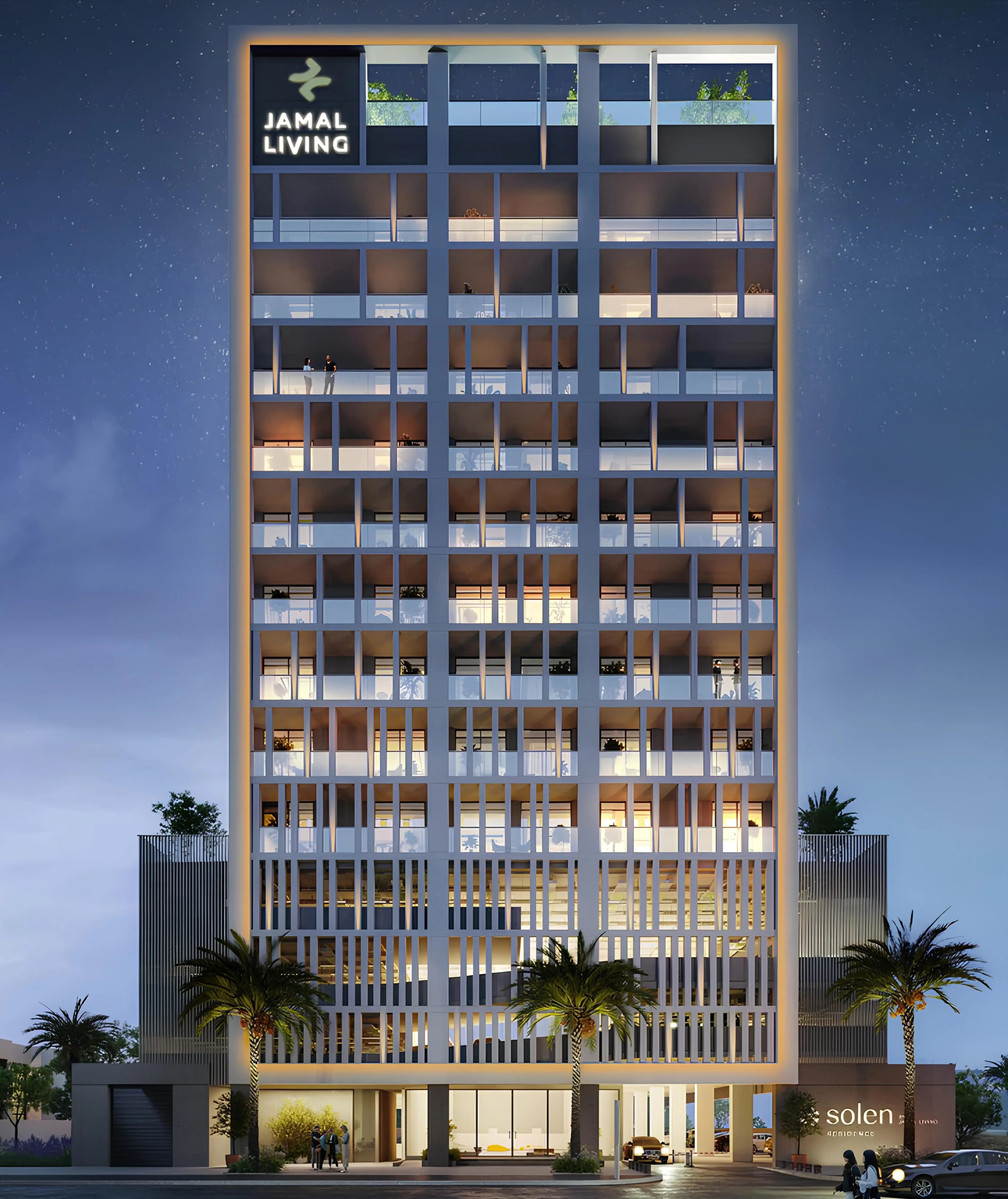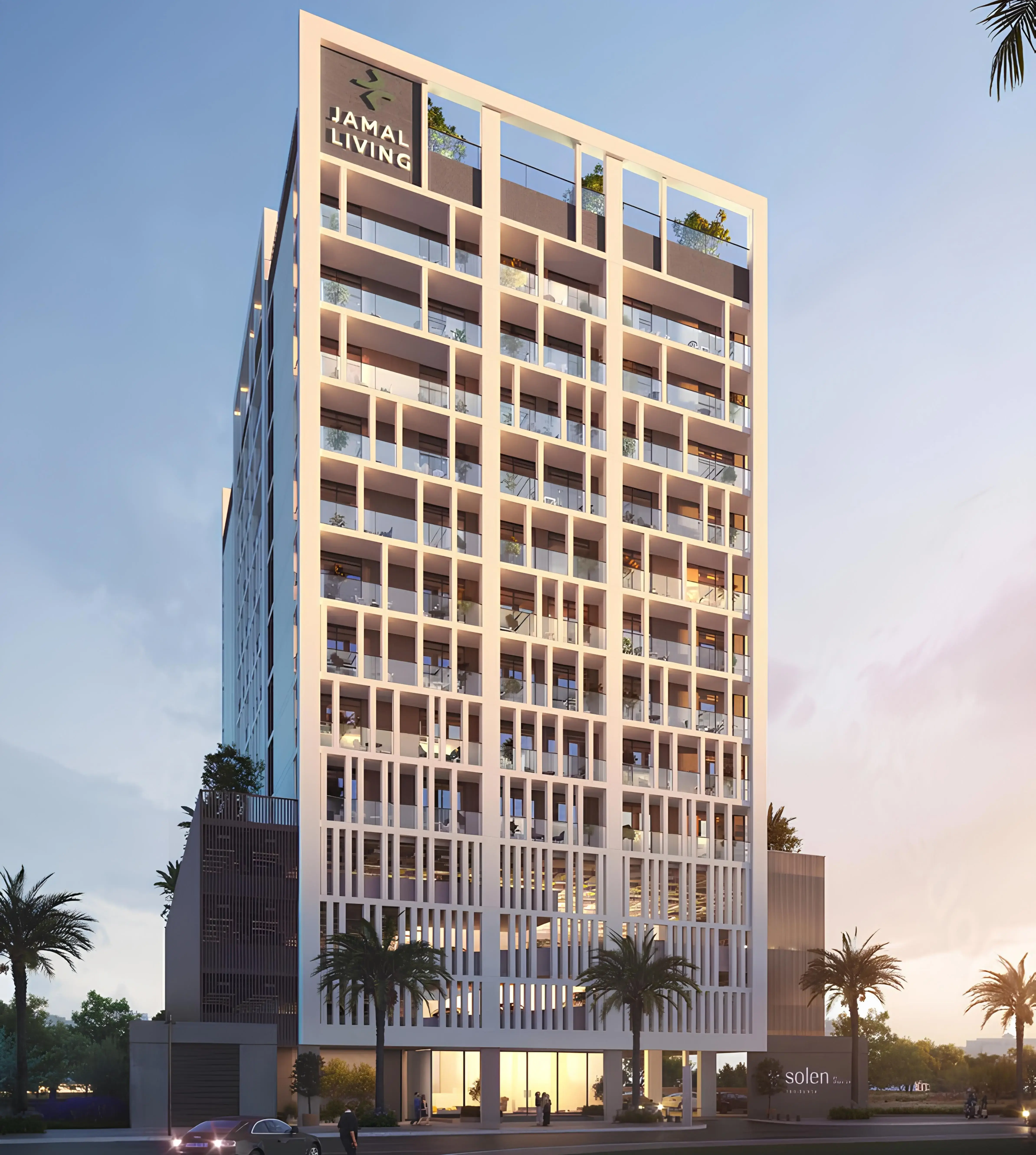 Solen Residence is a residential project by Jamal Living, presented by Betterhomes and located in Dubai Silicon Oasis. The building comprises a ground floor, two podium levels and nine residential floors, forming a contemporary architectural silhouette with a rhythmic façade. The development offers one-, two- and three-bedroom apartments. Interiors are designed in a calm palette of light stone, white tones and soft accents, featuring porcelain elements throughout the living spaces. Kitchens and bathrooms are equipped with modern built-in appliances. Each residence includes a smart-home system, private balconies and thoughtfully planned layouts. Residents have access to a range of amenities, including a rooftop panoramic pool, a fitness centre, a private cinema, a clubhouse and a gaming area, as well as co-working spaces and meeting rooms. The project also features barbecue zones, 24/7 security and two levels of covered parking. Solen Residence is located in a dynamic area with convenient connectivity: Dubai Silicon Oasis is 5 minutes away, International City is 10 minutes away, Dubai Creek Harbour is 15 minutes away, Downtown Dubai and Business Bay are 15 minutes away, World Trade Center and the Museum of the Future are 20 minutes away, and DXB Airport is 25 minutes from the development. The Palm Jumeirah, Mall of the Emirates and Dubai Hills Mall are also within easy reach.