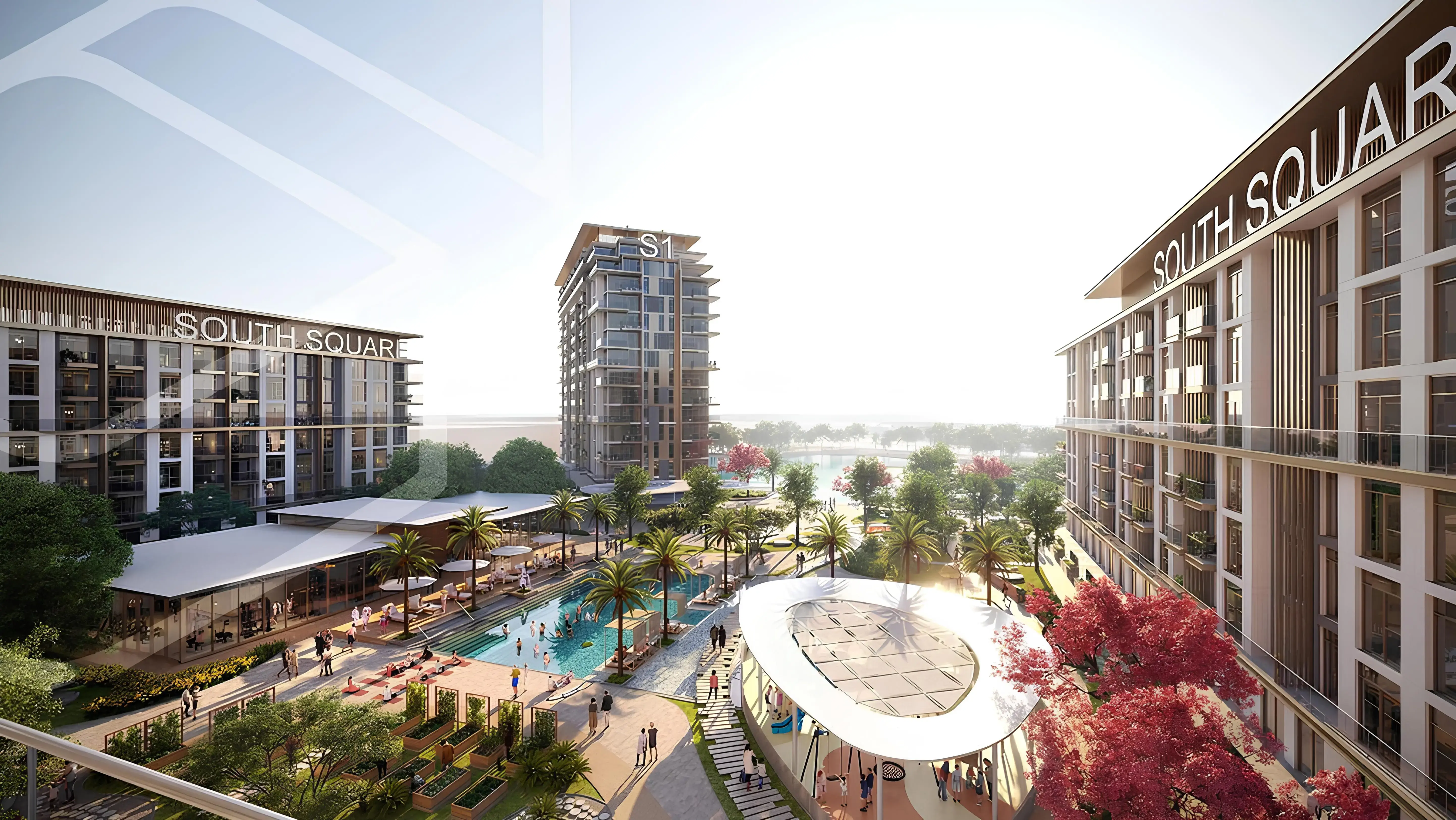 South Square Tower S1 is the first tower of the South Square residential community from the developer Dubai South, located in the heart of Dubai South. The building consists of a ground floor, fourteen residential floors and a mechanical floor. The complex offers apartments with a range of bedrooms from one to three. Carefully thought-out layouts imply an abundance of natural light. The interior design features high-quality natural materials. The infrastructure of South Square Tower S1 is focused on a healthy lifestyle and includes picturesque ponds with water, open spaces and hiking trails, fitness and recreation areas for all ages. Retail shops, restaurants and catering outlets, as well as coworking spaces are provided for the daily comfort of residents. The complex is conveniently located in the immediate adjacent to Al Maktoum International Airport. Other key points in Dubai can be reached within a short time: 7 minutes to Expo City, 20 minutes to Dubai Marina, 25 minutes to Palm Jumeirah and 35 minutes to Downtown Dubai.