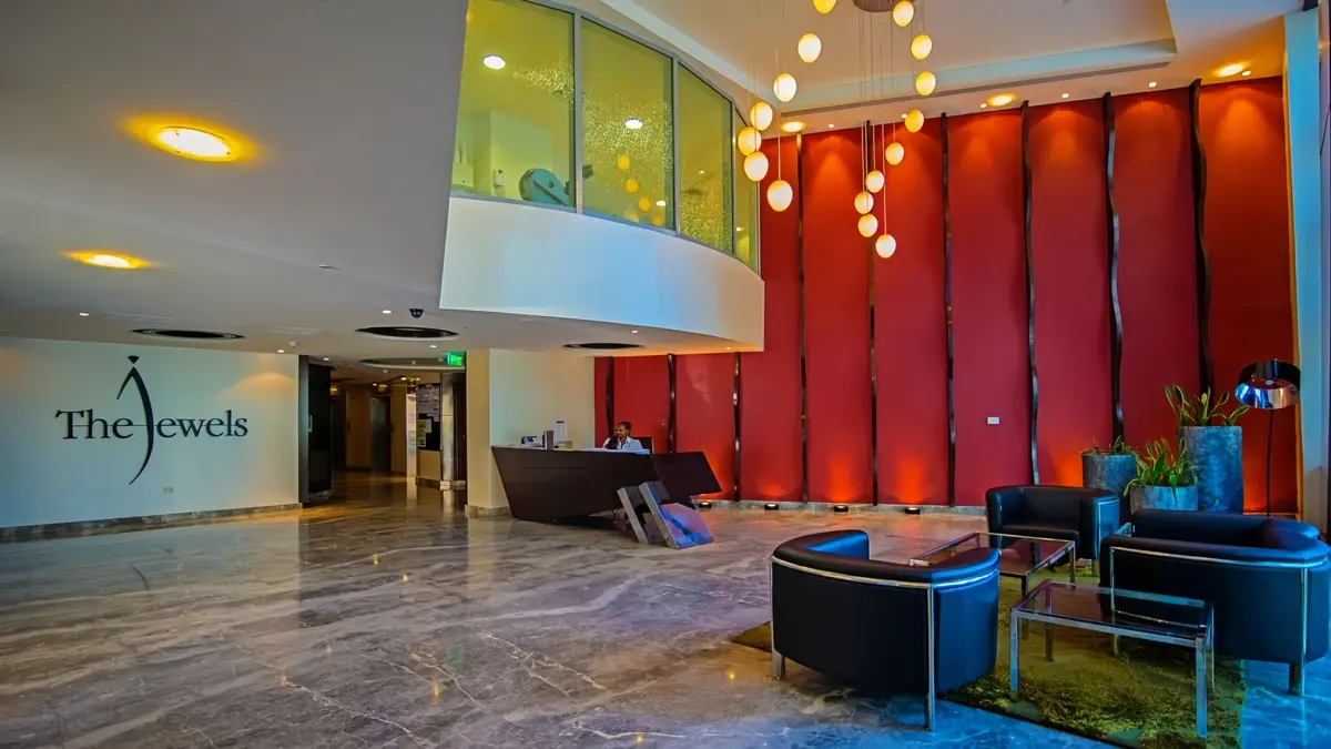 The Jewels is an impressively designed residential development comprising twin towers by Cayan Group, located in the heart of Dubai. The project offers 1-4 bedroom apartments, duplexes, penthouses and a presidential penthouse, villas, lofts and retail spaces. All residences are fully furnished, complete with appliances. There are rooms for staff. The penthouses and villas have their own swimming pools. The residences offer stunning views of the surrounding neighbourhoods.