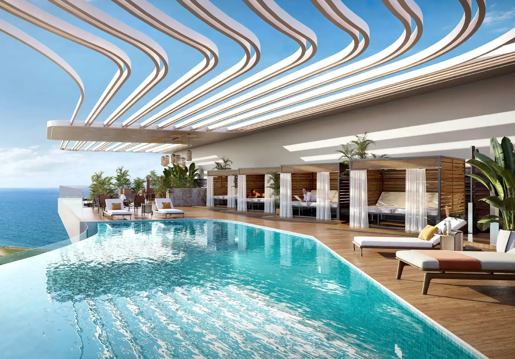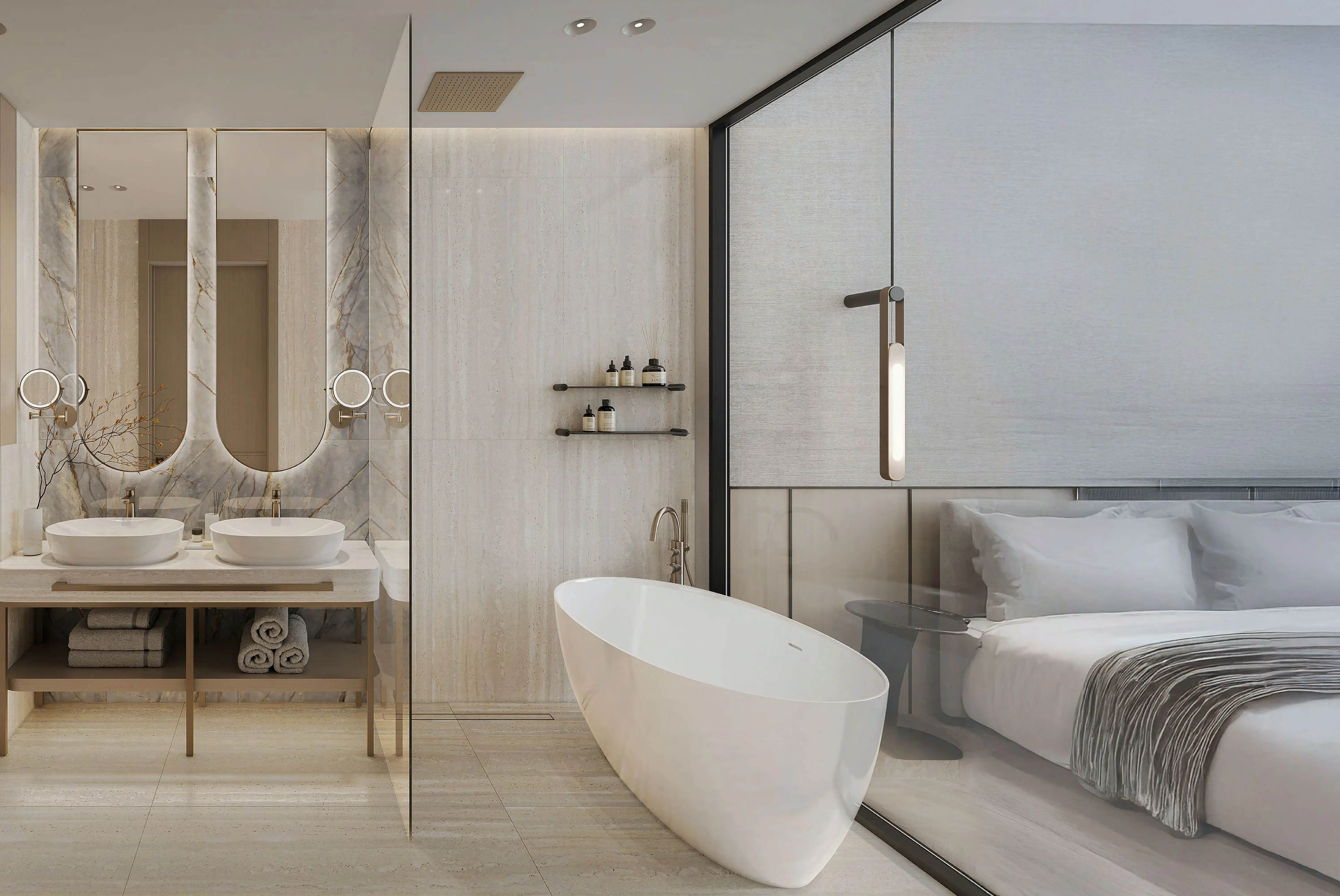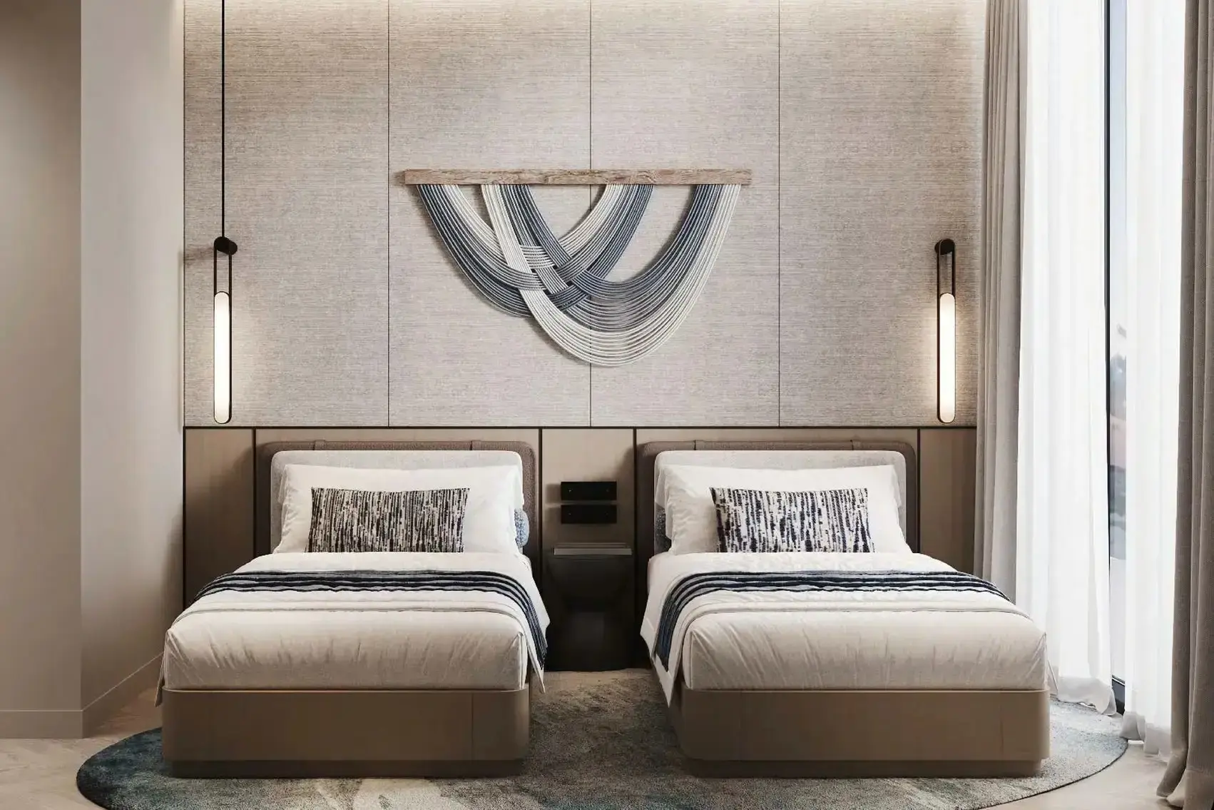 The Residences at Sheraton Al Marjan Island Resort is a residential development by Atara Development, located on Al Marjan Island in Ras Al Khaimah. The building comprises two basement levels, a ground floor, a mezzanine level, eighteen residential floors and a rooftop. The architectural concept combines contemporary design with Sheraton’s recognizable heritage, creating a resort-style atmosphere with a focus on prestige, privacy and coastal living. The project offers a refined selection of studios, one-bedroom and two-bedroom apartments. Each home features well-considered layouts designed to maximize sea and island views. The residences ensure a seamless connection with the coastal surroundings through abundant natural light, carefully curated furnishings, and a harmonious color palette. The residents have access to a variety of amenities: a private beach, an infinity pool on the roof, a sky bar and lounge, kids' play areas, sports zones, spa facilities, and dedicated concierge services. The complex enjoys a prime location with convenient access to key destinations: Wynn Resort & Casino – 3 minutes, RAK Central – 8 minutes, Al Hamra Mall & Marina – 15 minutes, RAK International Airport – 30 minutes, Dubai International Airport — 50 minutes.
