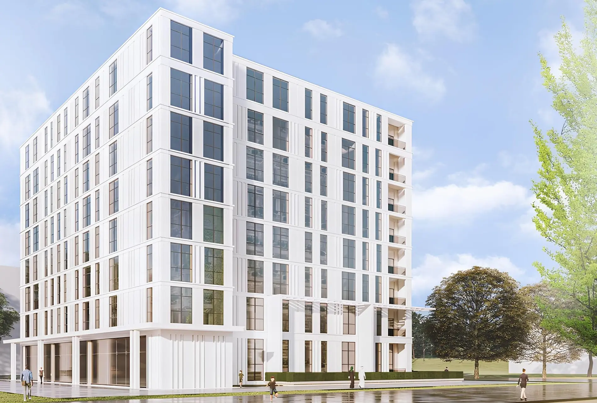 The complex includes 33 buildings, consisting of ground floors and 7-9 residential floors. The exterior of the buildings of the project is characterized by a modern and elegant design. The buildings are organically integrated into the landscape, complemented by beautiful greenery and water elements, creating a calm and refreshing atmosphere. The project includes studios and apartments with 1-3 bedrooms, as well as commercial premises. All residences are decorated in a modern style.