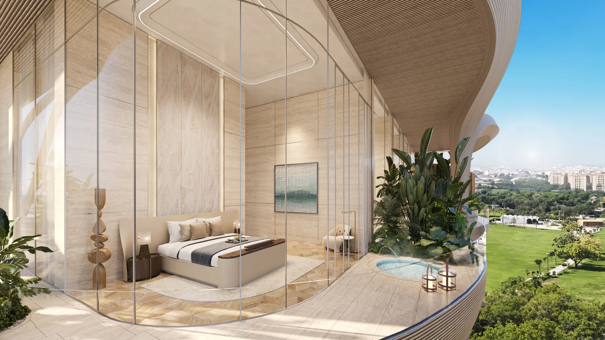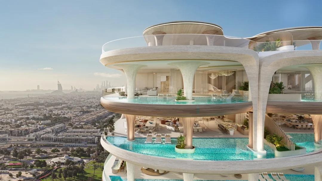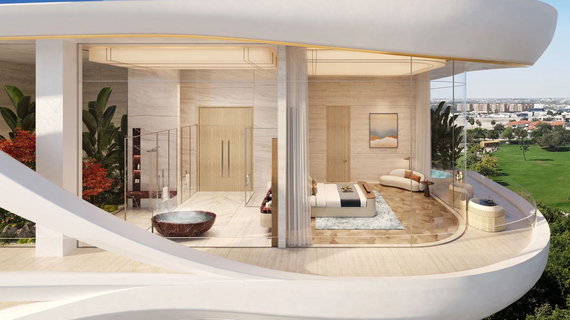 The building includes a ground floor and 16 residential levels and offers luxury three-bedroom penthouses, 4-5-bedroom Sky Villas, six-bedroom Sky Mansions, as well as exclusive six-bedroom Sky Palaces. All apartments have wide layouts, terraces and private elevators. Panoramic windows provide natural light in each unit of the dwelling, and sliding doors provide an open connection to the main living rooms and smooth movement between internal and external spaces. The interiors of Casa AHS are imbued with elegance and modern style. High-quality materials and innovative design solutions create an atmosphere of luxury and sophistication. Every detail here is thought out to the smallest detail to ensure an impeccable level of comfort and style.
