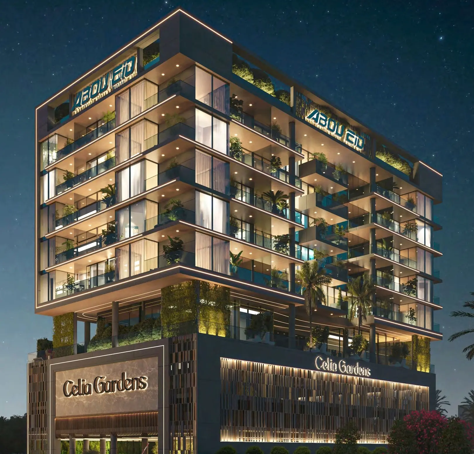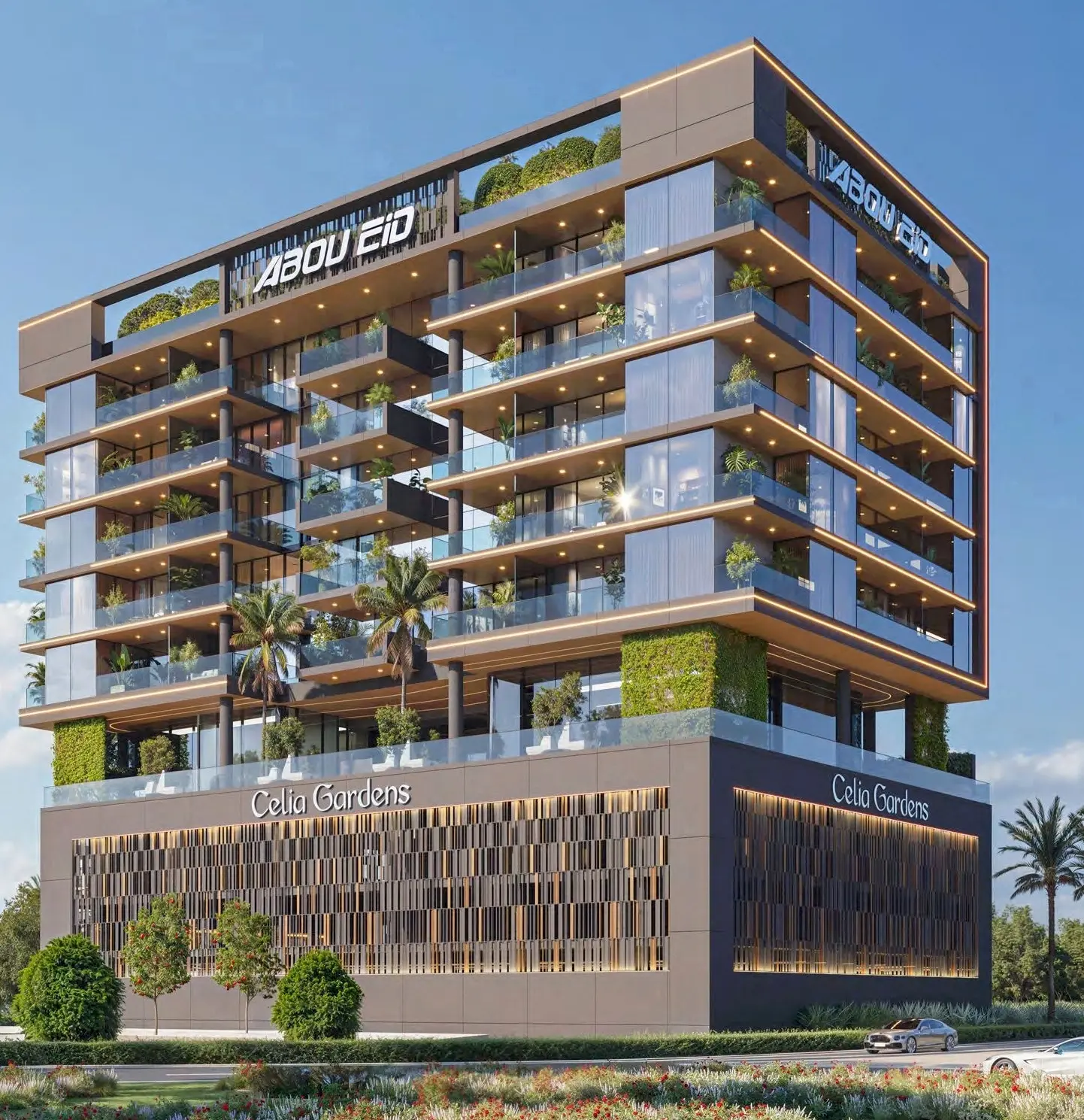 Celia Gardens is a residential complex from the developer Abou Eid in the Meydan district, Dubai. The building includes a ground floor, two podium levels, a floor with amenities, 5 residential floors and a roof with recreation areas. Apartments with 1-2 bedrooms are available on each residential floor. The residential complex combines architectural splendor and the serene beauty of the surrounding nature, offering the perfect combination of modern elegance and exclusivity. The facade design, made in accordance with high aesthetic requirements, allows you to create a sense of peace and elegance in the heart of bustling and dynamic Dubai. Facilities for residents of the complex include a communal swimming pool, indoor and outdoor gym, outdoor cinema, paddle court, children's pool, barbecue area, outdoor and indoor playground, work areas, steam room and sauna, yoga room, entertainment lounge and cafe. The complex also has 2 podium floors designed for parking. Celia Gardens is just a short drive from downtown Dubai, making it an ideal location for those who want to easily reach the city's main attractions. Downtown Dubai can be reached in 13 minutes, the famous Burj Khalifa is a 15-minute drive away, DIFK can be reached in 18 minutes, and Jumeirah Beach and Dubai International Airport can be reached in 20 minutes.