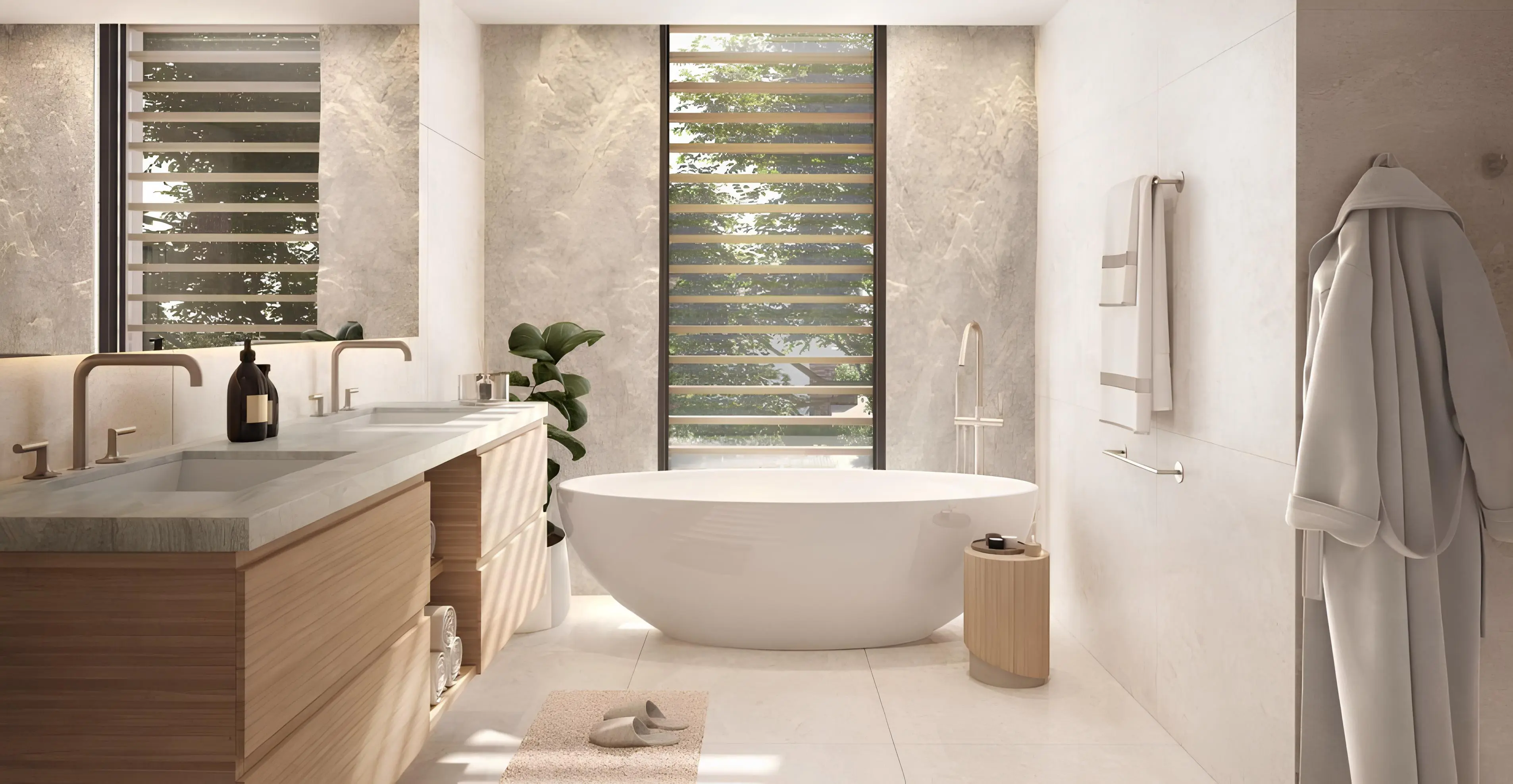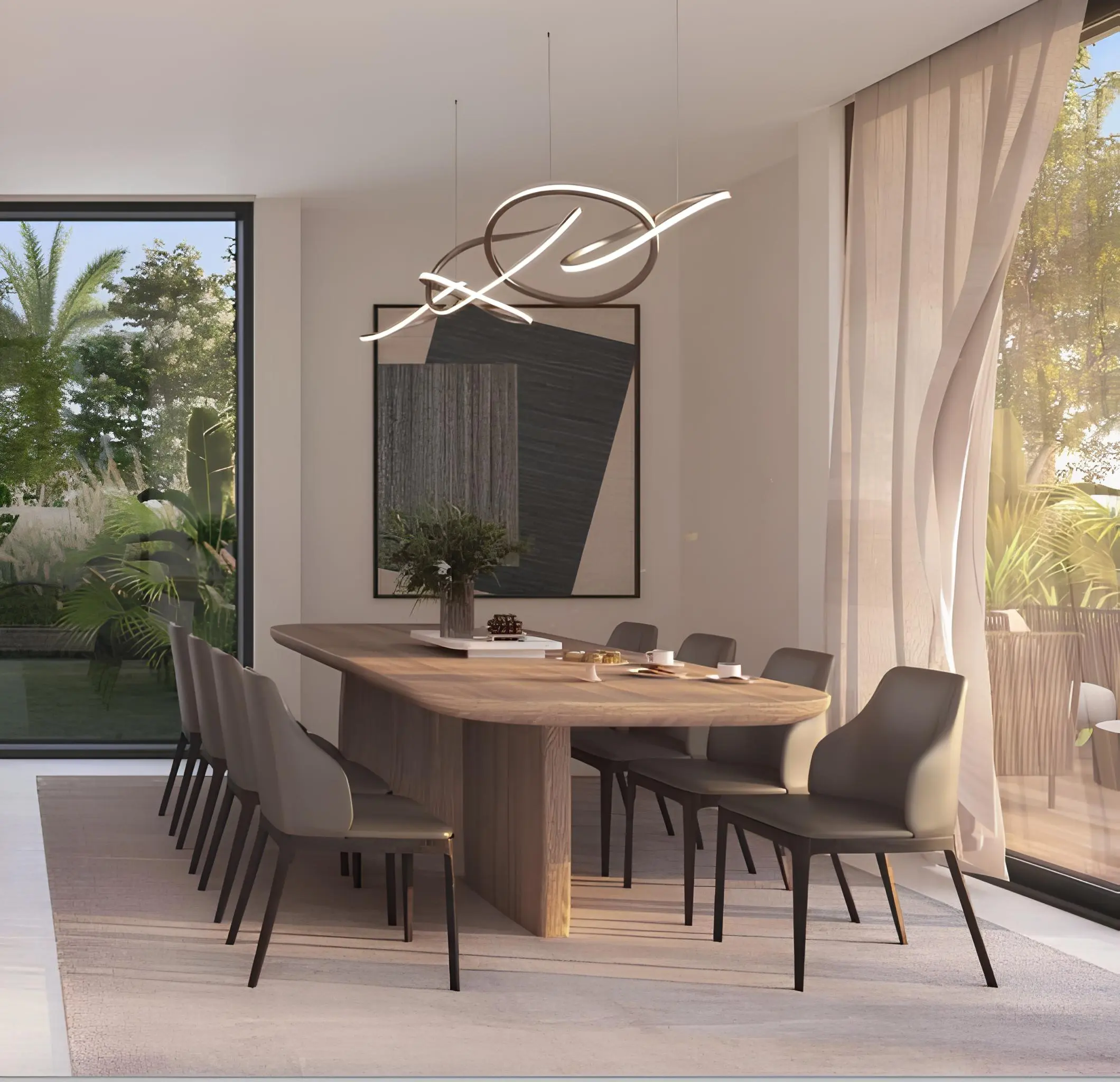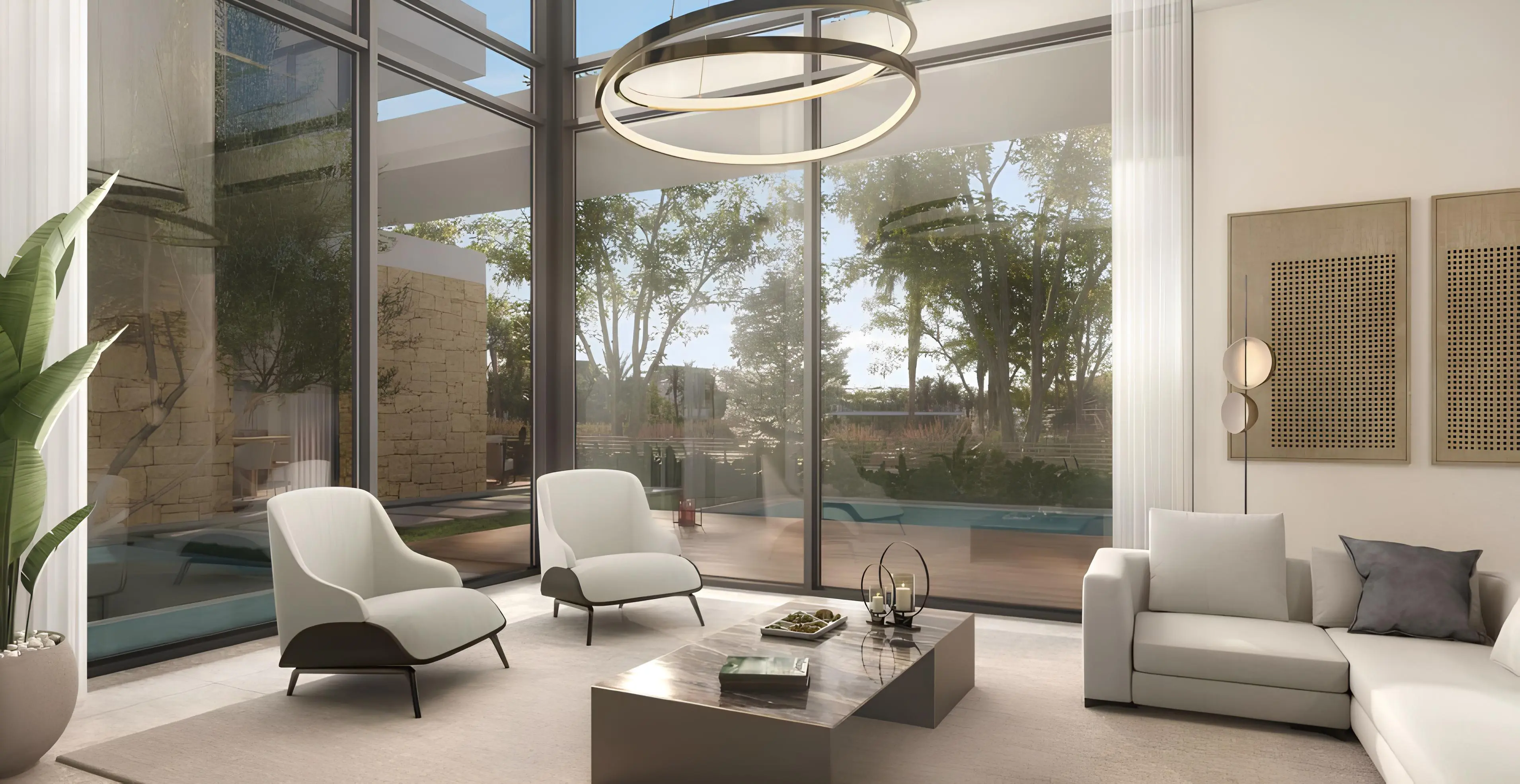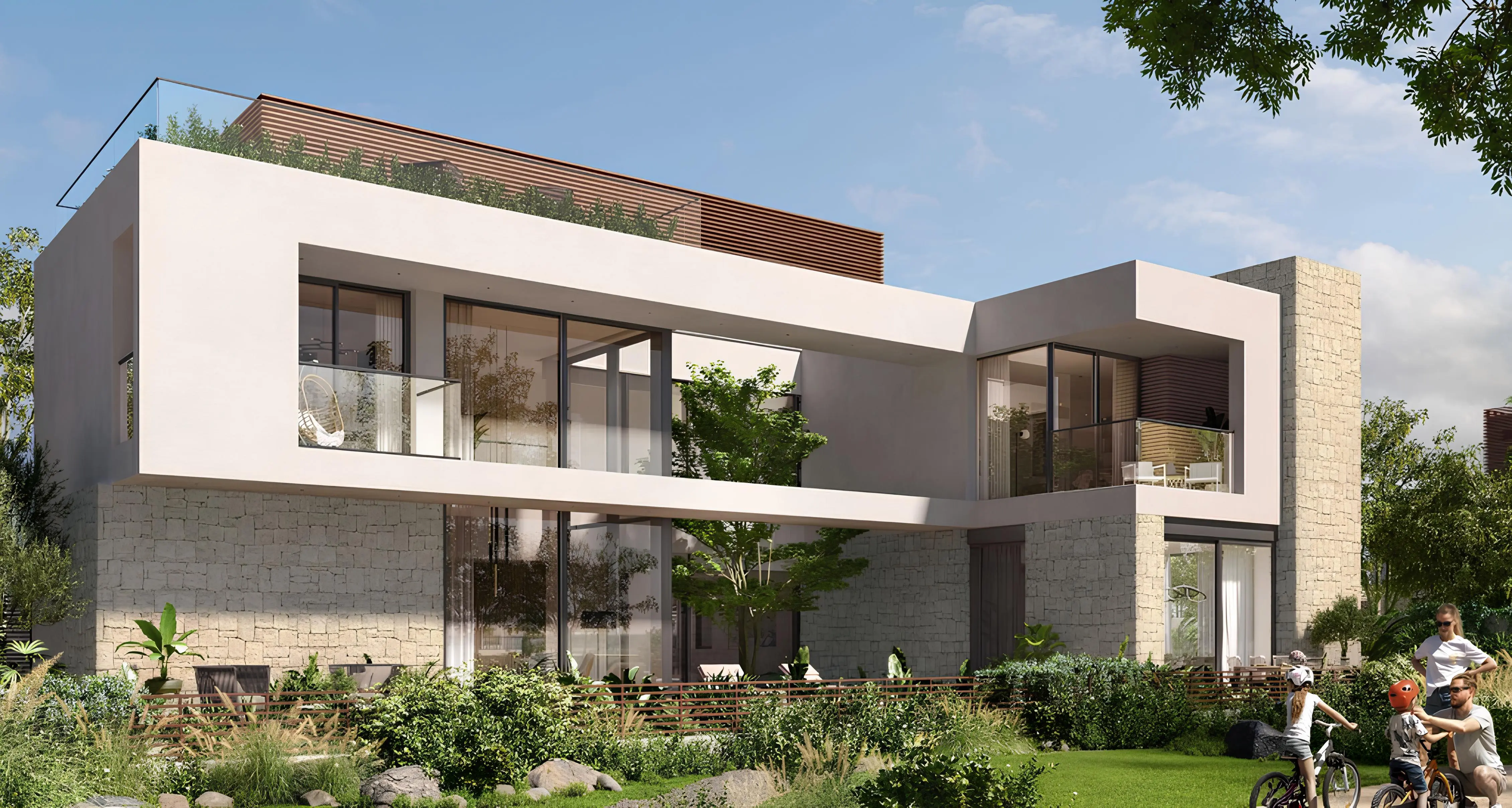 Haven is a collection of stylish villas and townhouses by Aldar in Dubai. The architecture reflects an atmosphere of tranquility, with minimalist design harmoniously combined with natural materials. The project features townhouses with 3–4 bedrooms, villas with 3–5 bedrooms, and premium villas with 4–6 bedrooms. Panoramic windows overlook lush greenery, creating a sense of unity with nature and filling the space with light and privacy.