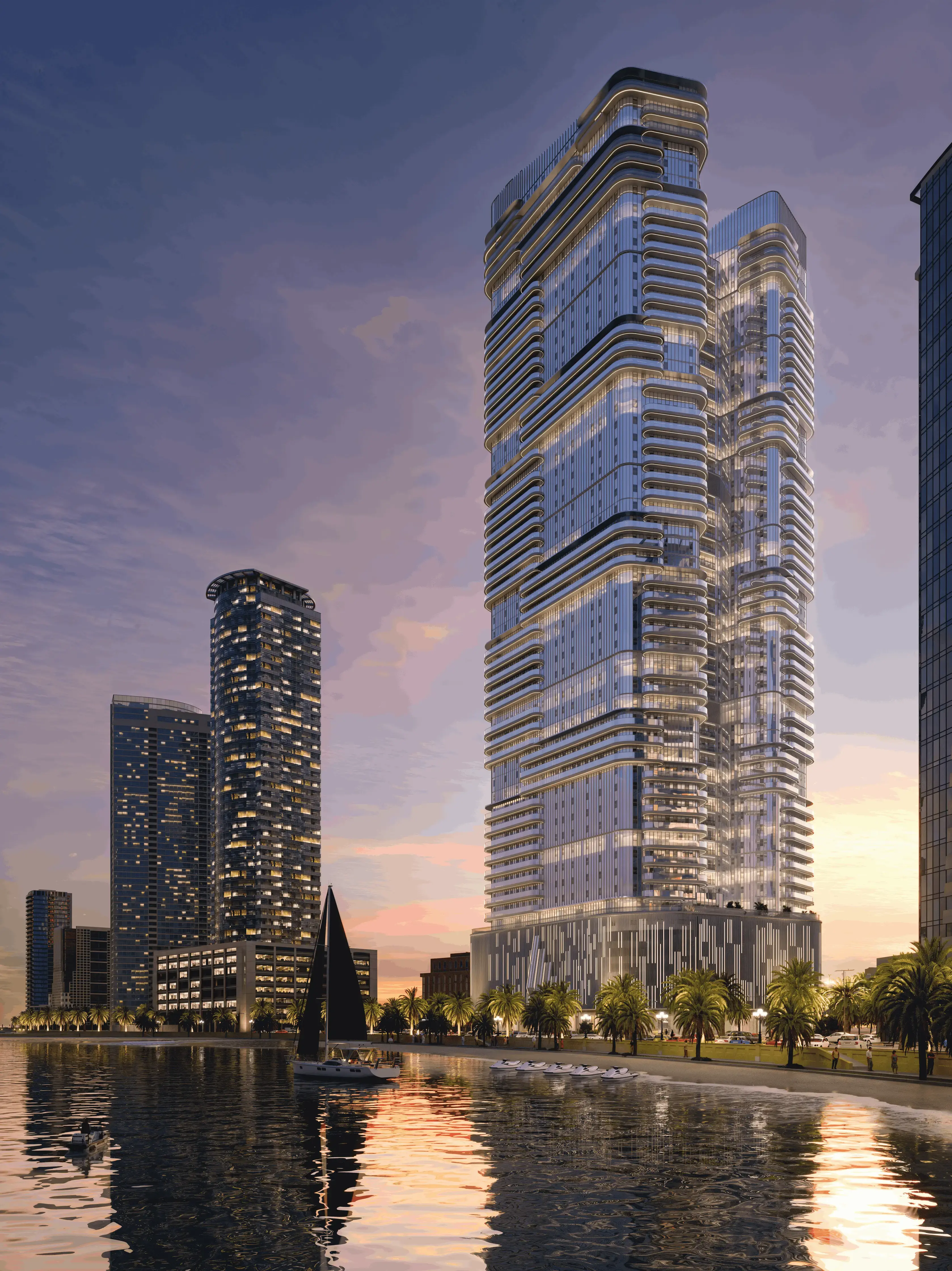 Joud Tower is an exclusive residential complex by Albatha Real Estate, offering breathtaking views of the city skyline and coastline, providing residents with a private retreat while being at the heart of Sharjah's vibrant life. The building features an impressive architectural design, including a basement level, a ground floor, six podium levels, fourty-eight residential floors, and a rooftop. The architectural style combines elegance and functionality, offering residents spacious interiors, premium finishes, and stunning views of the surrounding cityscape. The project offers various types of residences, including apartments with two, three, and four bedrooms, as well as four-bedroom duplexes and five-bedroom penthouses. The interiors reflect modern sophistication, with stylish kitchens, spacious living areas, and bedrooms flooded with natural light. The use of high-quality materials and finishes ensures that every detail contributes to a comfortable and luxurious atmosphere. The complex offers a wide range of amenities, including a gym, swimming pools for adults and children, a café, a padel court, jogging tracks, and a children’s play area. Joud Tower boasts a convenient location. The Sharjah Chamber of Commerce and Industry and Sharjah Expo Centre are within walking distance. By car, residents can easily reach Burj Khalifa and Dubai International Airport.