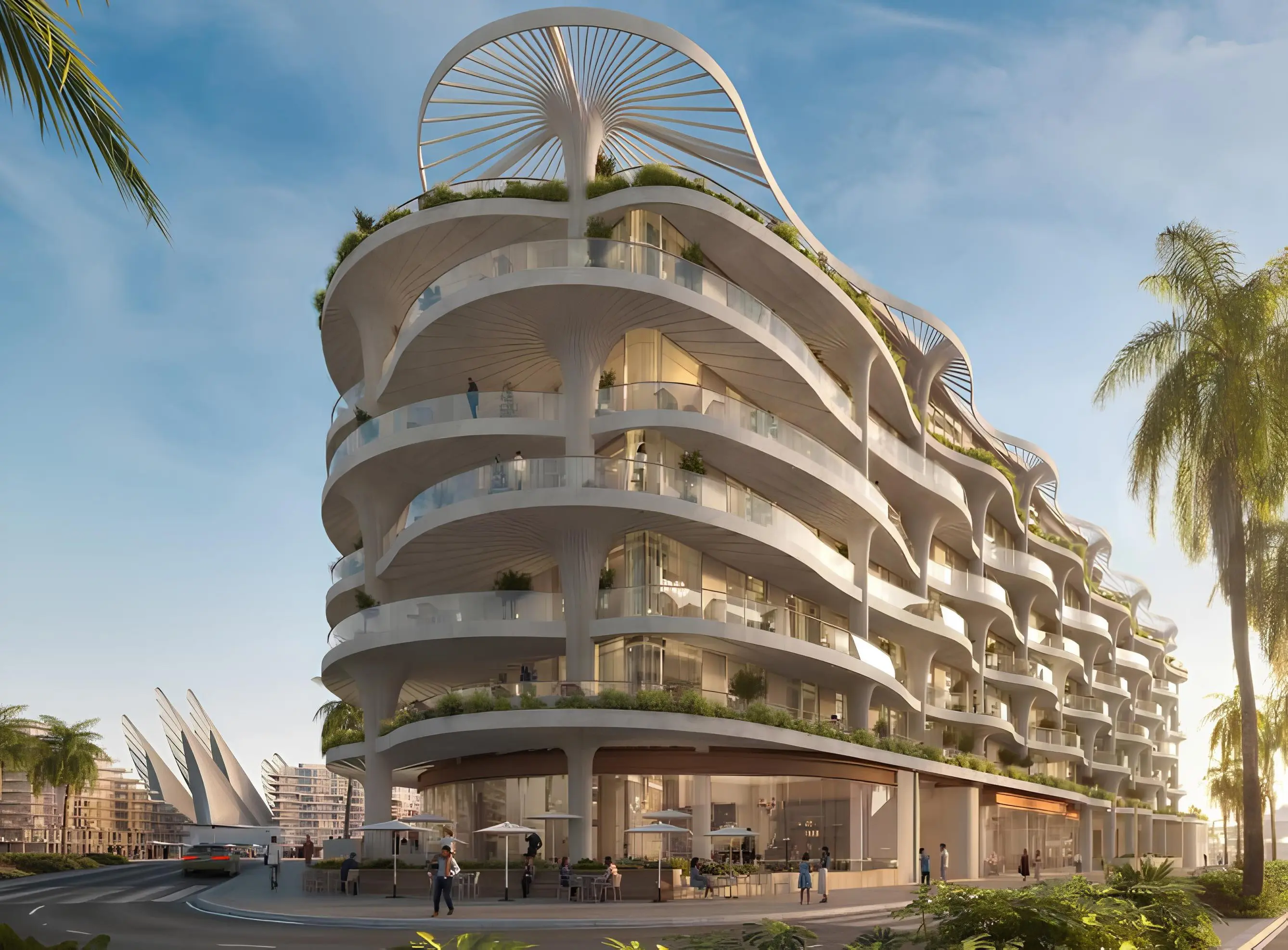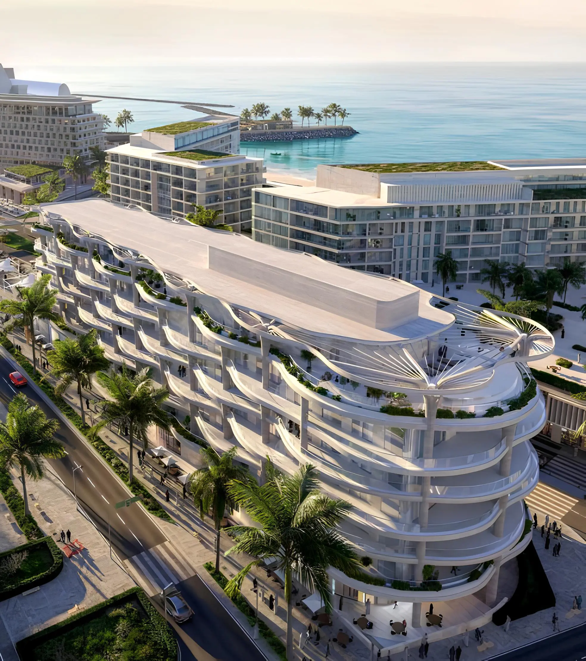Mamsha Palm is an iconic project created in collaboration with world-renowned architect Koichi Takada, which brings nature back into the urban environment. Located in Abu Dhabi in the heart of Saadiyat Island, this 7-storey complex comprising of two basements, a ground floor and six residential floors offers 44 exclusive residences with 1-3 bedrooms, as well as three two-storey Japanese-style 4-bedroom sky villas with spacious layouts that offer breathtaking views of the Guggenheim Museum. Biophilic design, inspired by the protective canopy of palm trees that cools the environment, permeates the entire Mamsha Palm project. Each interior space has been designed to reflect the subtle beauty of Koichi Takada’s architectural concept. The materials and finishes contribute to an elevated lifestyle.