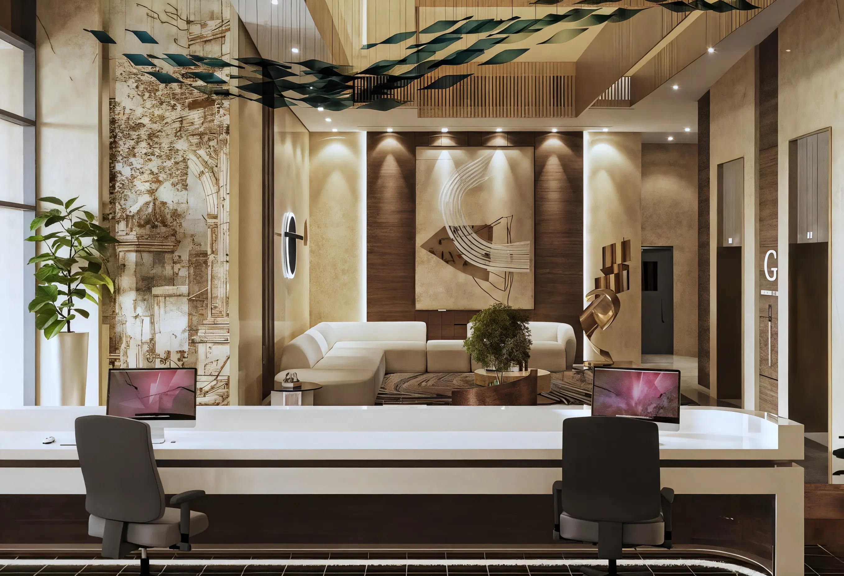 Palatium Residence offers studios and apartments with 1-3 bedrooms, with first-class finishes, porcelain tiles and fine woodwork. The residences have high ceilings and panoramic windows that create a sense of spaciousness and fill each apartment with natural light. All housing units are equipped with Smart Home automation and kitchen appliances.