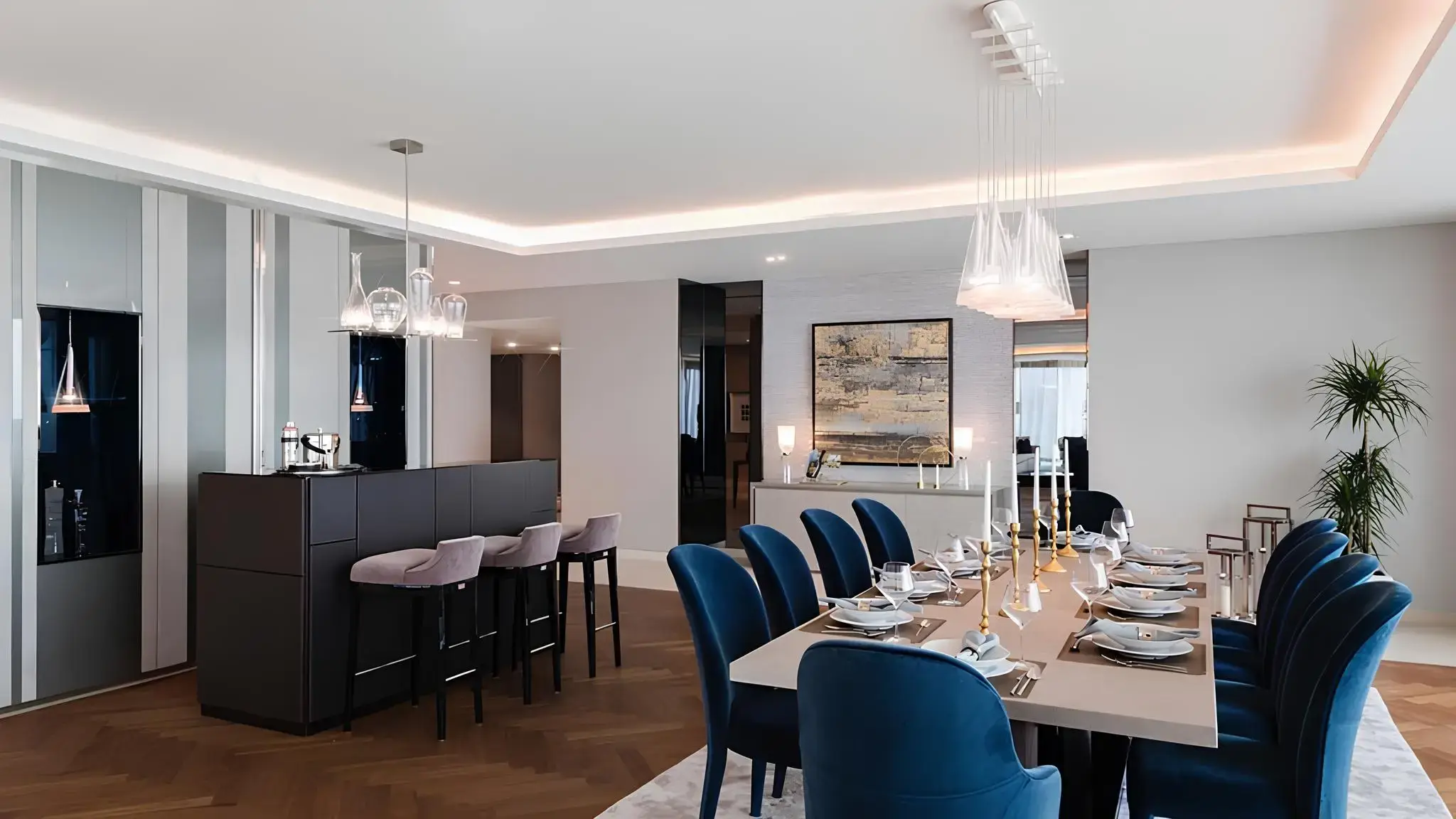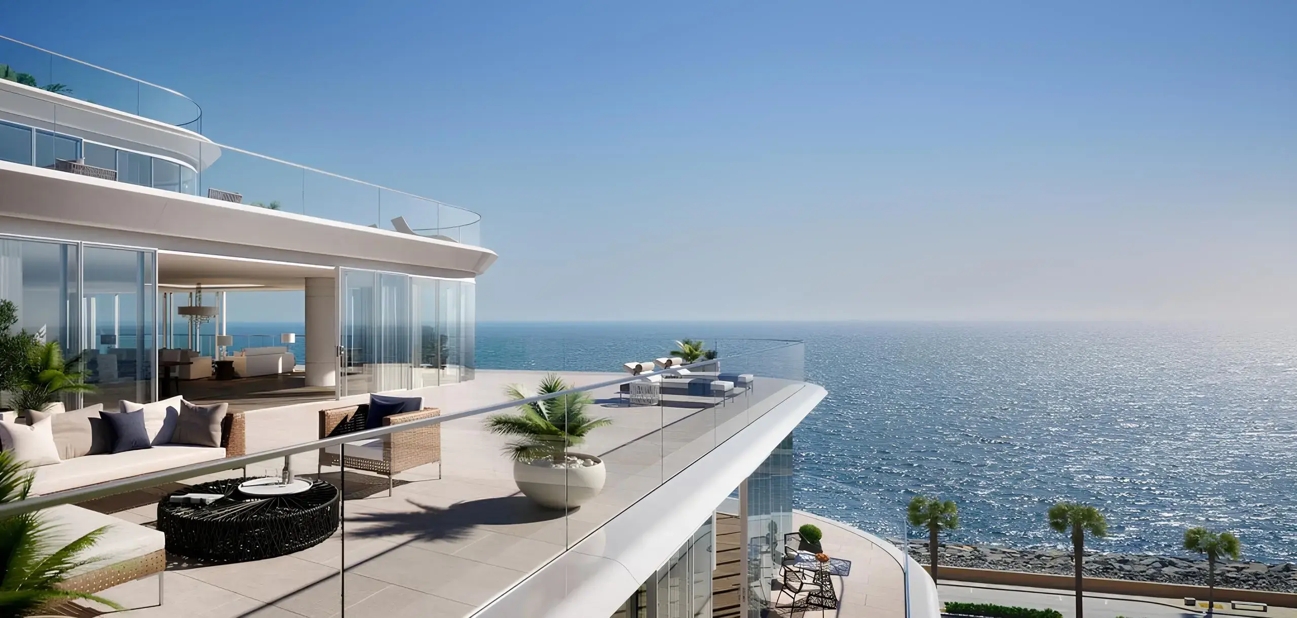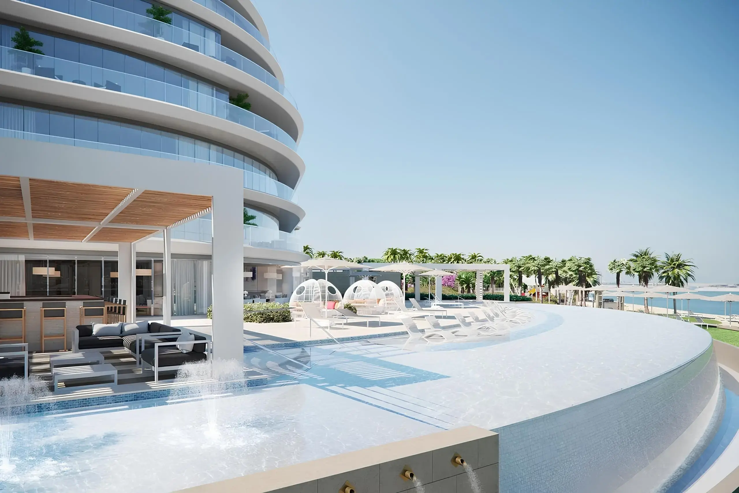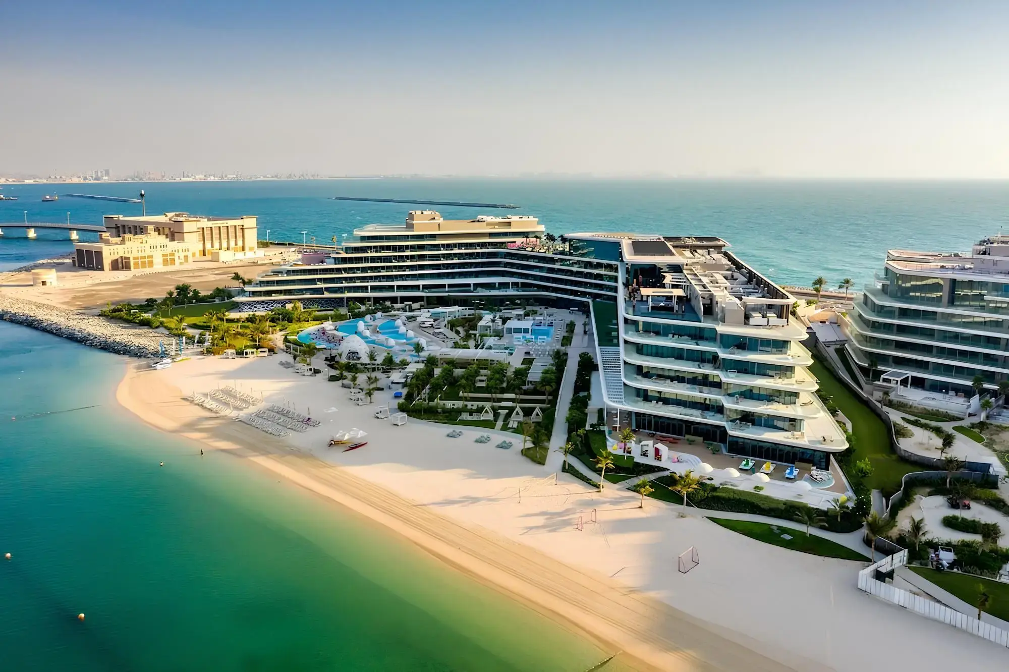 The exterior of the complex is designed in a minimalistic but luxurious style typical of elite coastal architecture. Apartments with 2-5 bedrooms offer panoramic views of the Persian Gulf and Dubai skyline thanks to the thoughtful design of the buildings. For connoisseurs of luxury, there are two unique penthouses and three duplex penthouses with panoramic terraces.