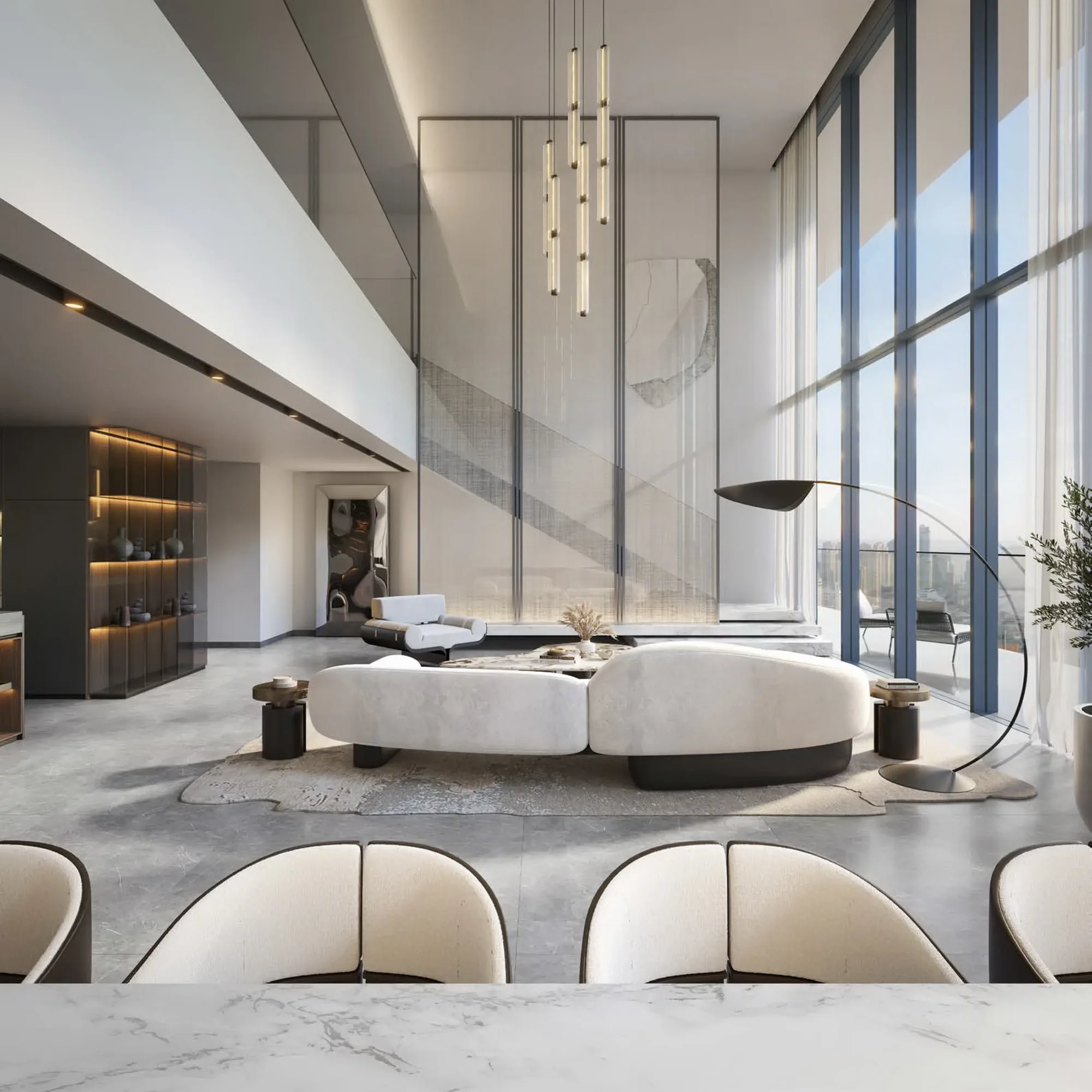 Residences are offered in a wide range of layouts - from elegant one-bedroom apartments to luxurious five-bedroom rooftop penthouses featuring private pools. All homes boast impeccable finishes in a warm, minimalist palette and come equipped with smart home systems. A cooking range, hood and washer-dryer, included in each unit.